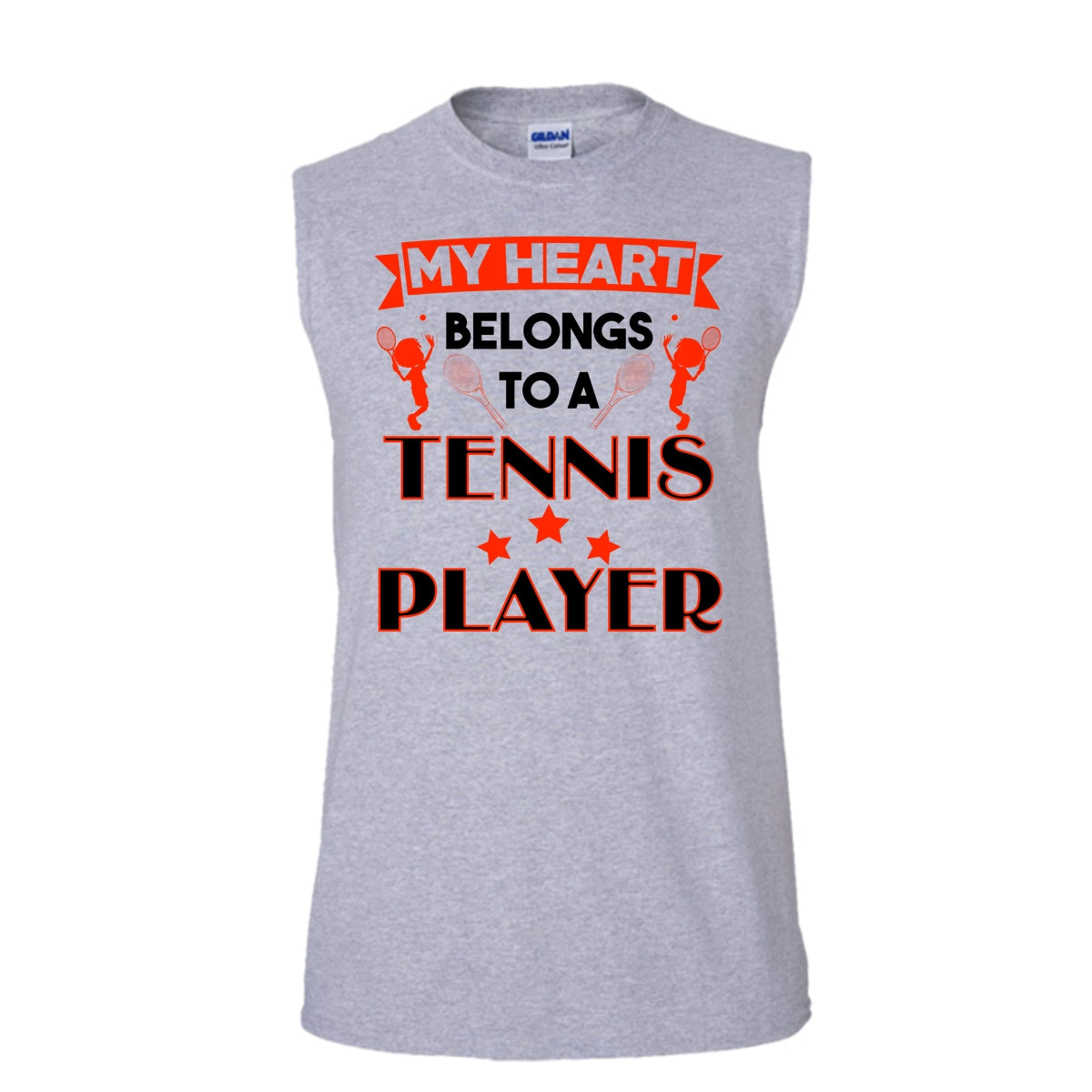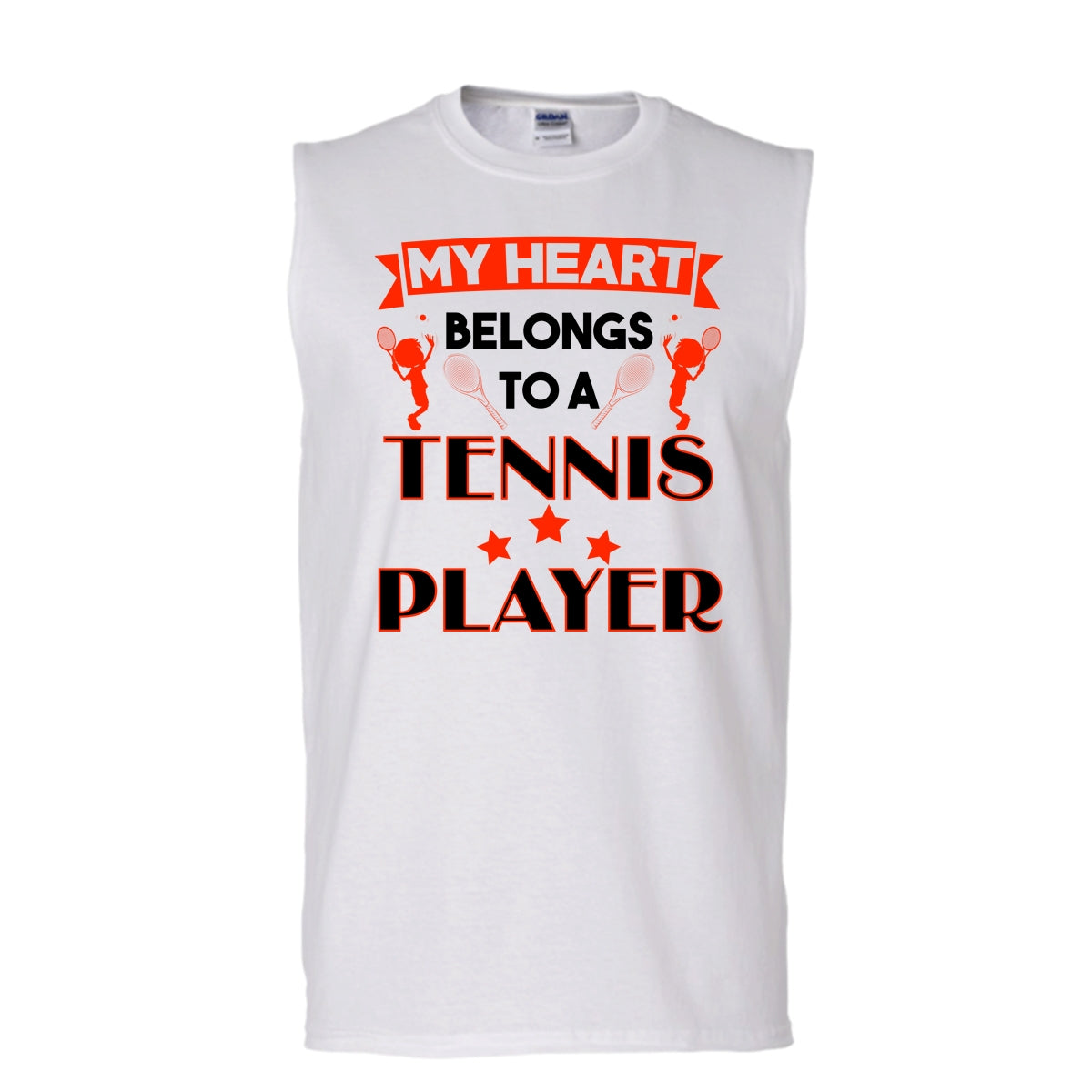 My Heart Belongs To A Tennis Player T Shirt, Coolest Tennis Player T Shirt, Awesome t-shirts (Men's Cotton Sleeveless)
