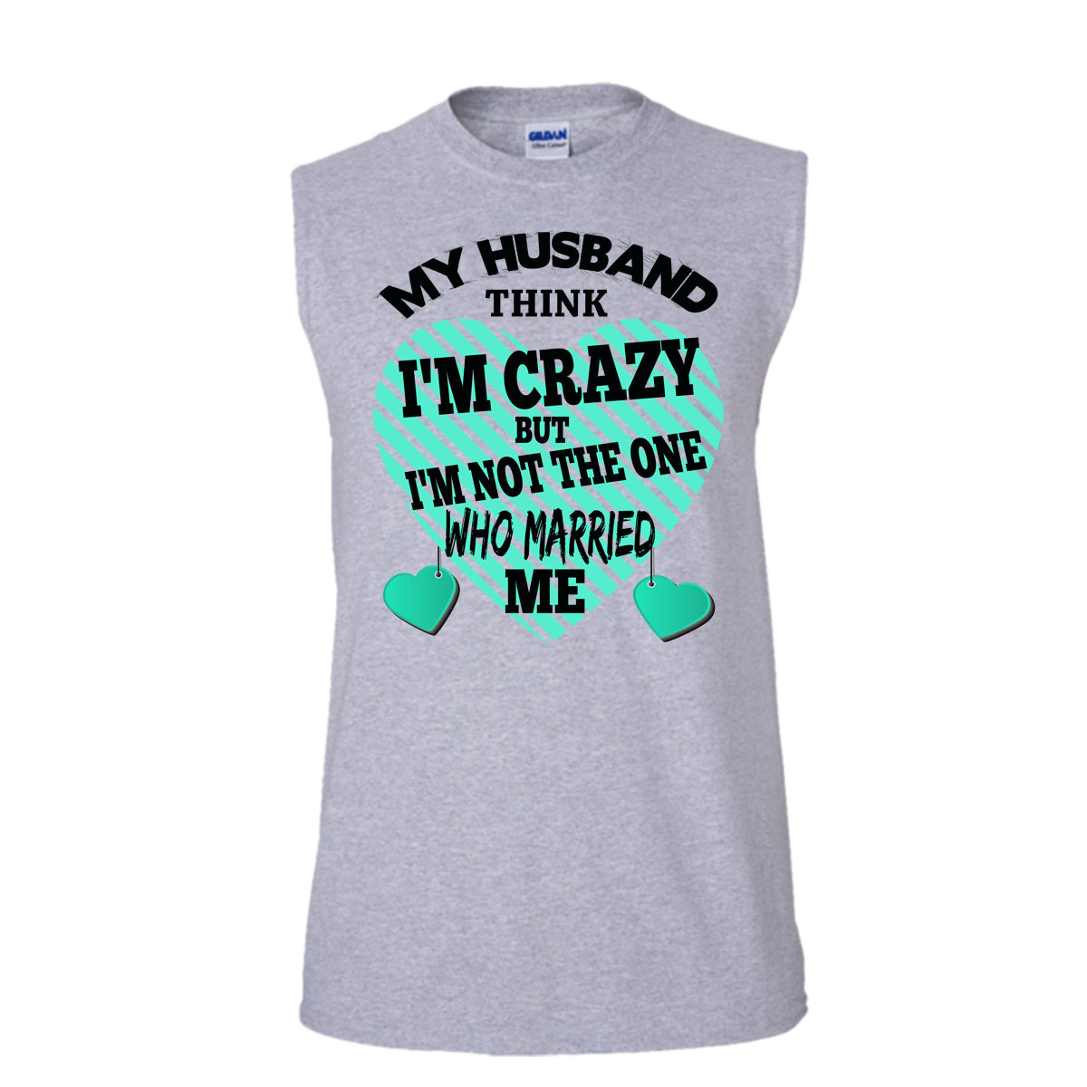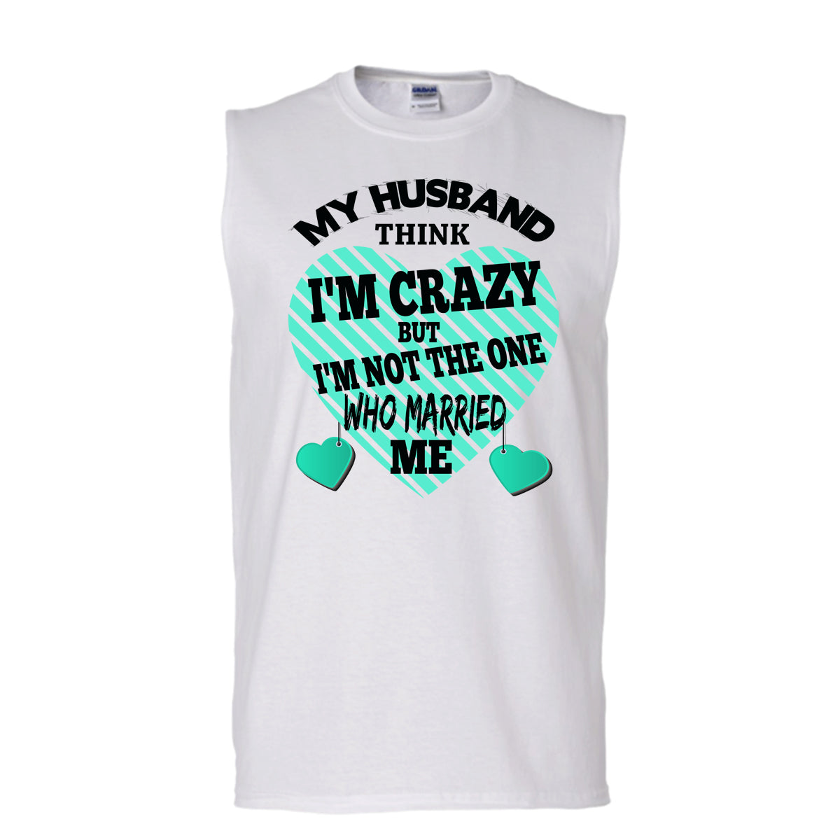 My Husband Think I'm Crazy T Shirt, Funny Husband And Wife T Shirt, Awesome t-shirts (Men's Cotton Sleeveless)