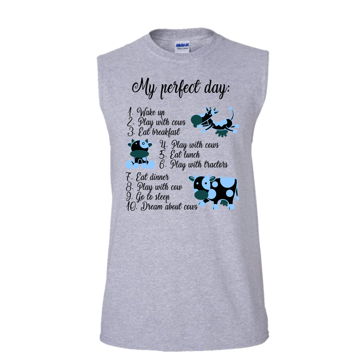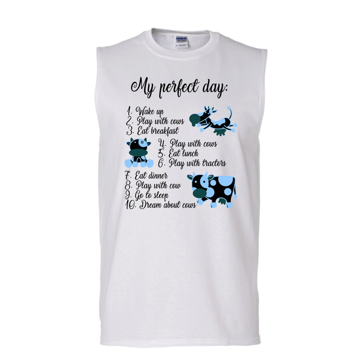 My Perfect Day T Shirt, Dream About Cows T Shirt, Awesome t-shirts (Men's Cotton Sleeveless)