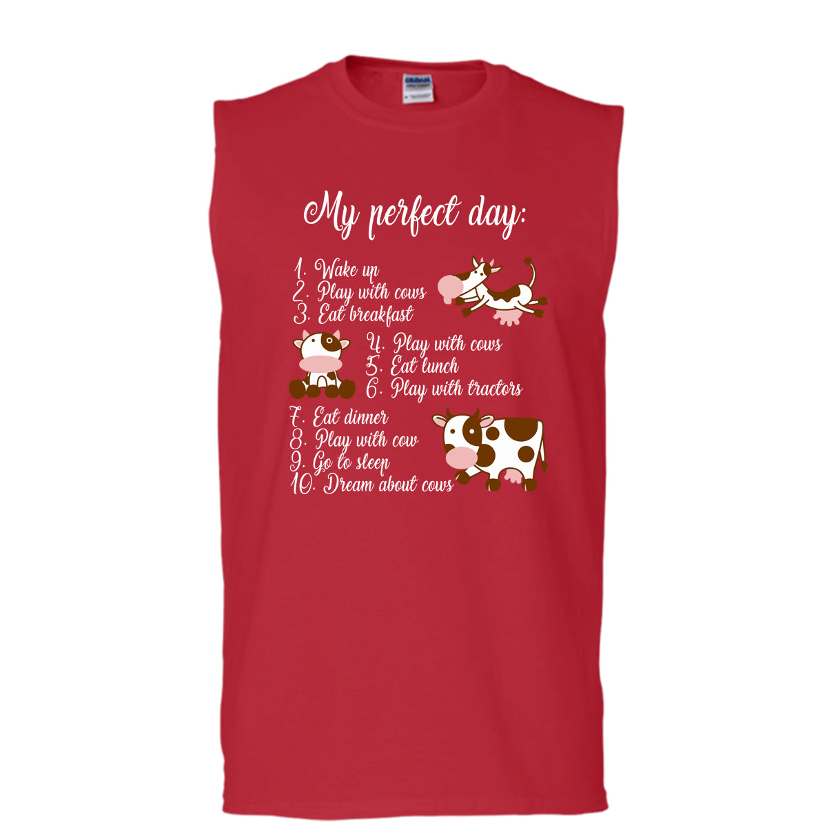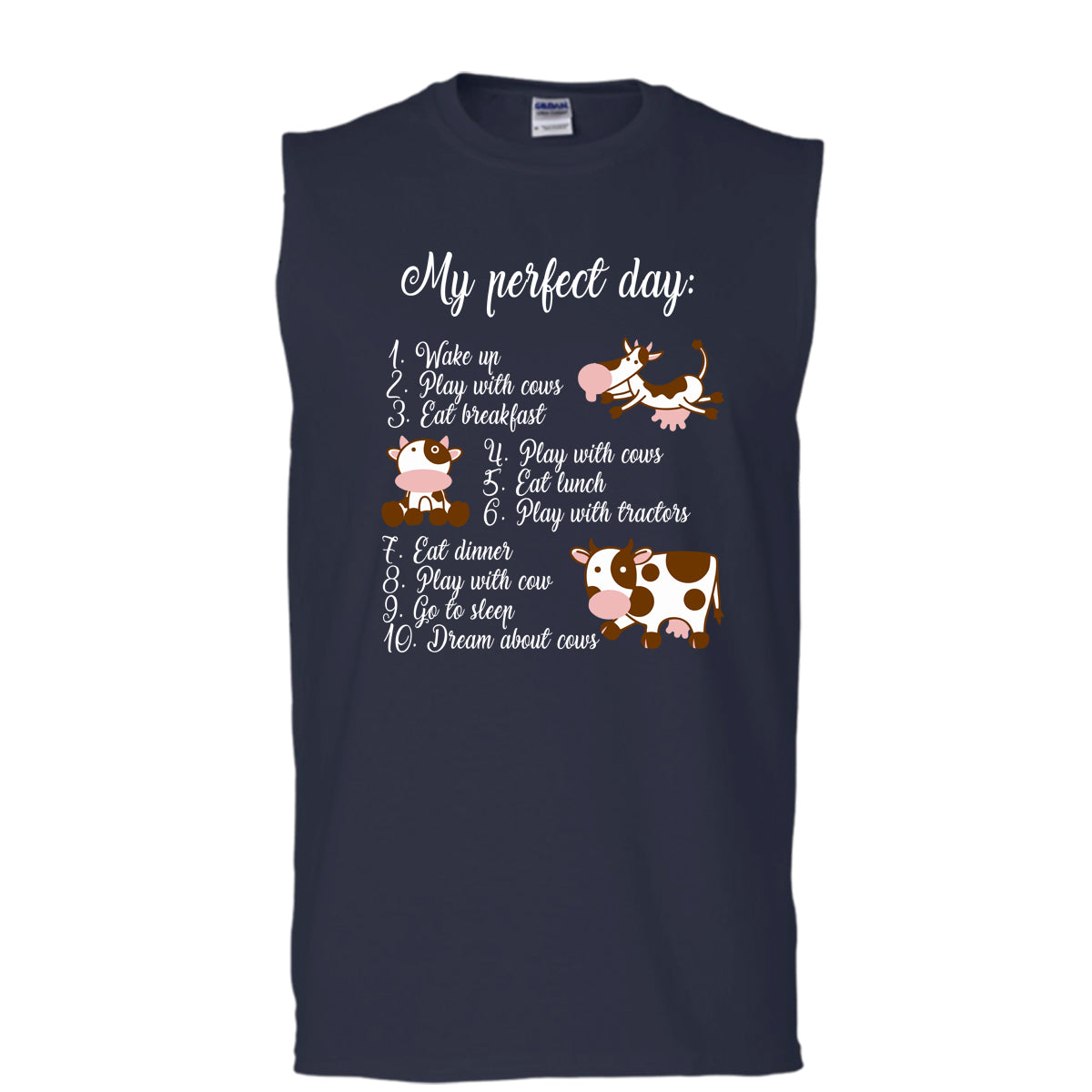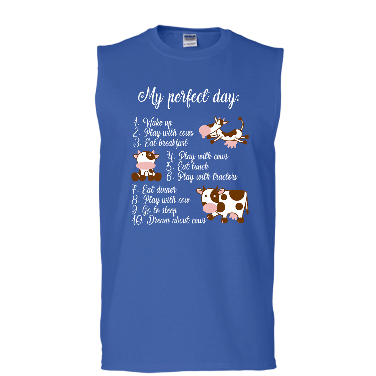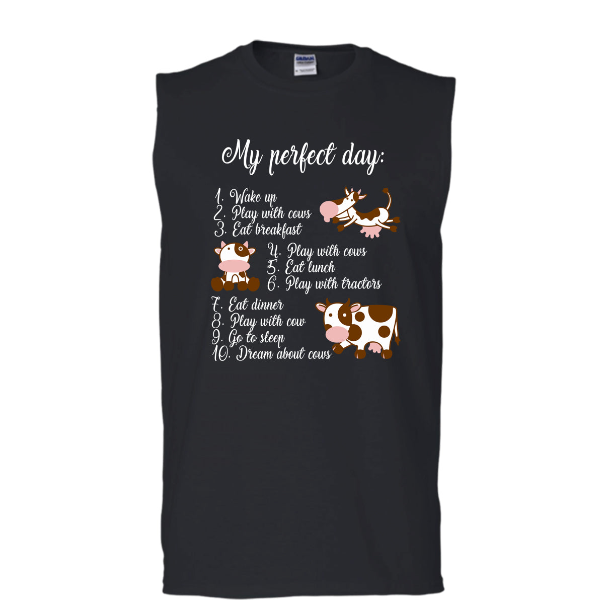 My Perfect Day T Shirt, Play With Cows T Shirt, Cool T Shirt (Men's Cotton Sleeveless)
