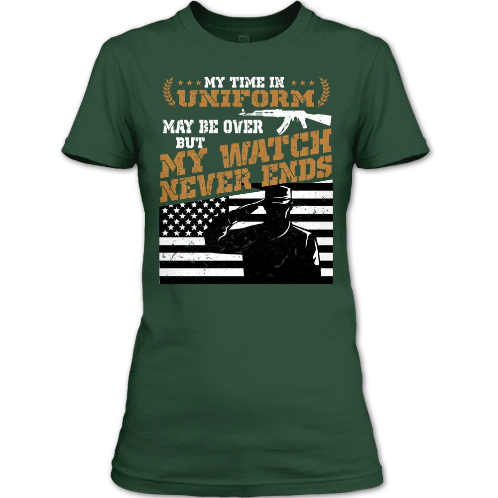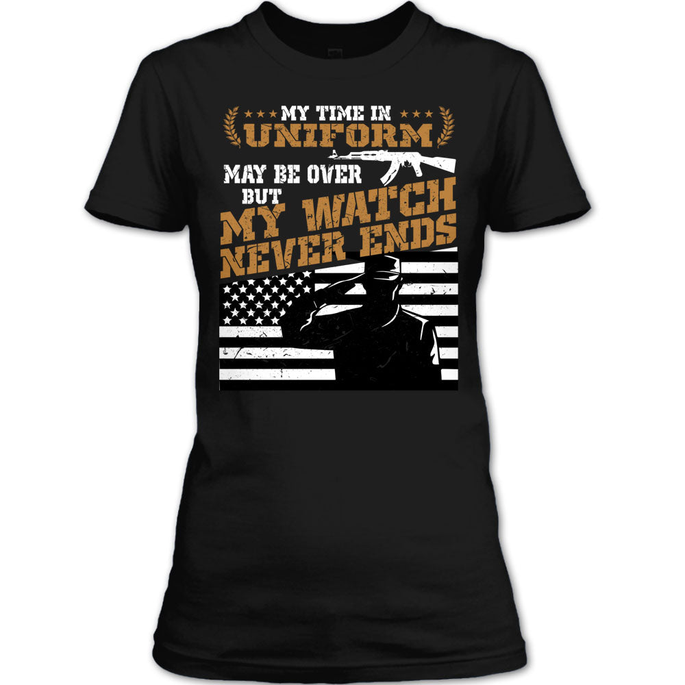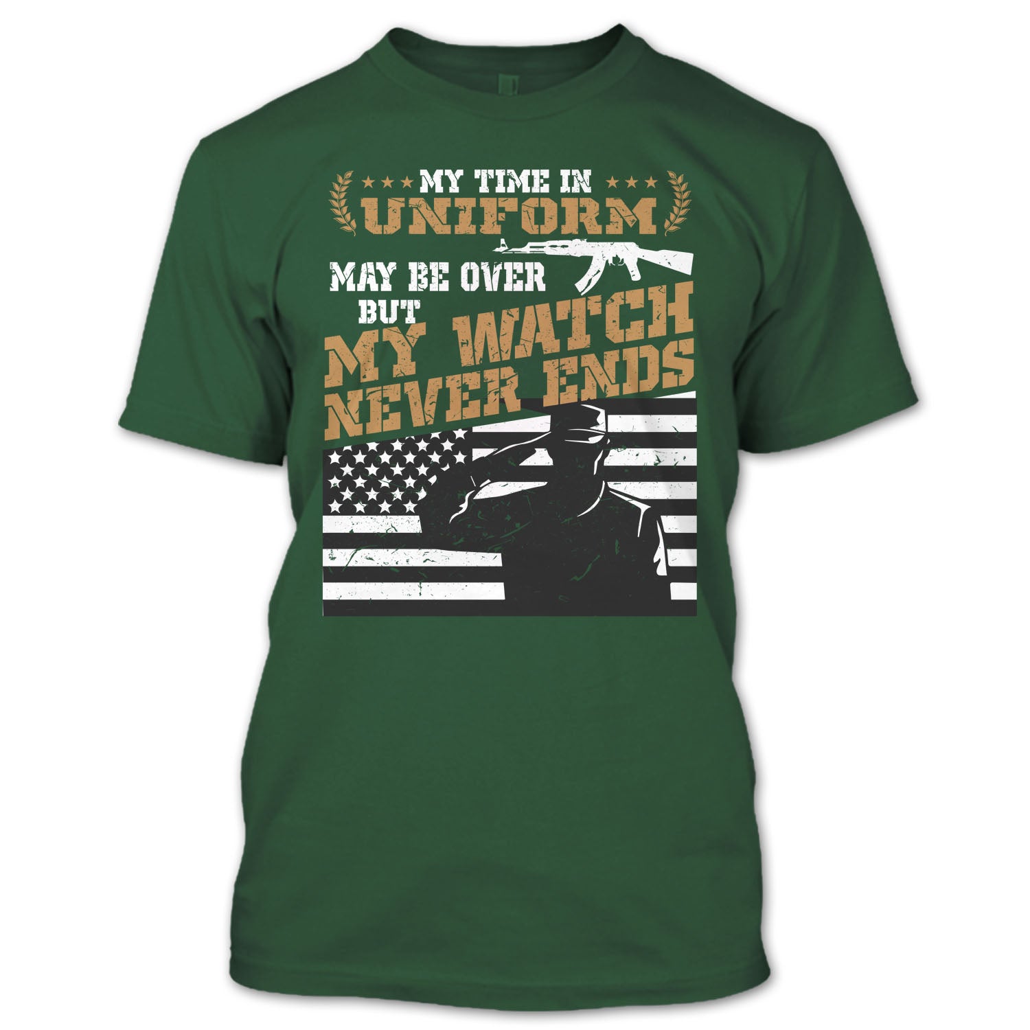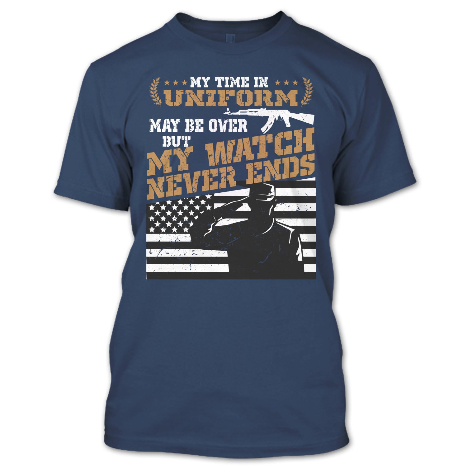 My Time In Uniform May Be Over T Shirt, But My Watch Never Ends T Shirt