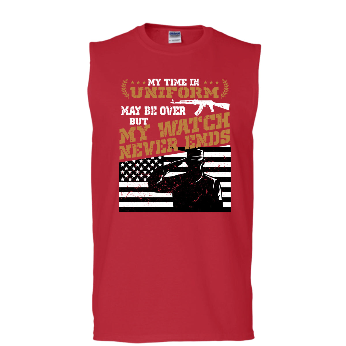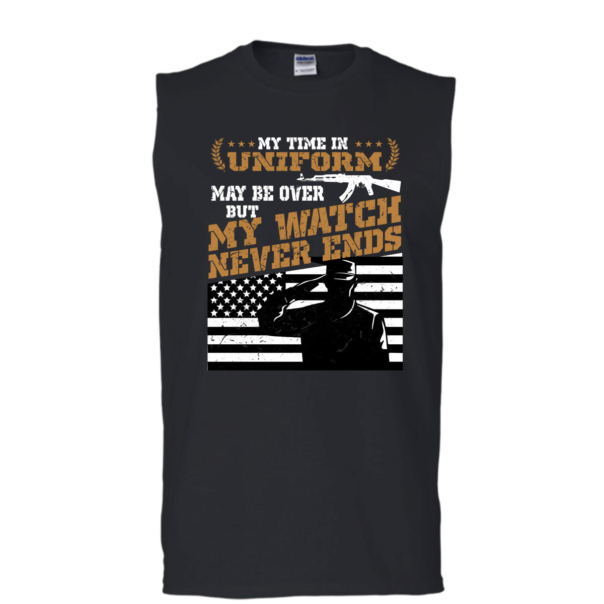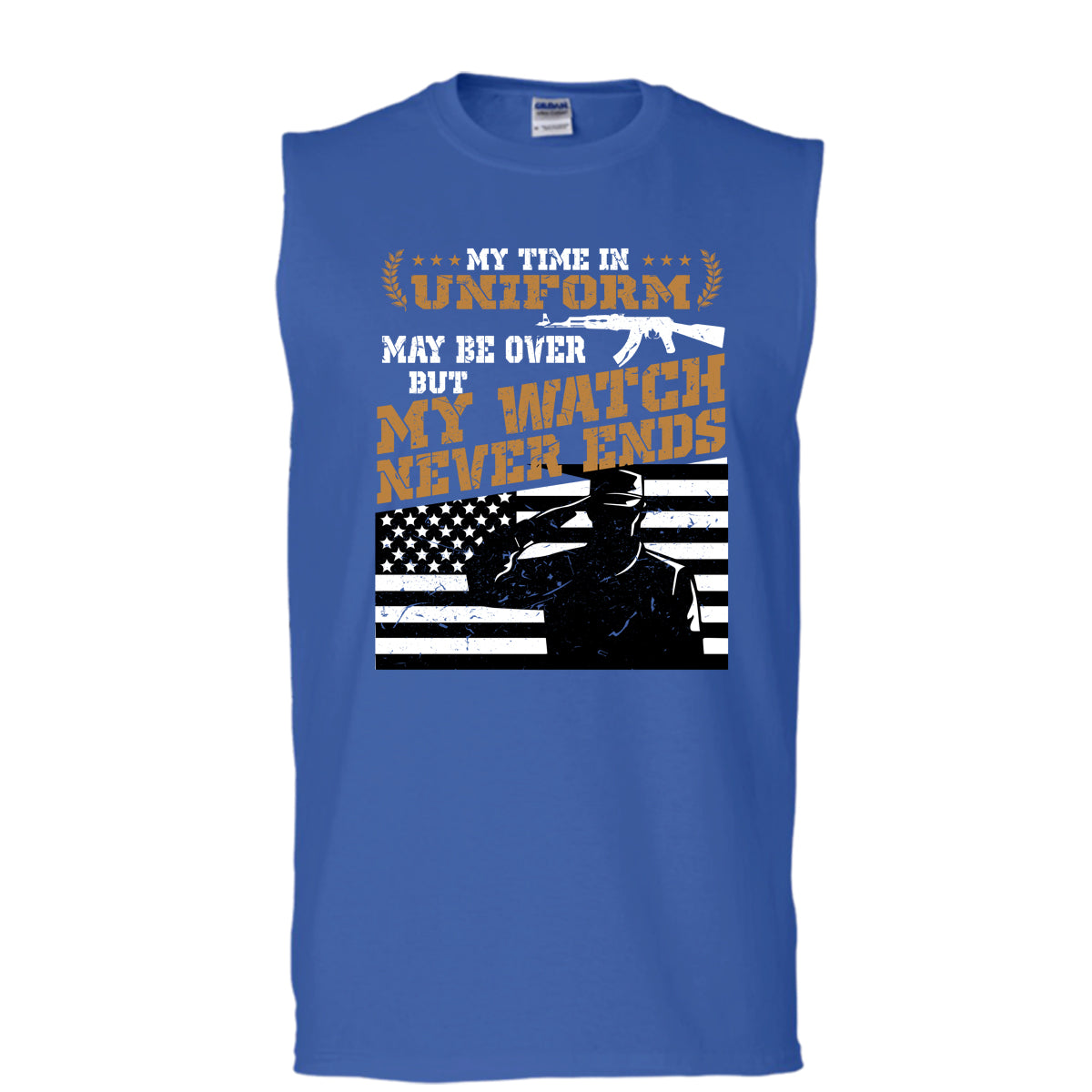My Time In Uniform May Be Over T Shirt, But My Watch Never Ends T Shirt, Cool T Shirt (Men's Cotton Sleeveless)