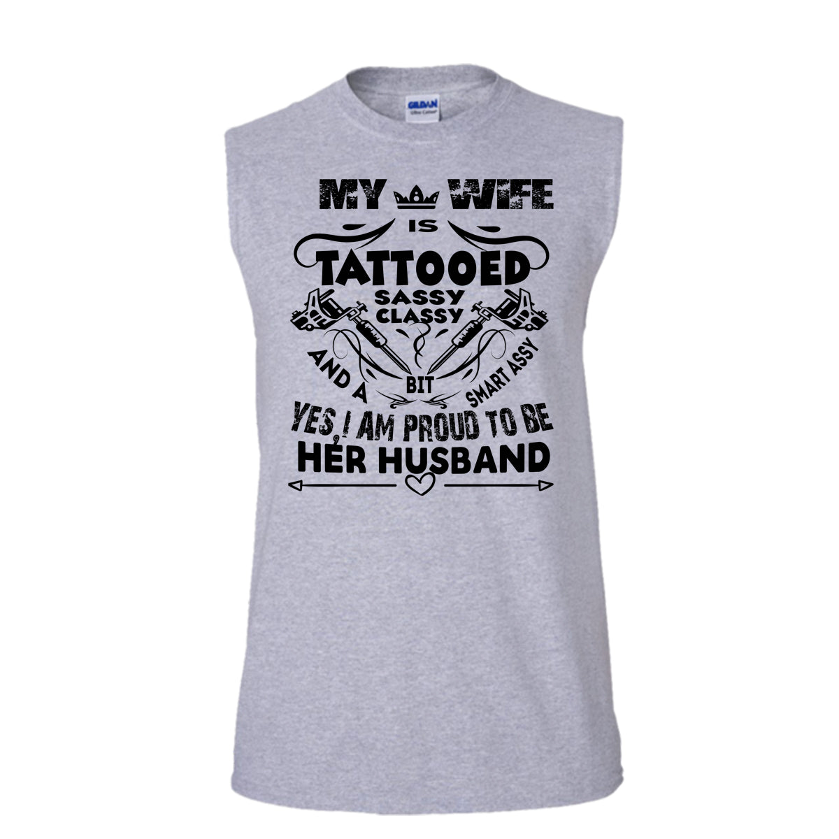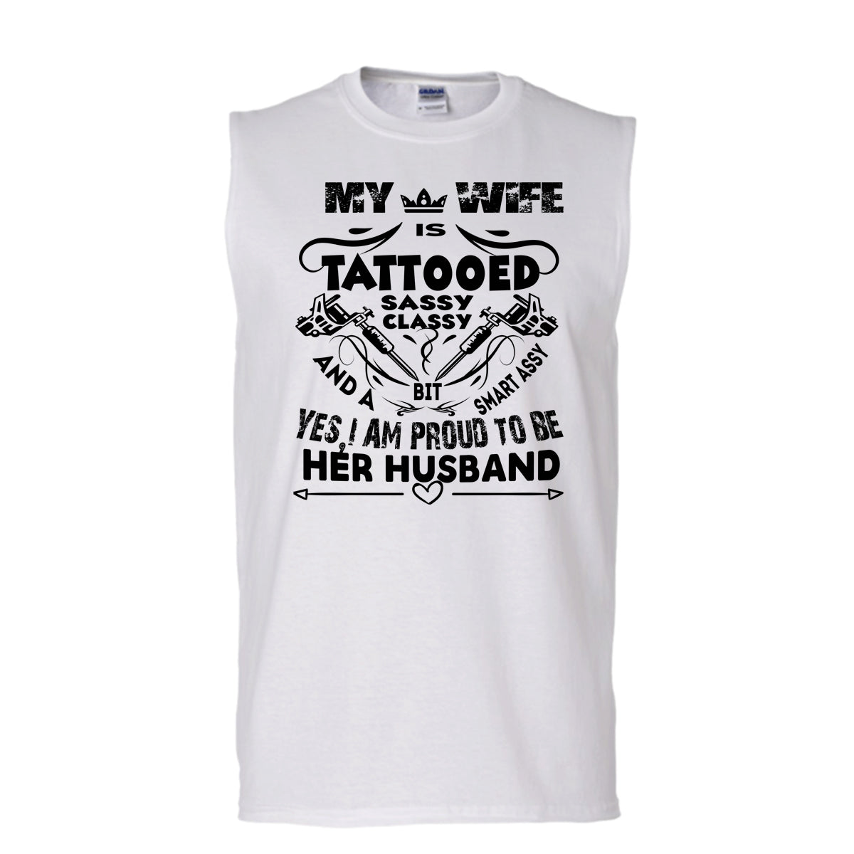 My Wife Is Tattooed Sassy Classy T Shirt, Cool Tattooed Wife T Shirt, Awesome t-shirts (Men's Cotton Sleeveless)