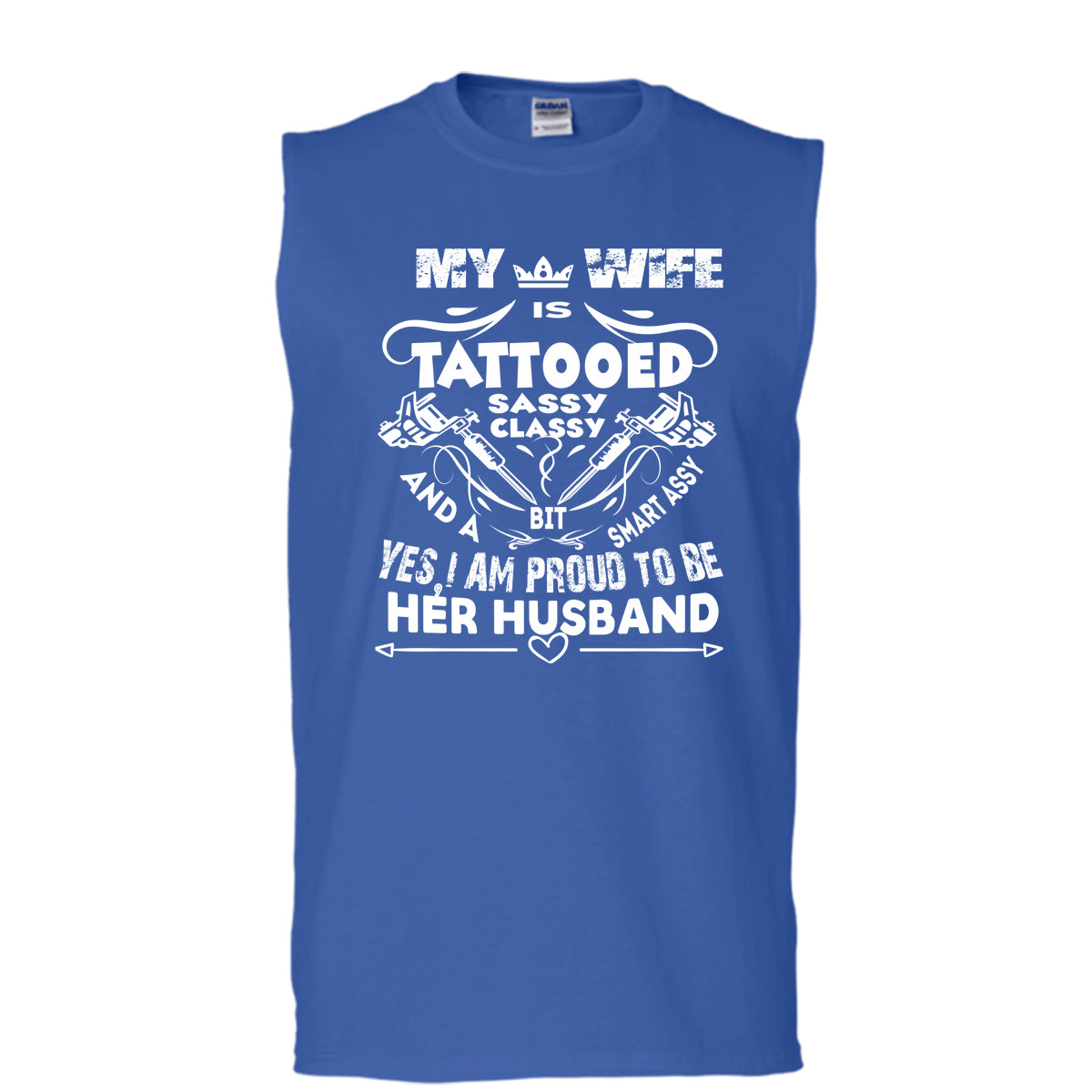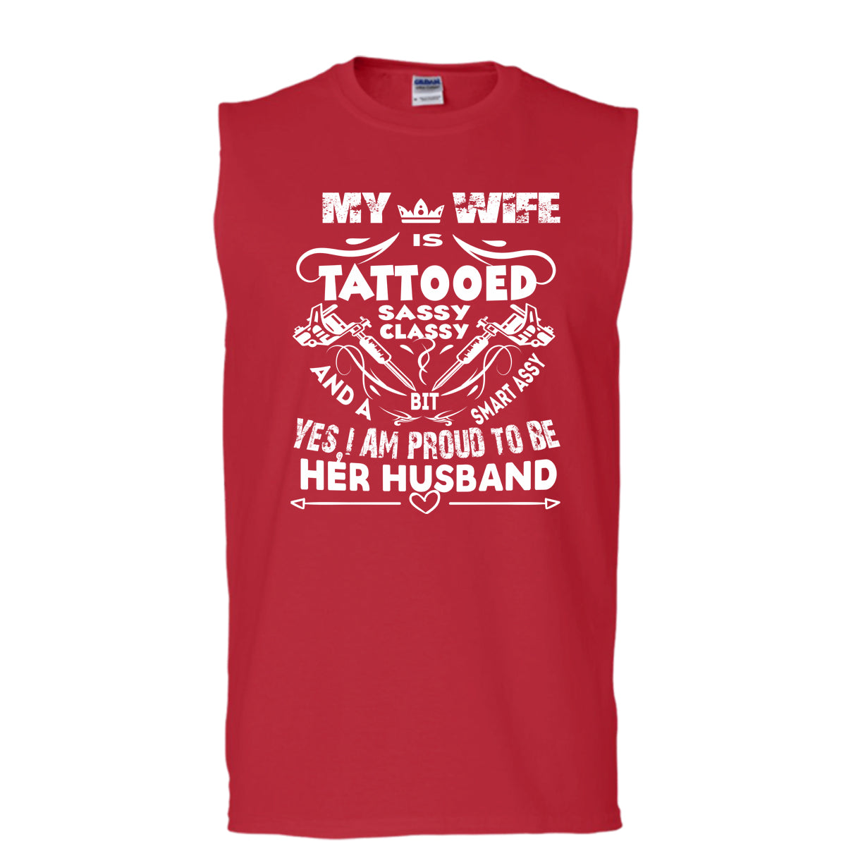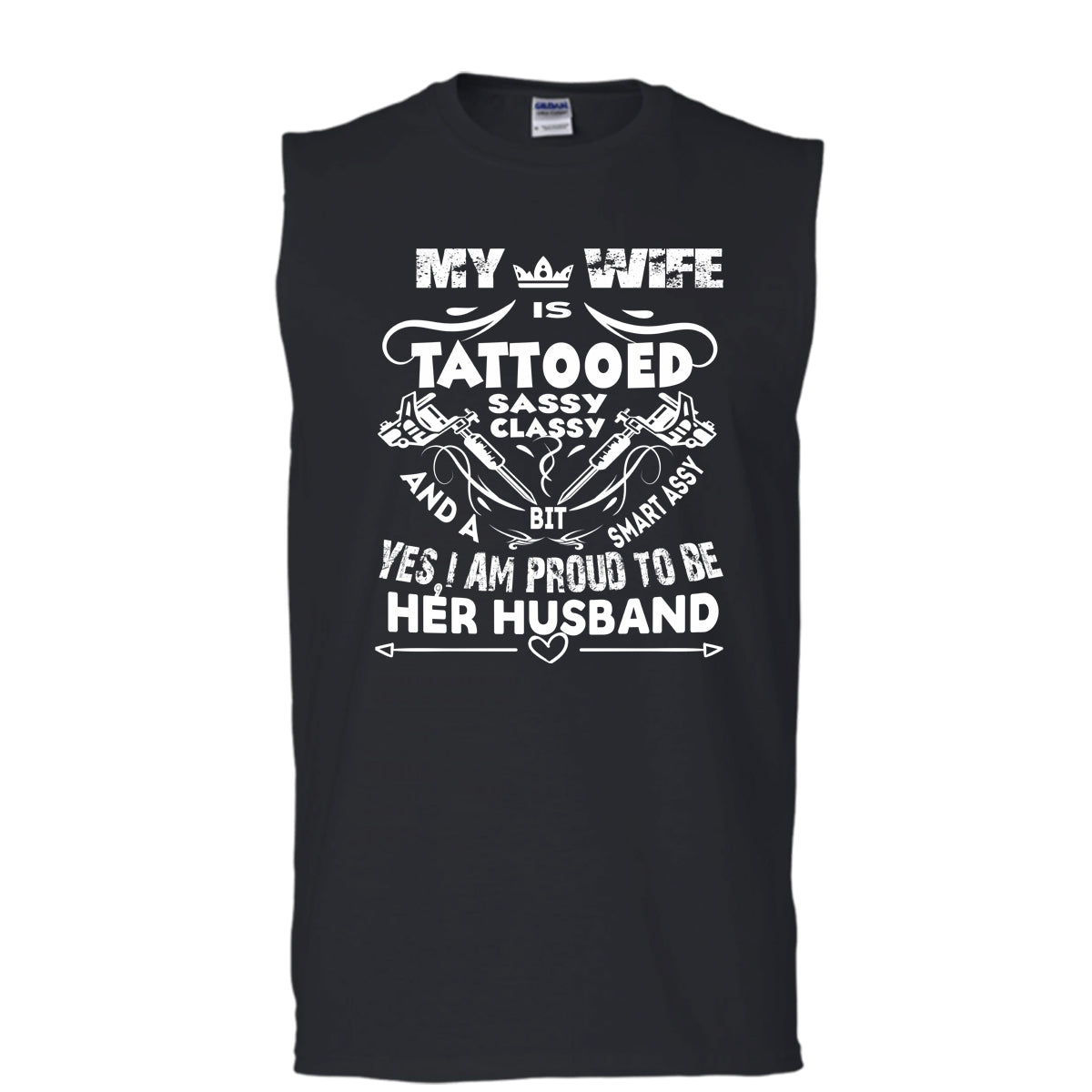 My Wife Is Tattooed Sassy Classy T Shirt, I Am Proud To Be Her Husband T Shirt, Cool T Shirt (Men's Cotton Sleeveless)