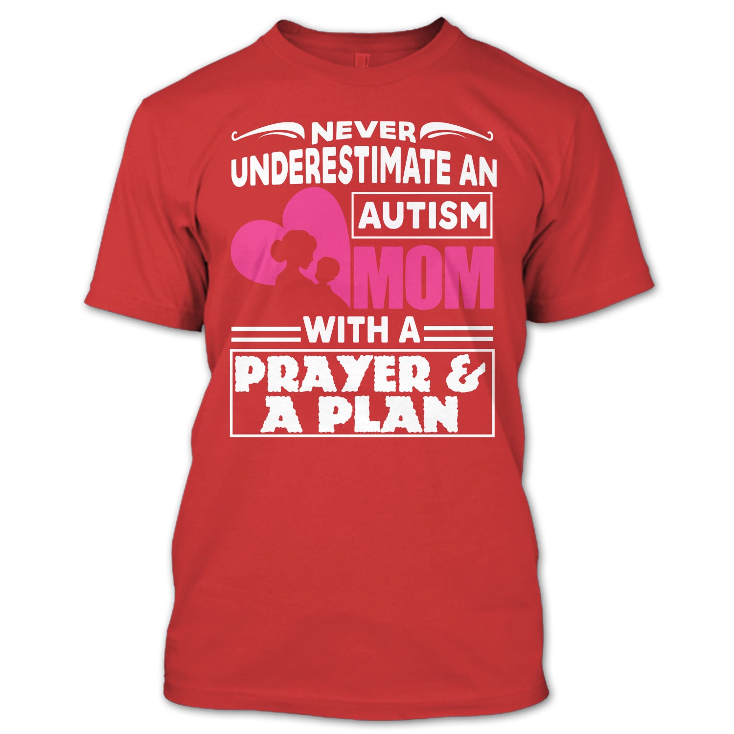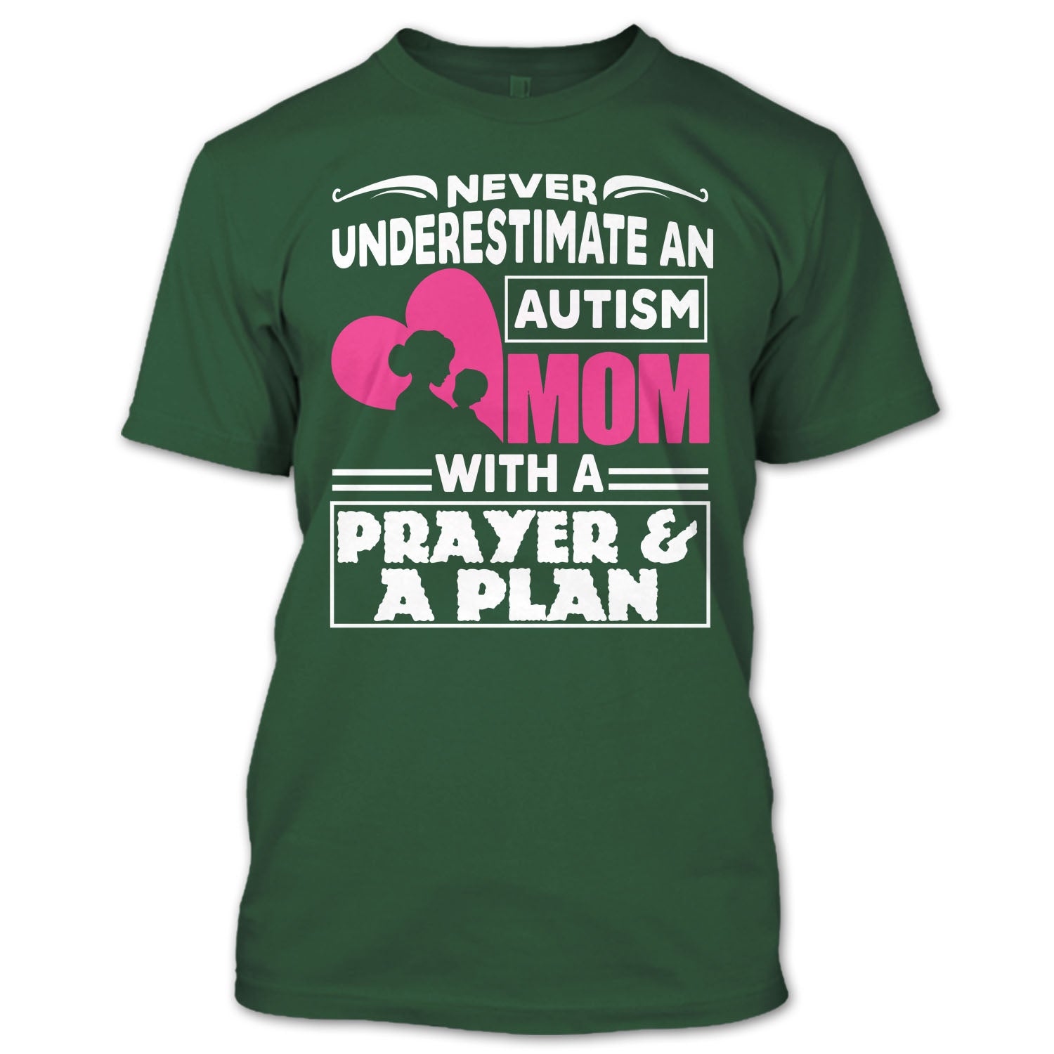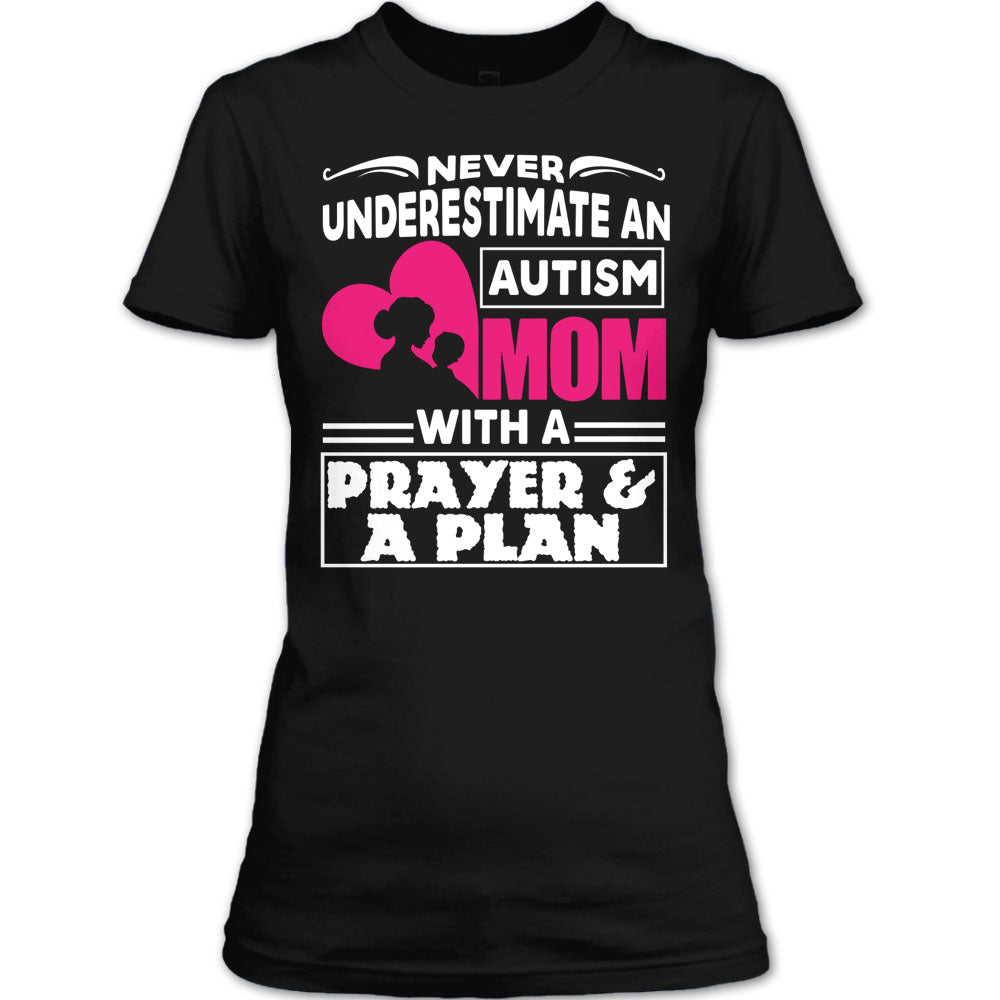 Never Underestimate An Autism Mom T Shirt, A Prayer & A Plan T Shirt