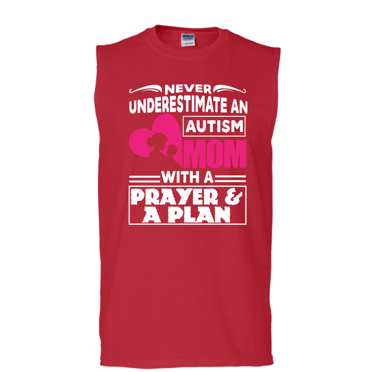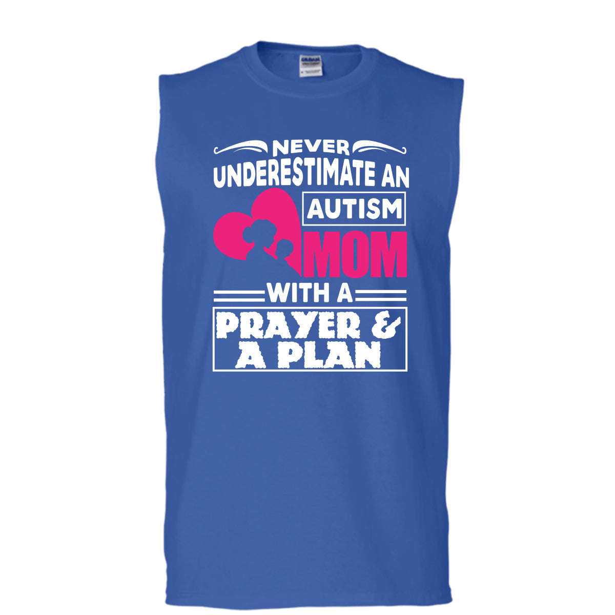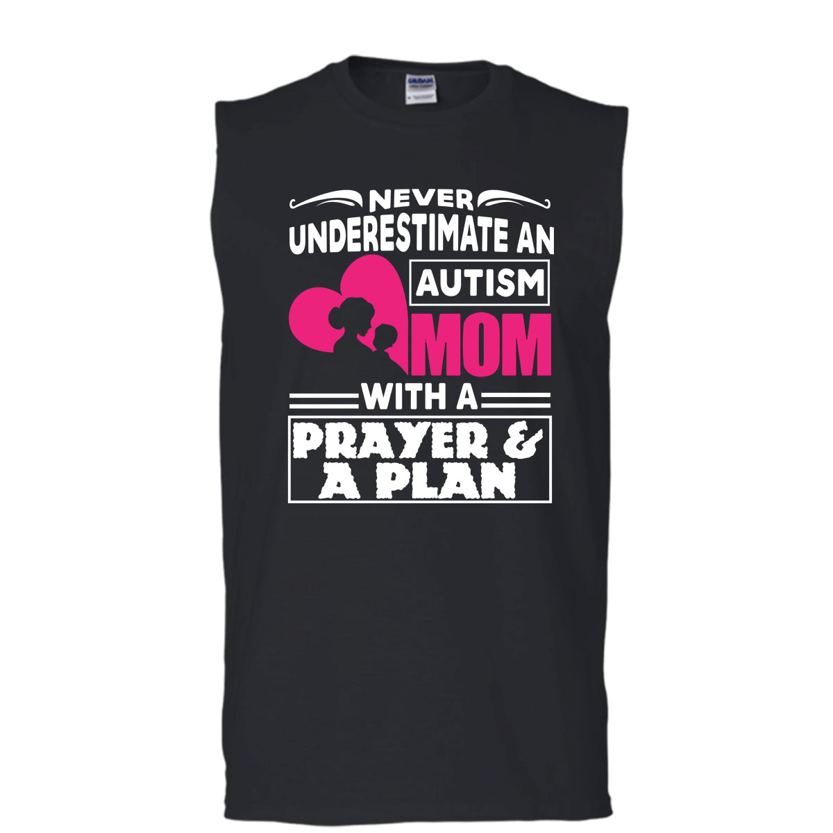 Never Underestimate An Autism Mom T Shirt, A Prayer & A Plan T Shirt, Cool T Shirt (Men's Cotton Sleeveless)