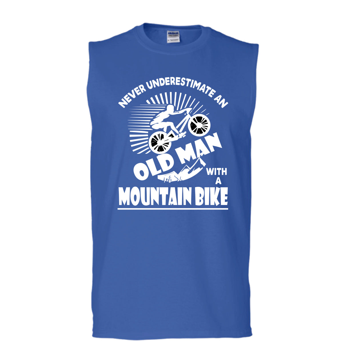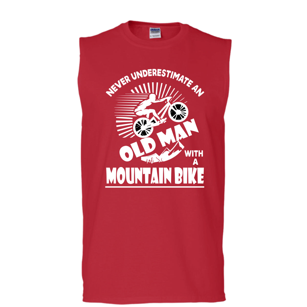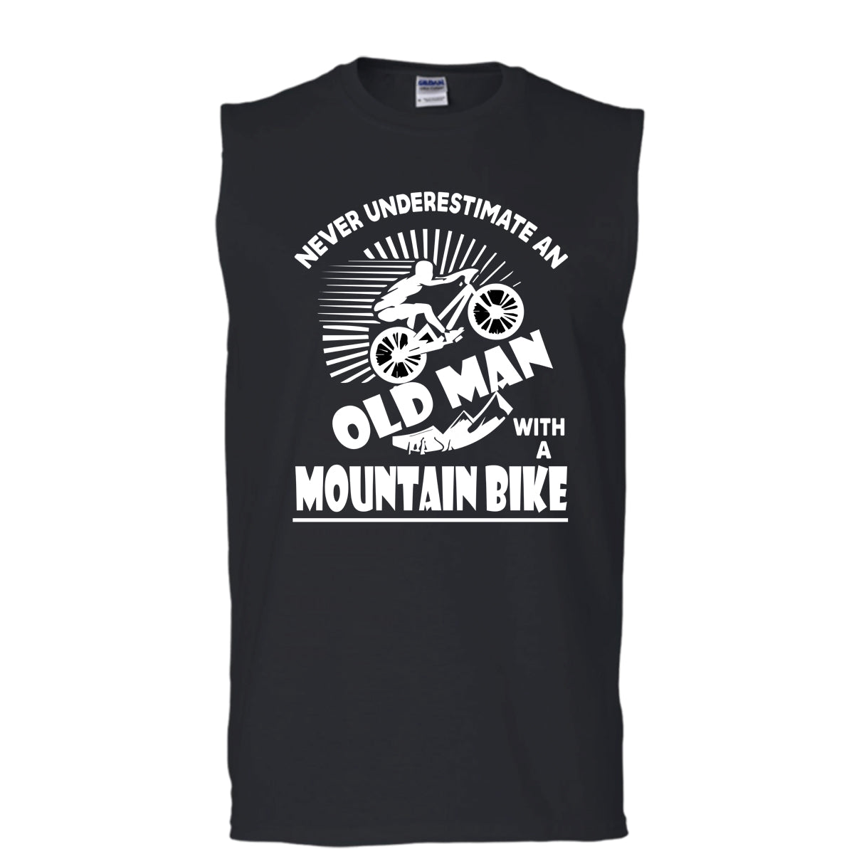 Never Underestimate T Shirt, An Old Man With A Mountain Bike T Shirt, Cool T Shirt (Men's Cotton Sleeveless)