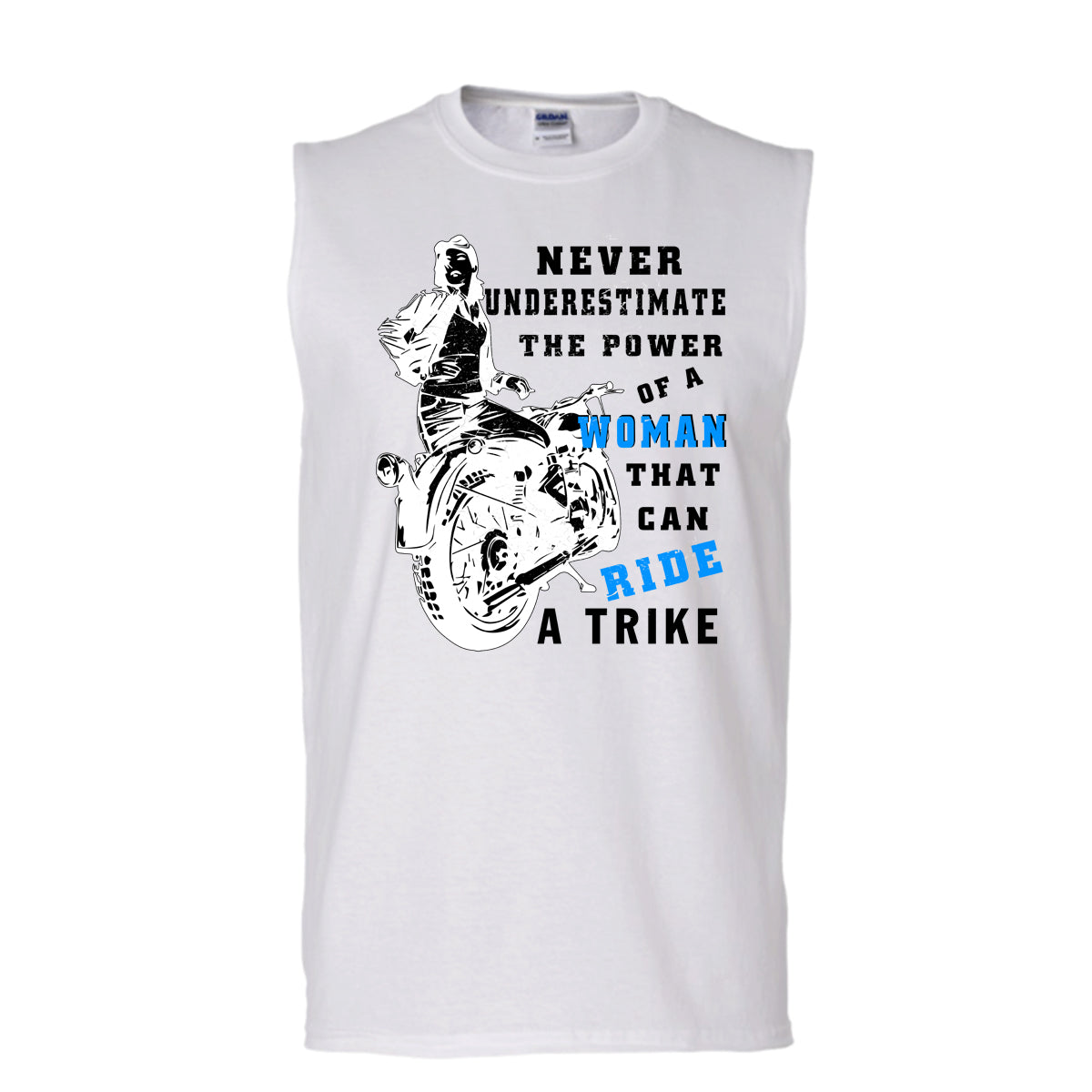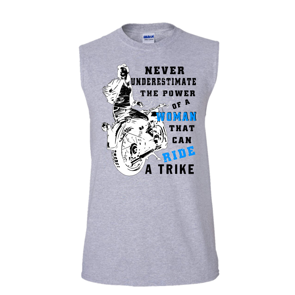 Never Underestimate T Shirt, Riding A Trike T Shirt, Awesome t-shirts (Men's Cotton Sleeveless)