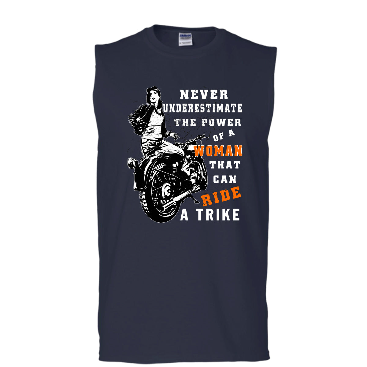 Never Underestimate T Shirt, The Power Of Women That Can Ride A Trike T Shirt, Cool T Shirt (Men's Cotton Sleeveless)