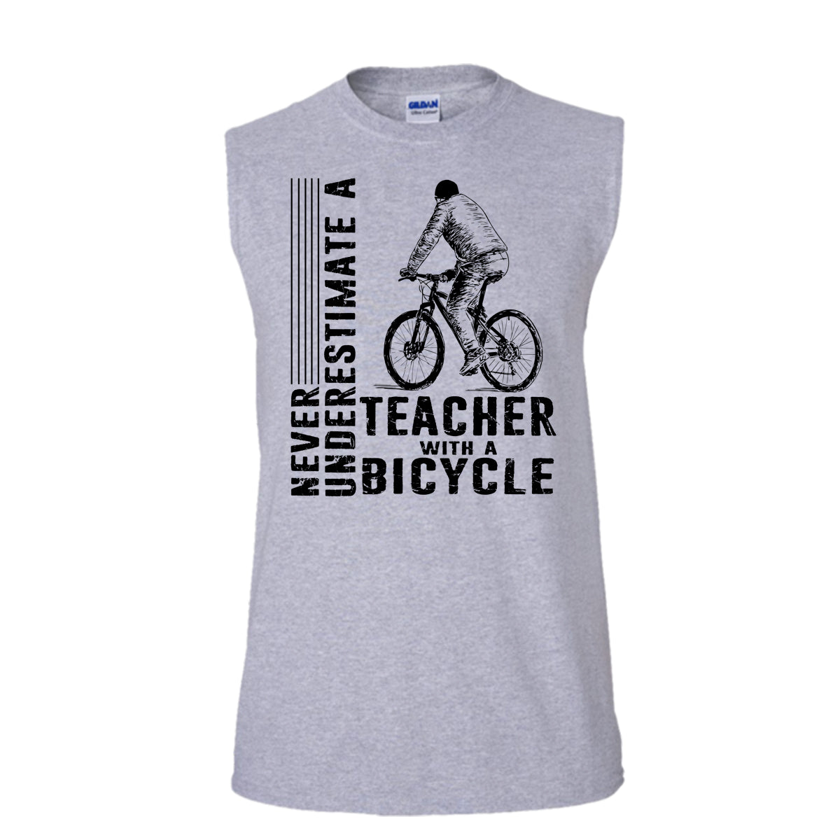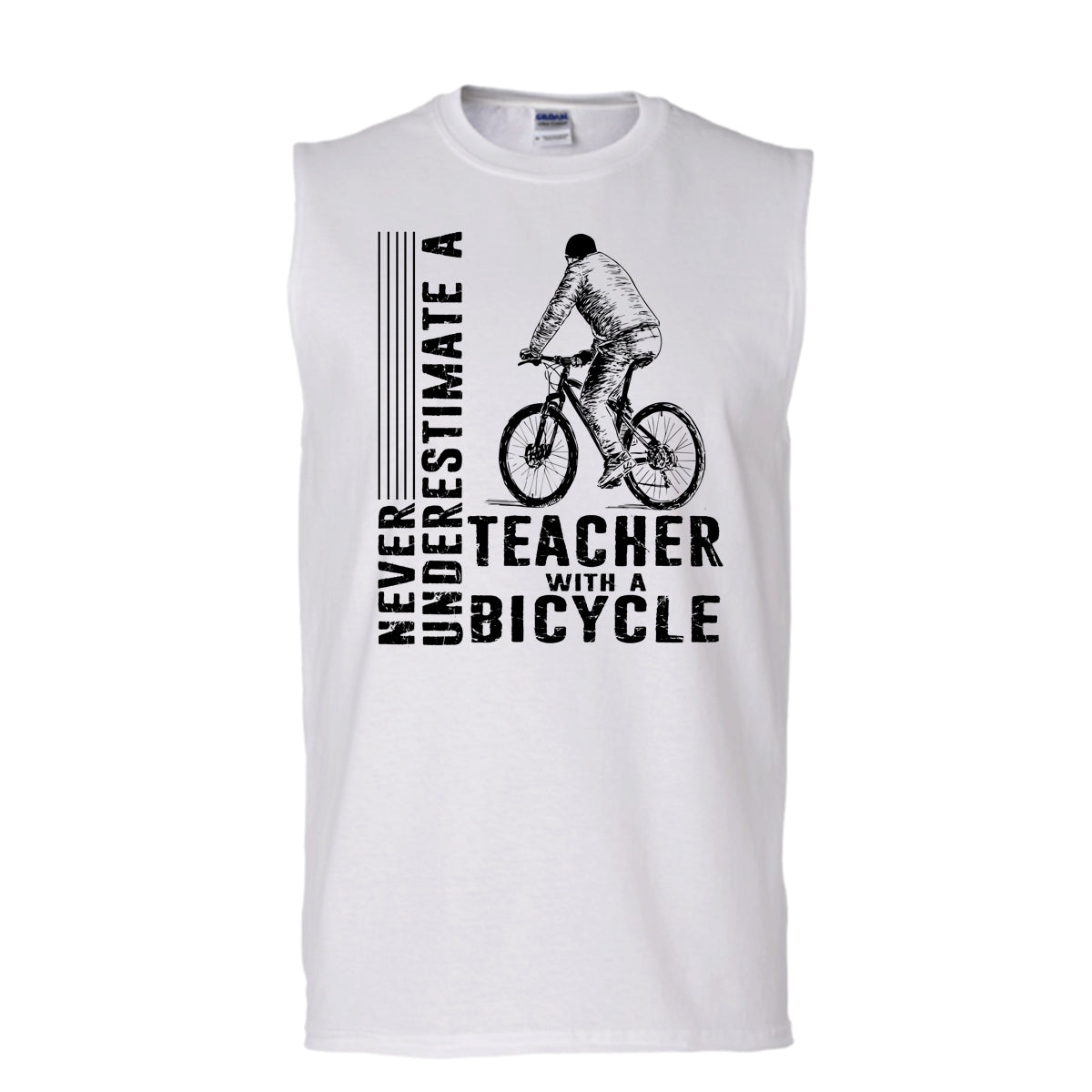 Never Underestimate Teacher With A Bicycle T Shirt, Teacher With A Bicycle T Shirt, Awesome t-shirts (Men's Cotton Sleeveless)