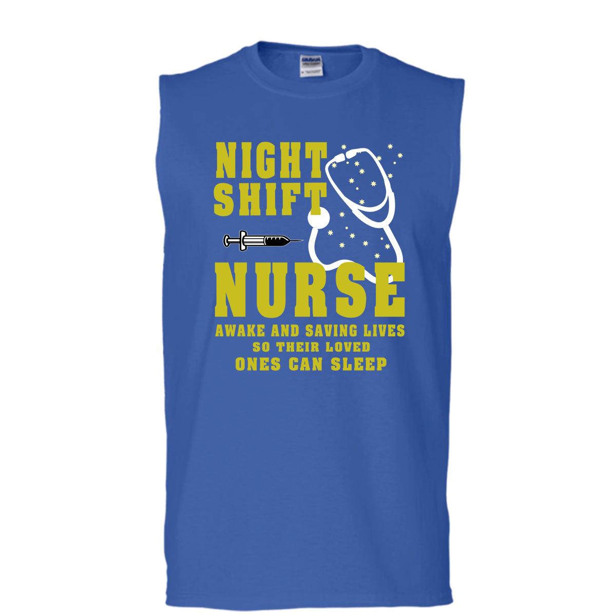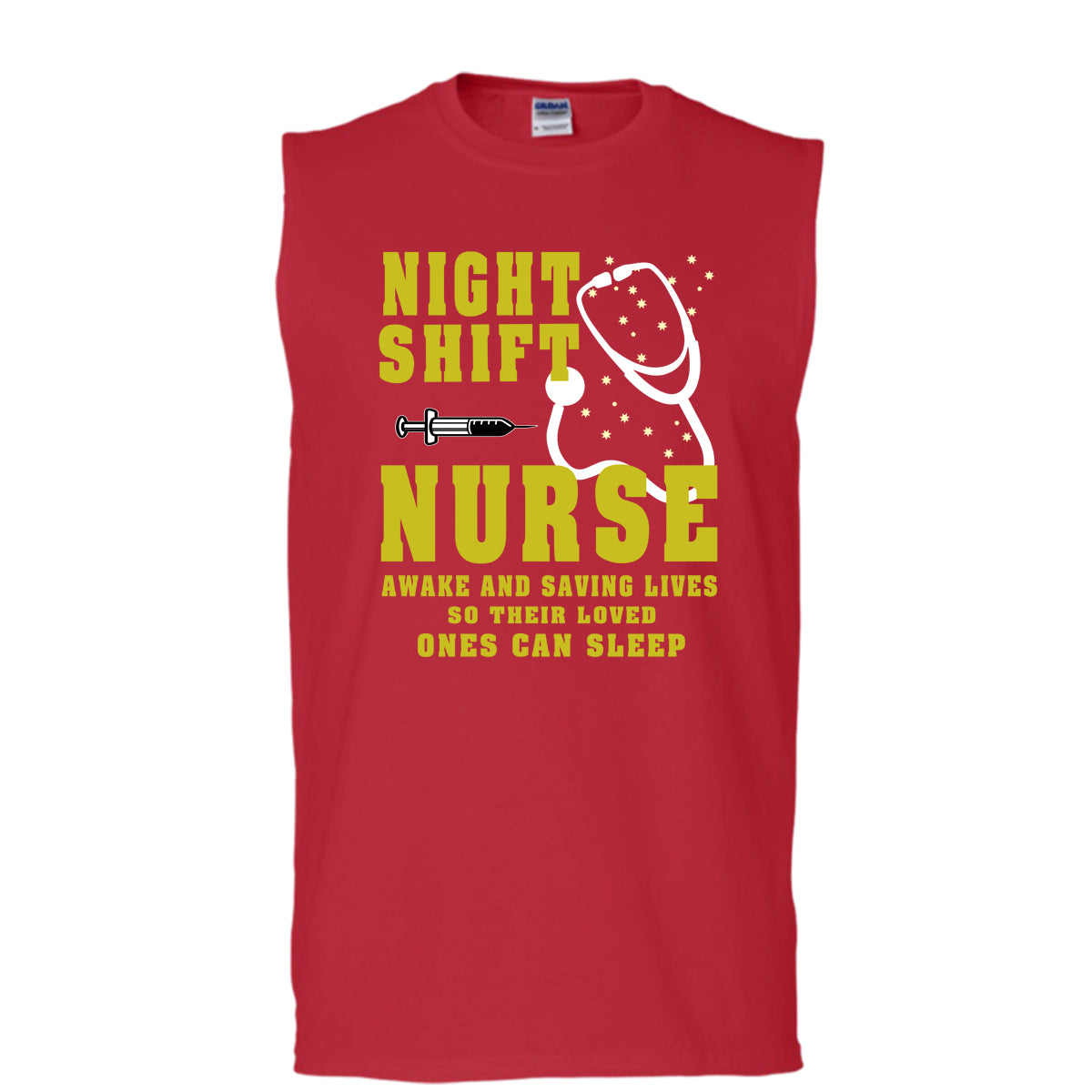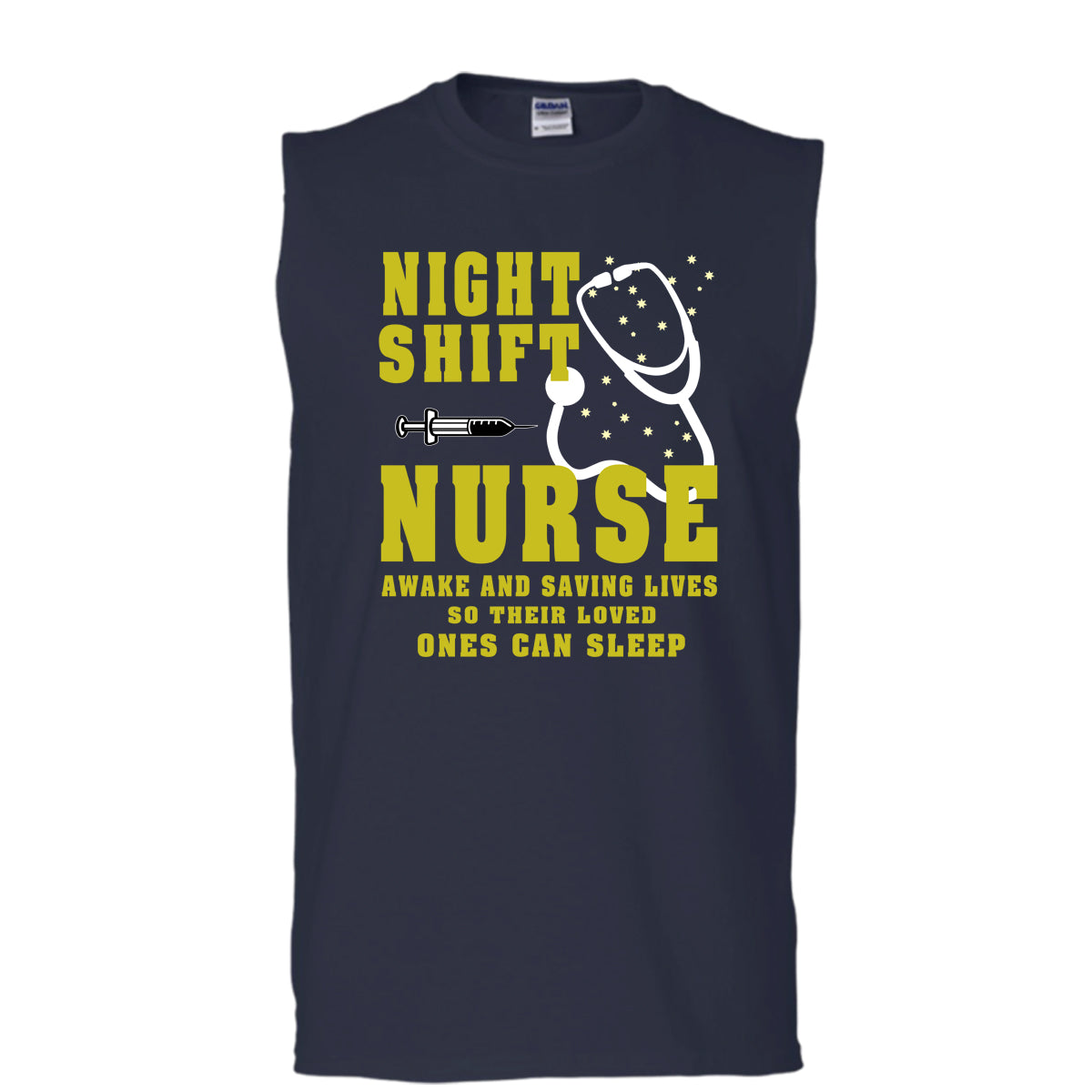 Night Shift Nurse T Shirt, Awake And Saving Lives T Shirt, Cool T Shirt (Men's Cotton Sleeveless)
