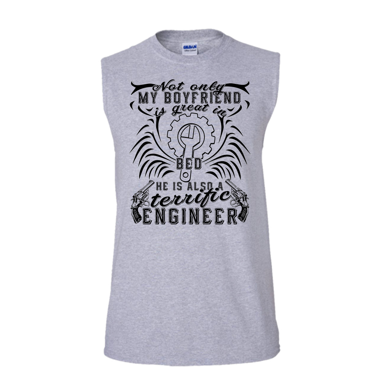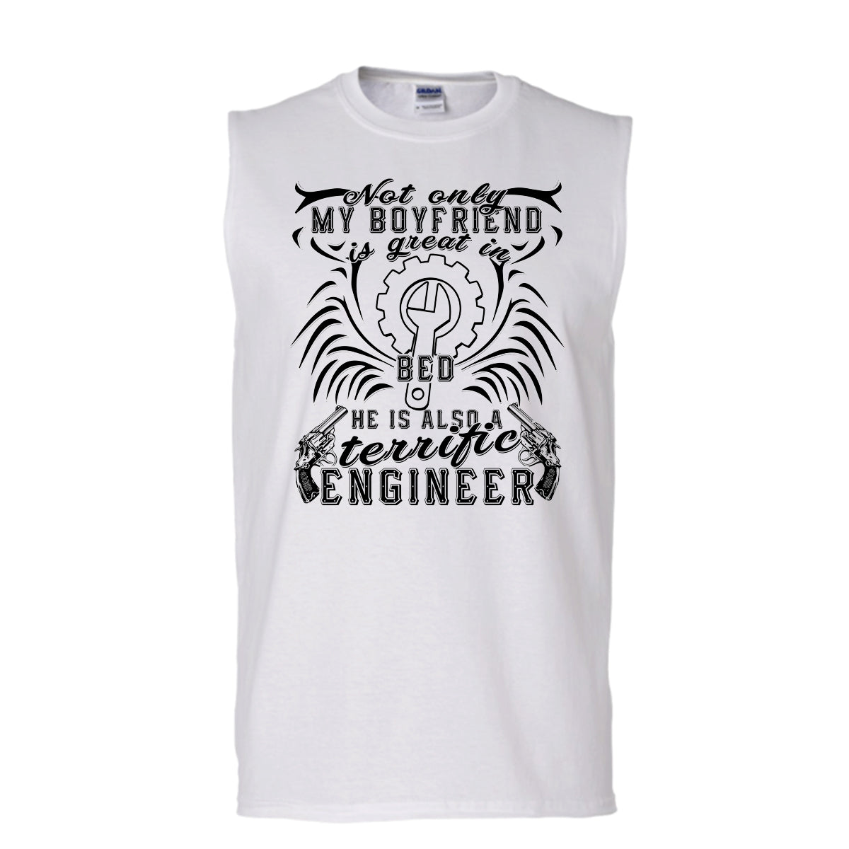 Not Only My Boyfriend Is Great In Bed T Shirt, Coolest Engineer T Shirt, Awesome t-shirts (Men's Cotton Sleeveless)
