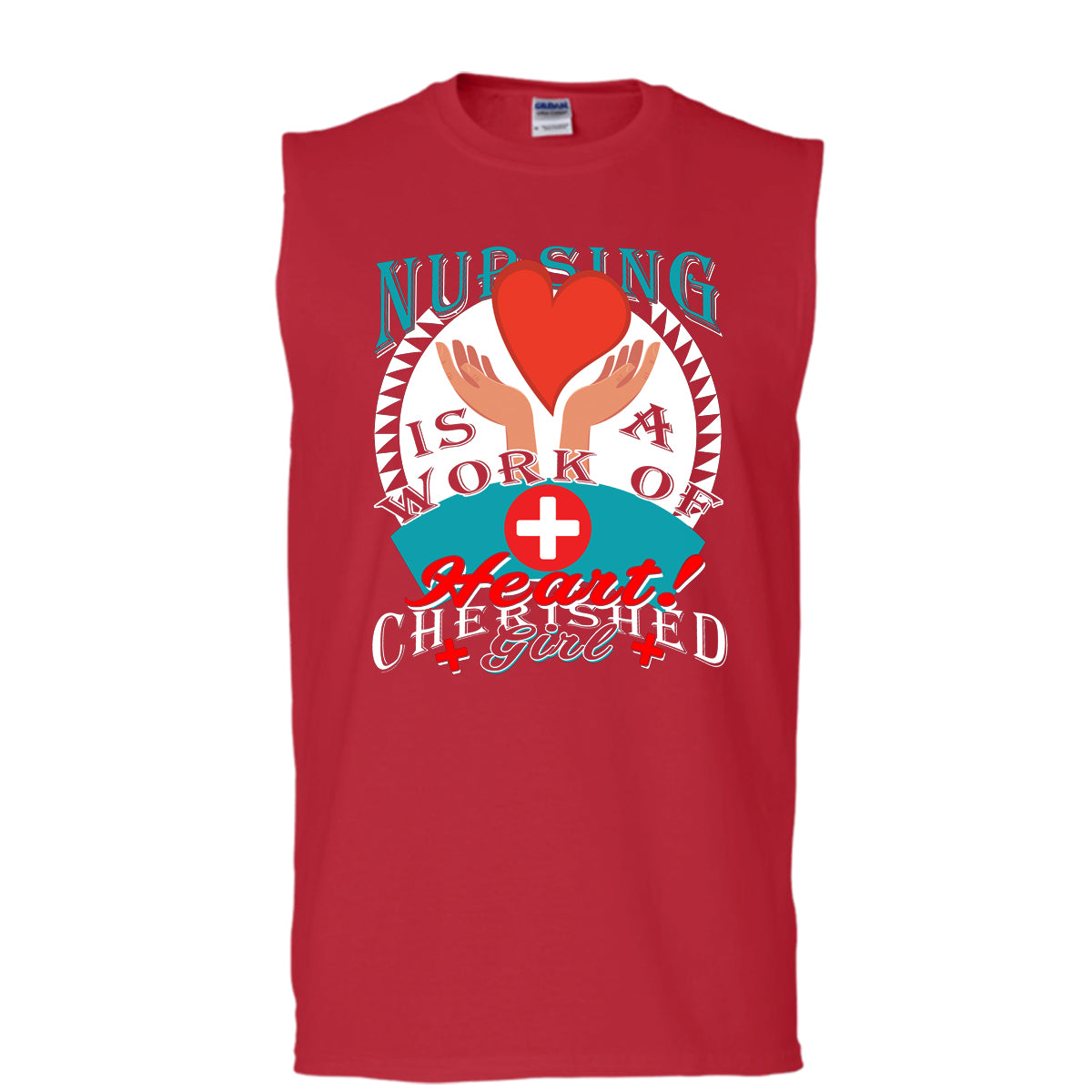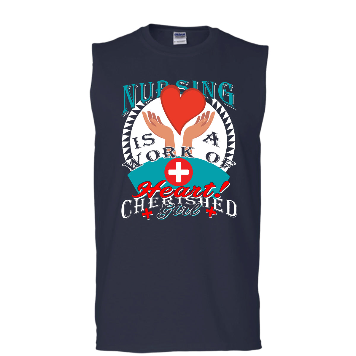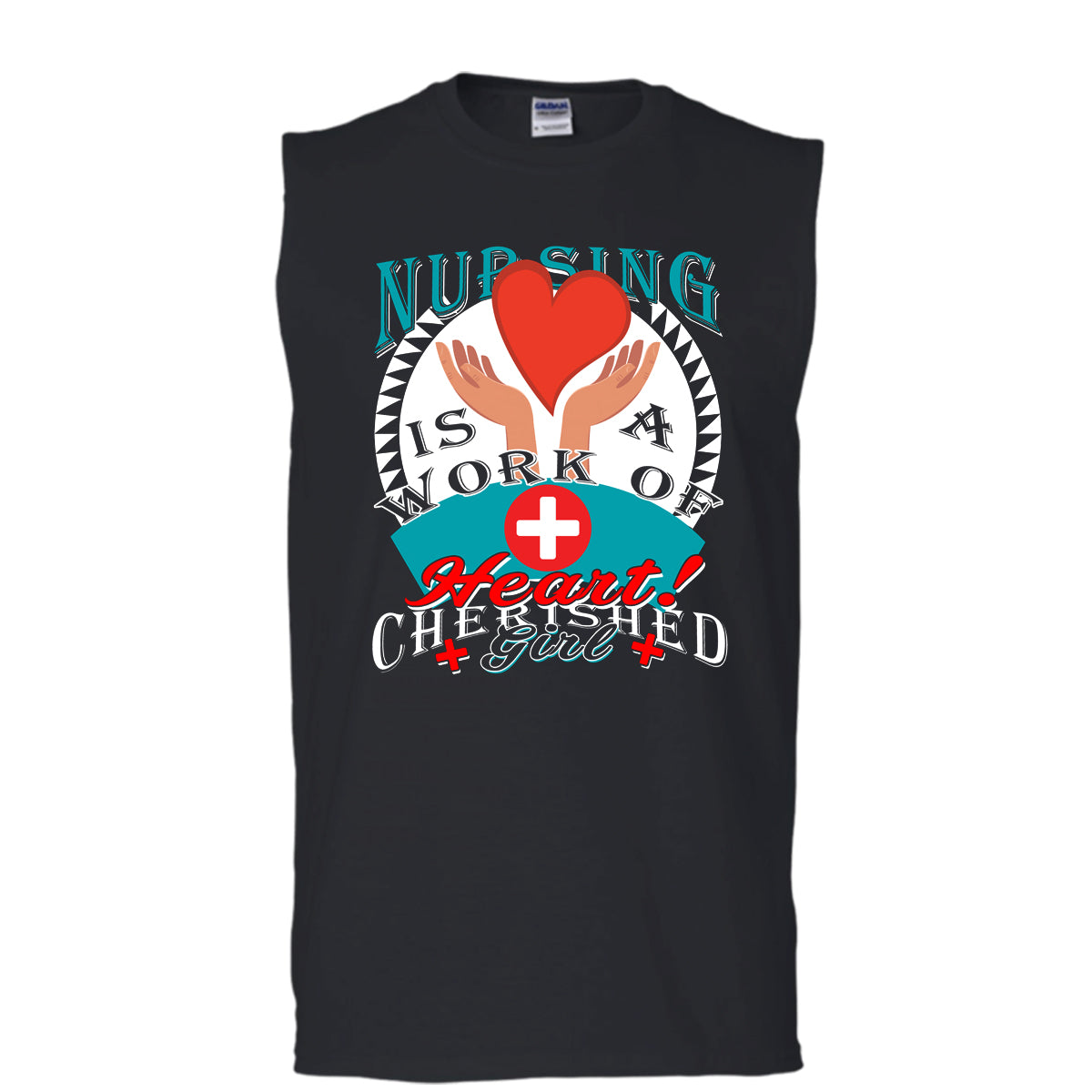 Nursing Is A Work Of Heart T Shirt, Cherished Girl T Shirt, Cool T Shirt (Men's Cotton Sleeveless)