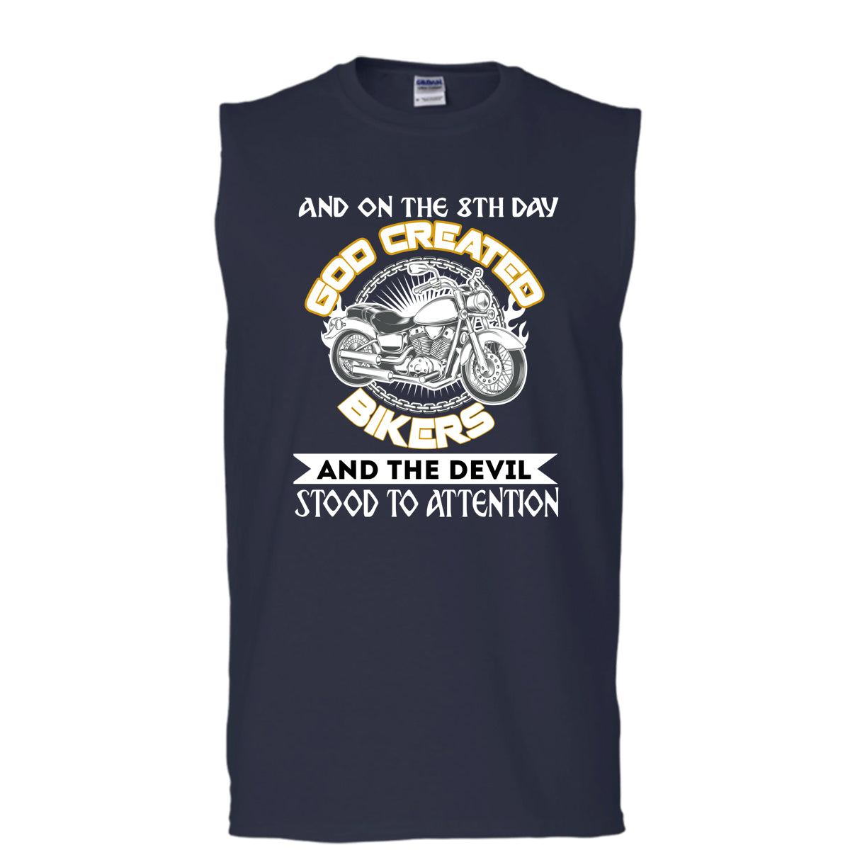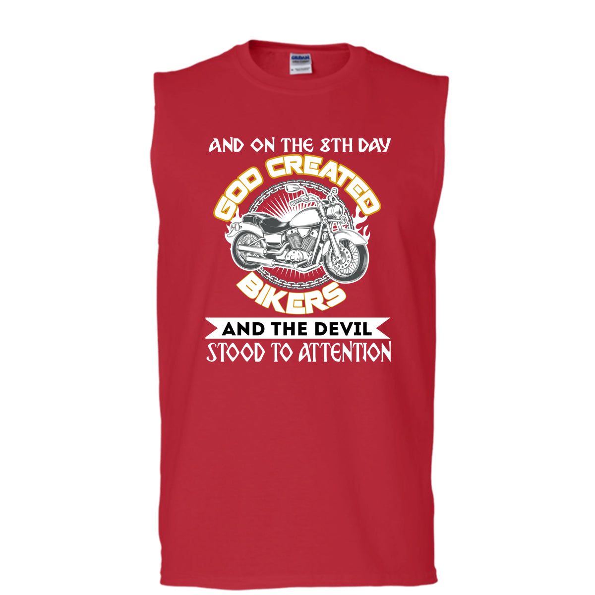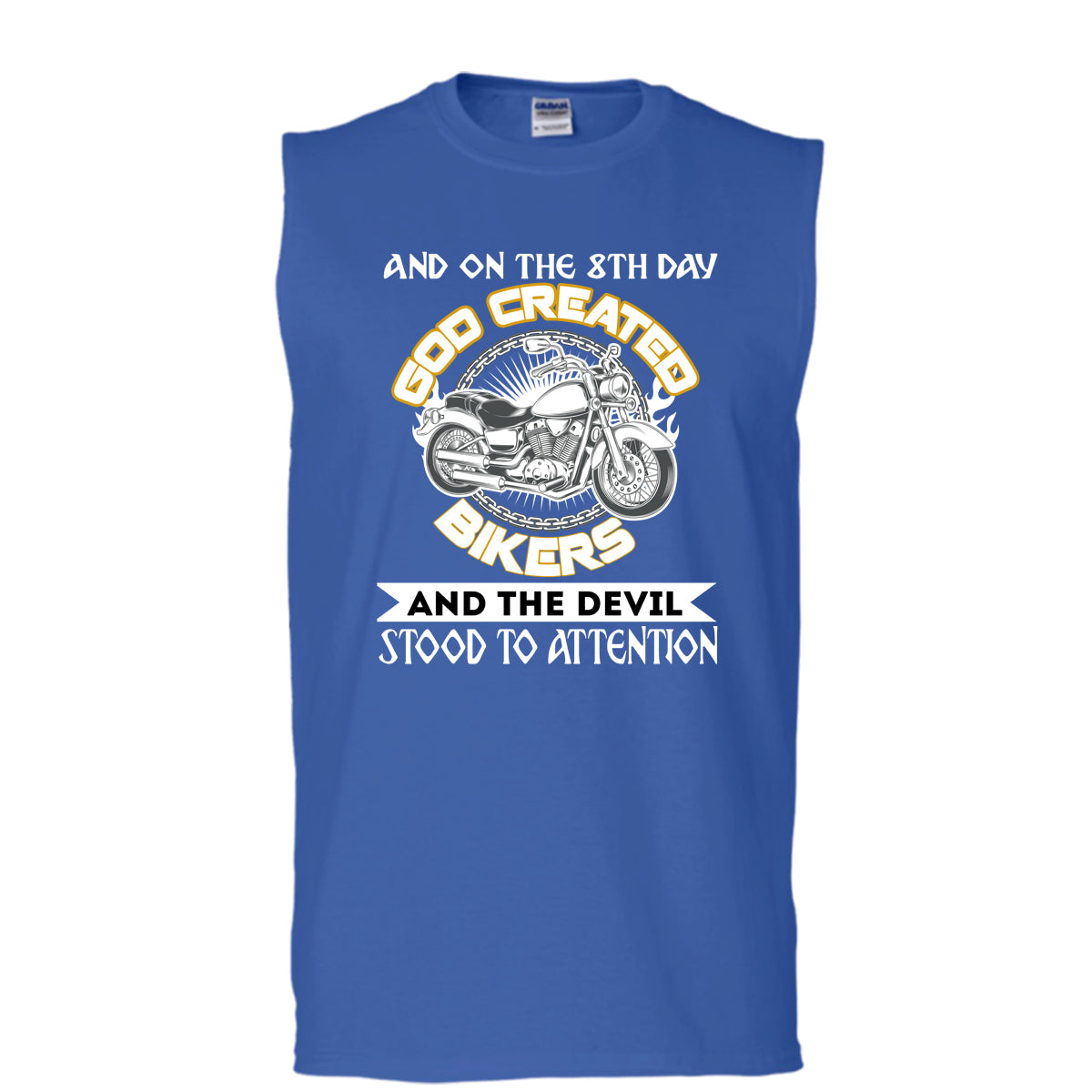 On The 8Th Day T Shirt, God Created Bikers T Shirt, Cool T Shirt (Men's Cotton Sleeveless)
