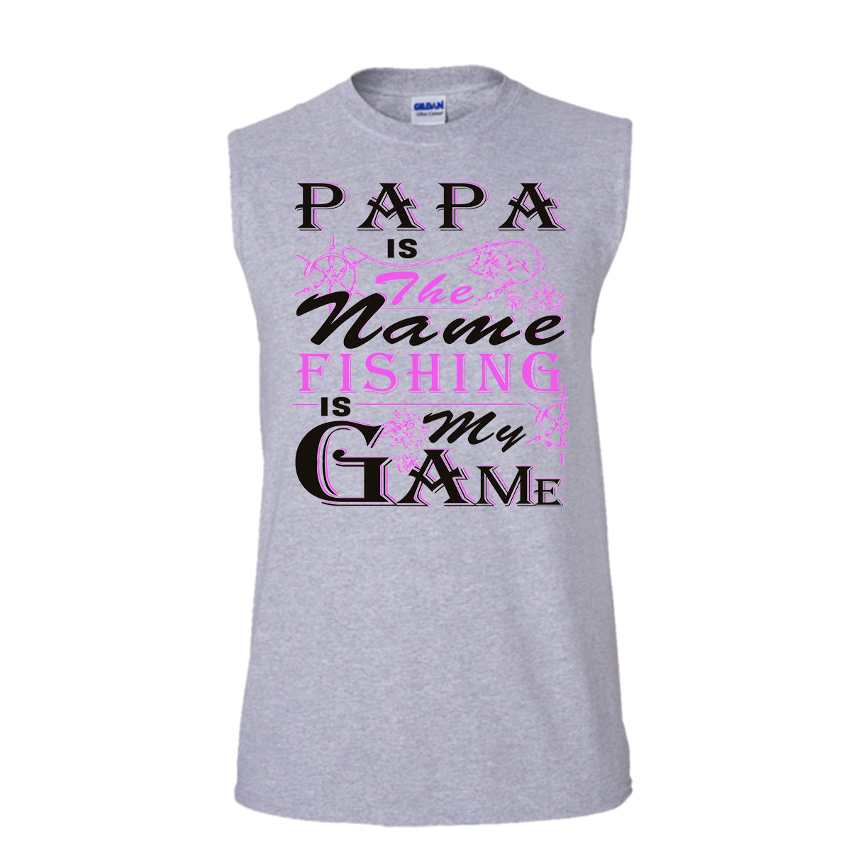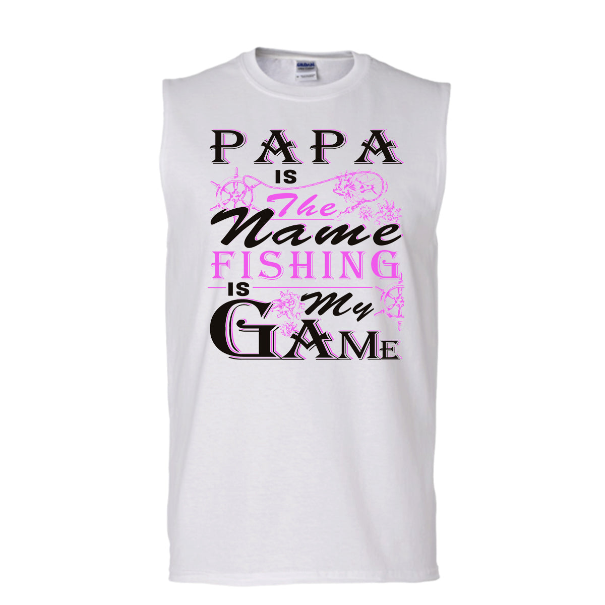 Papa Is A Name T Shirt, Coolest Fishing Papa T Shirt, Awesome t-shirts (Men's Cotton Sleeveless)