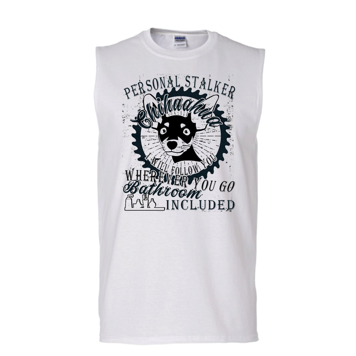 Personal Stalker Chihuahua T Shirt, I Love My Chihuahua T Shirt, Awesome t-shirts (Men's Cotton Sleeveless)