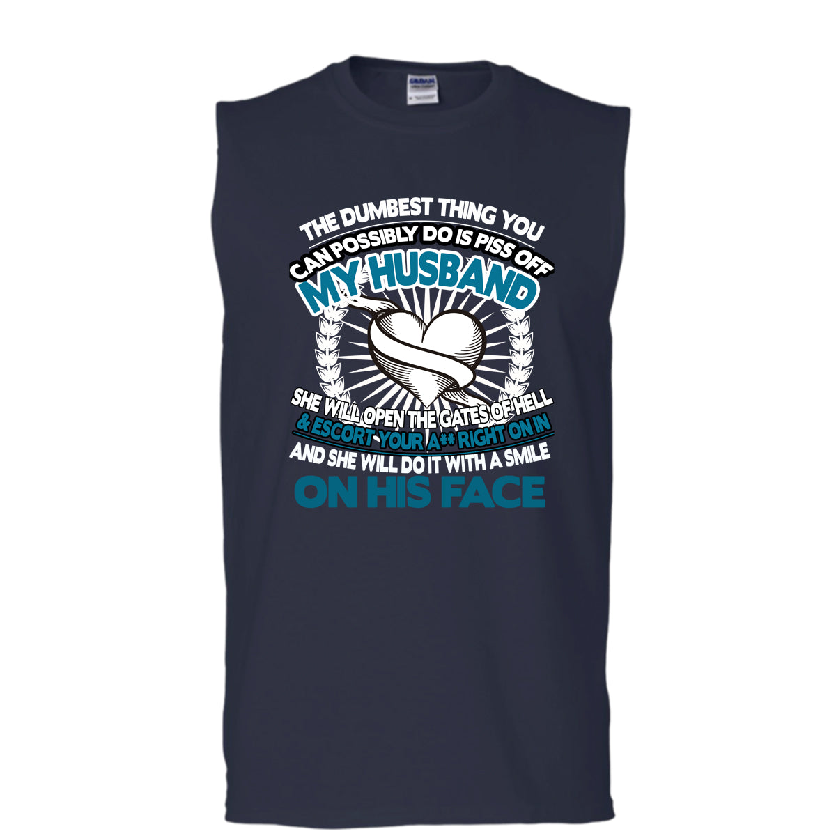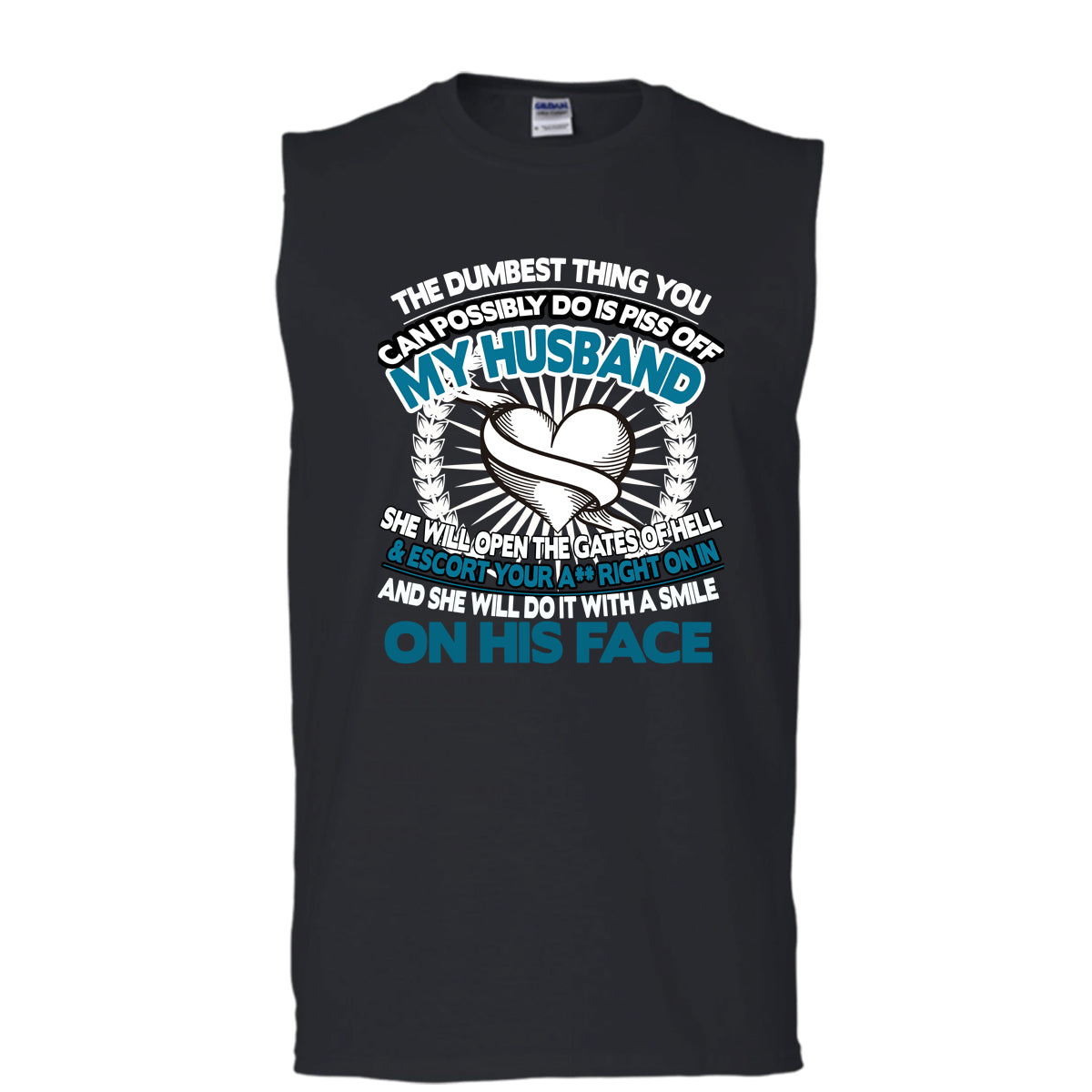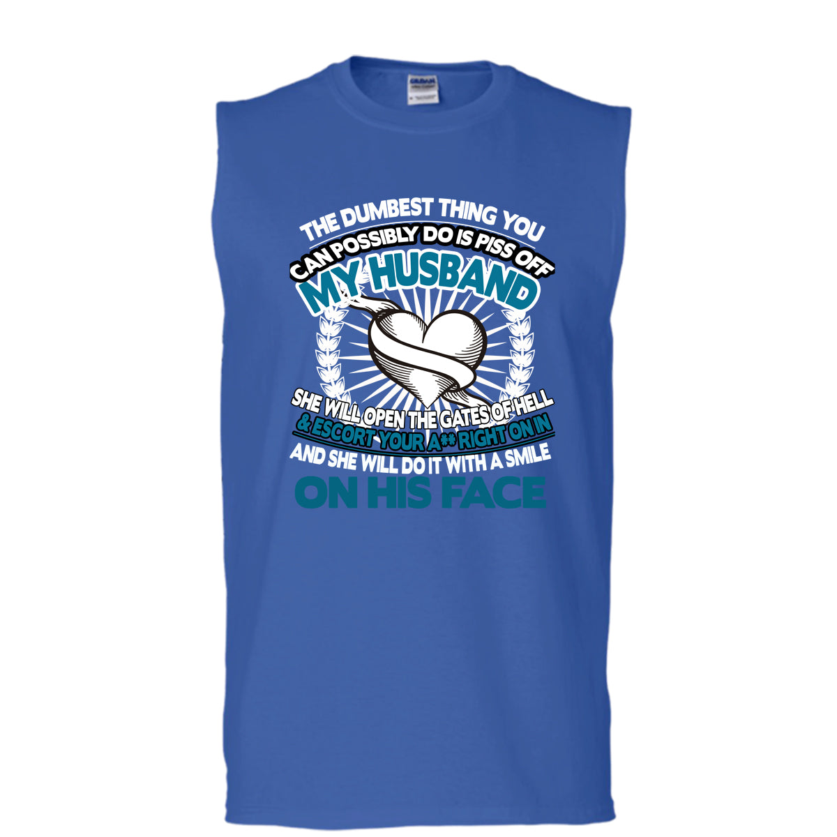 Piss Off A My Husband T Shirt, Smile On Her Face T Shirt, Cool T Shirt (Men's Cotton Sleeveless)