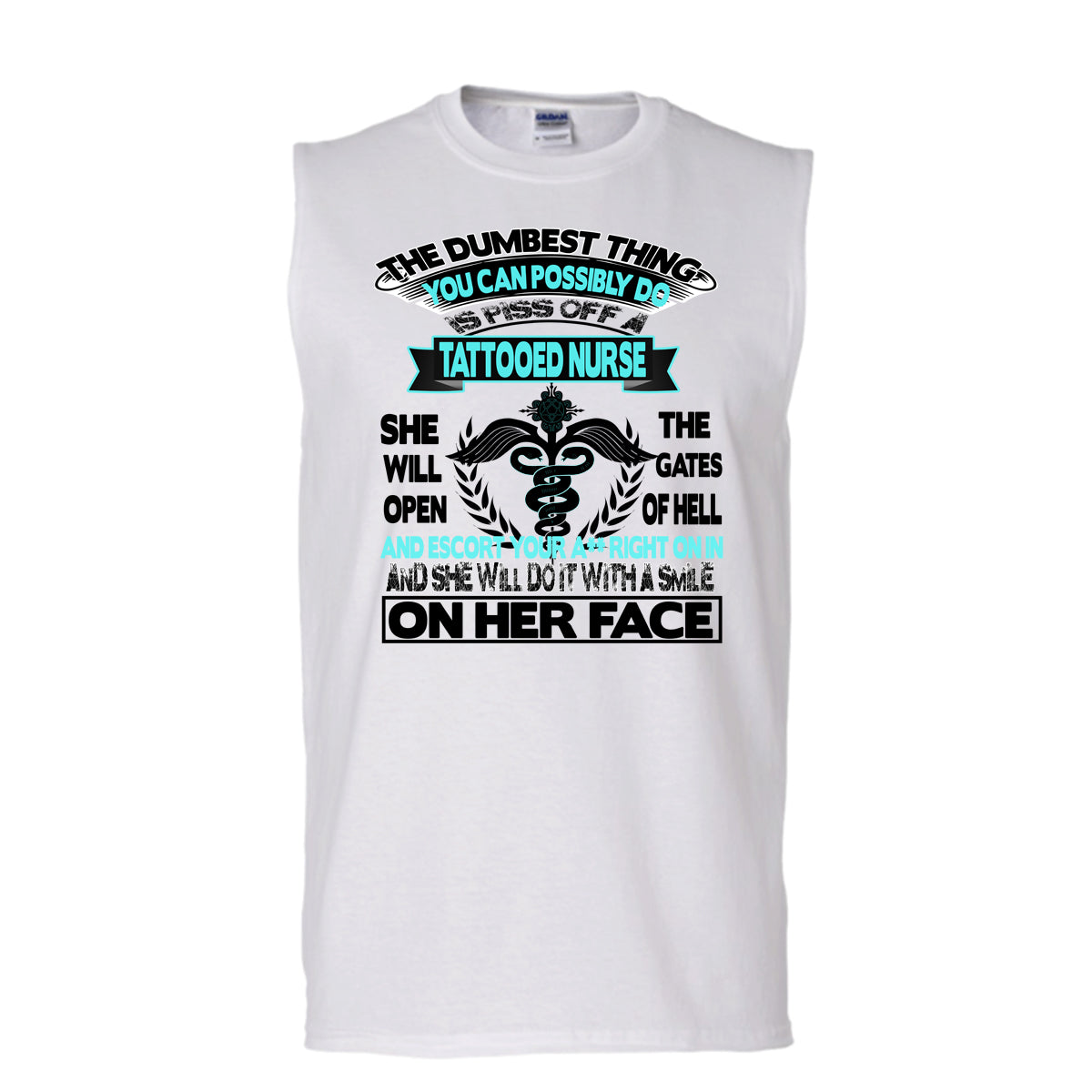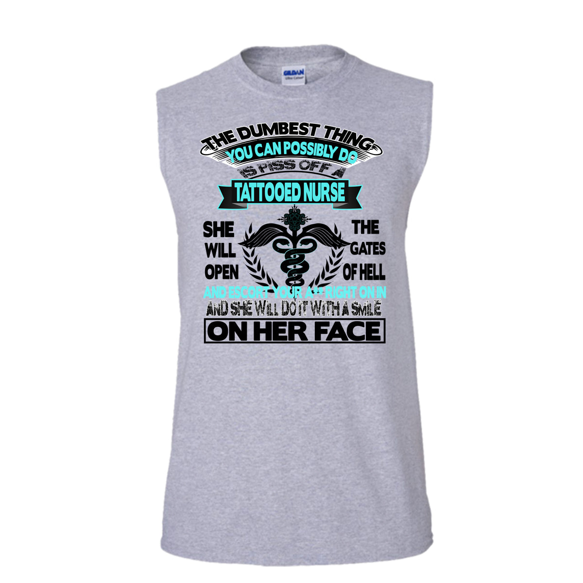 Piss Off A Tattooed Nurse T Shirt, Coolest Nurse T Shirt, Awesome t-shirts (Men's Cotton Sleeveless)