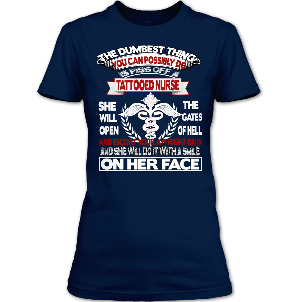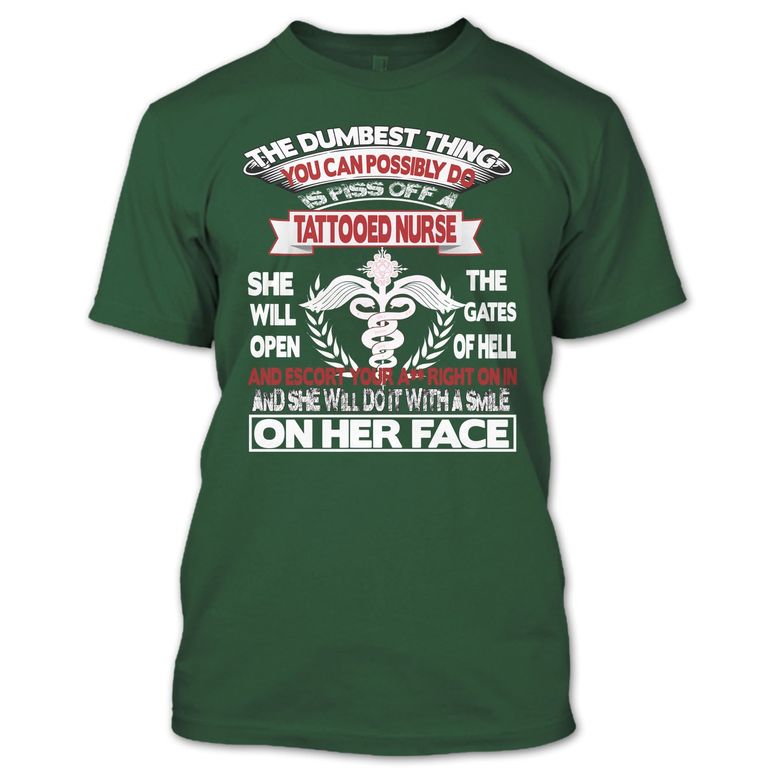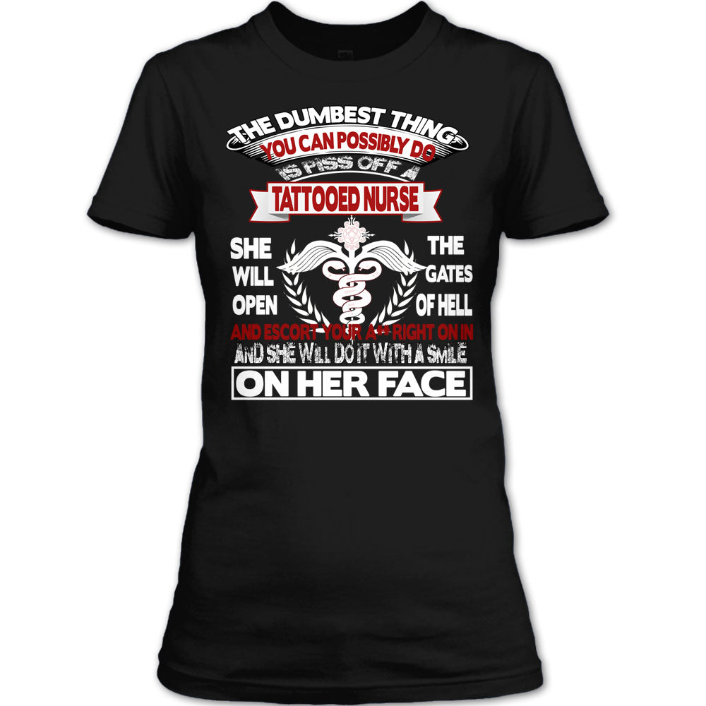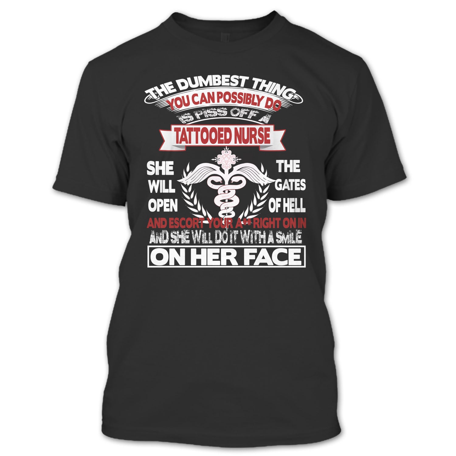 Piss Off A Tattooed Nurse T Shirt, Smile On Her Face T Shirt