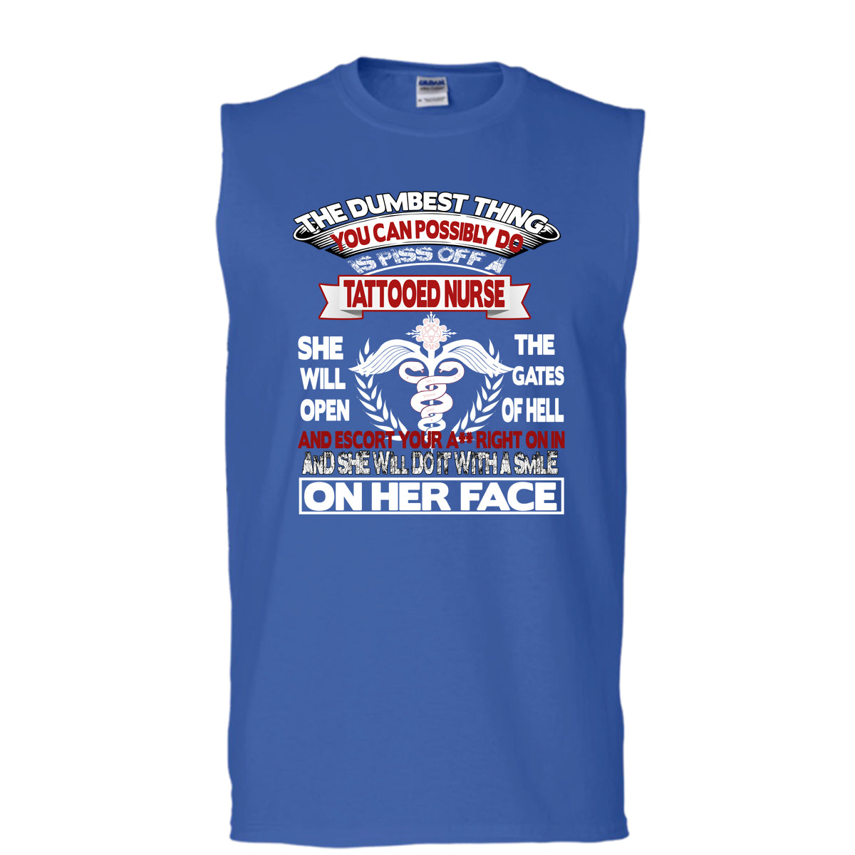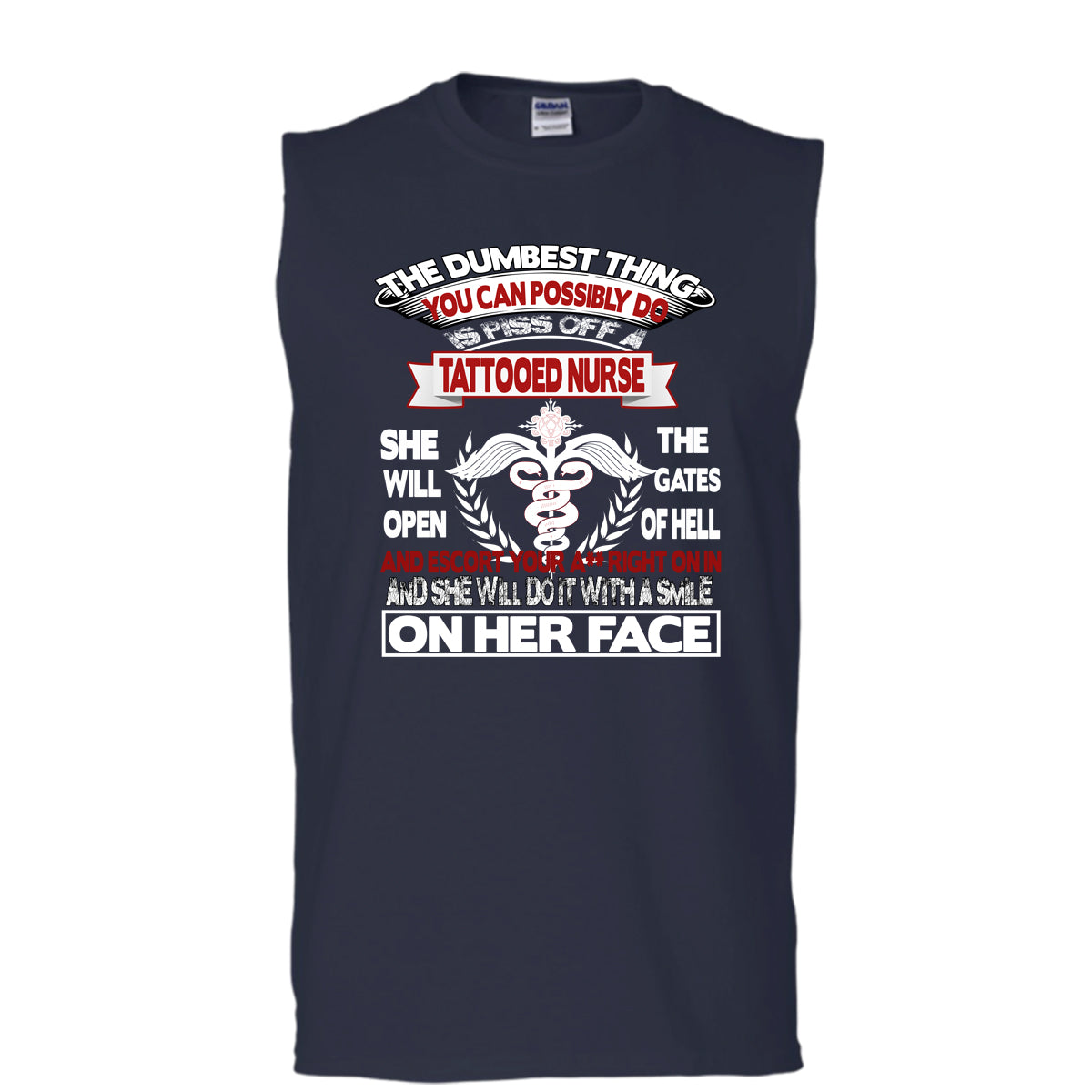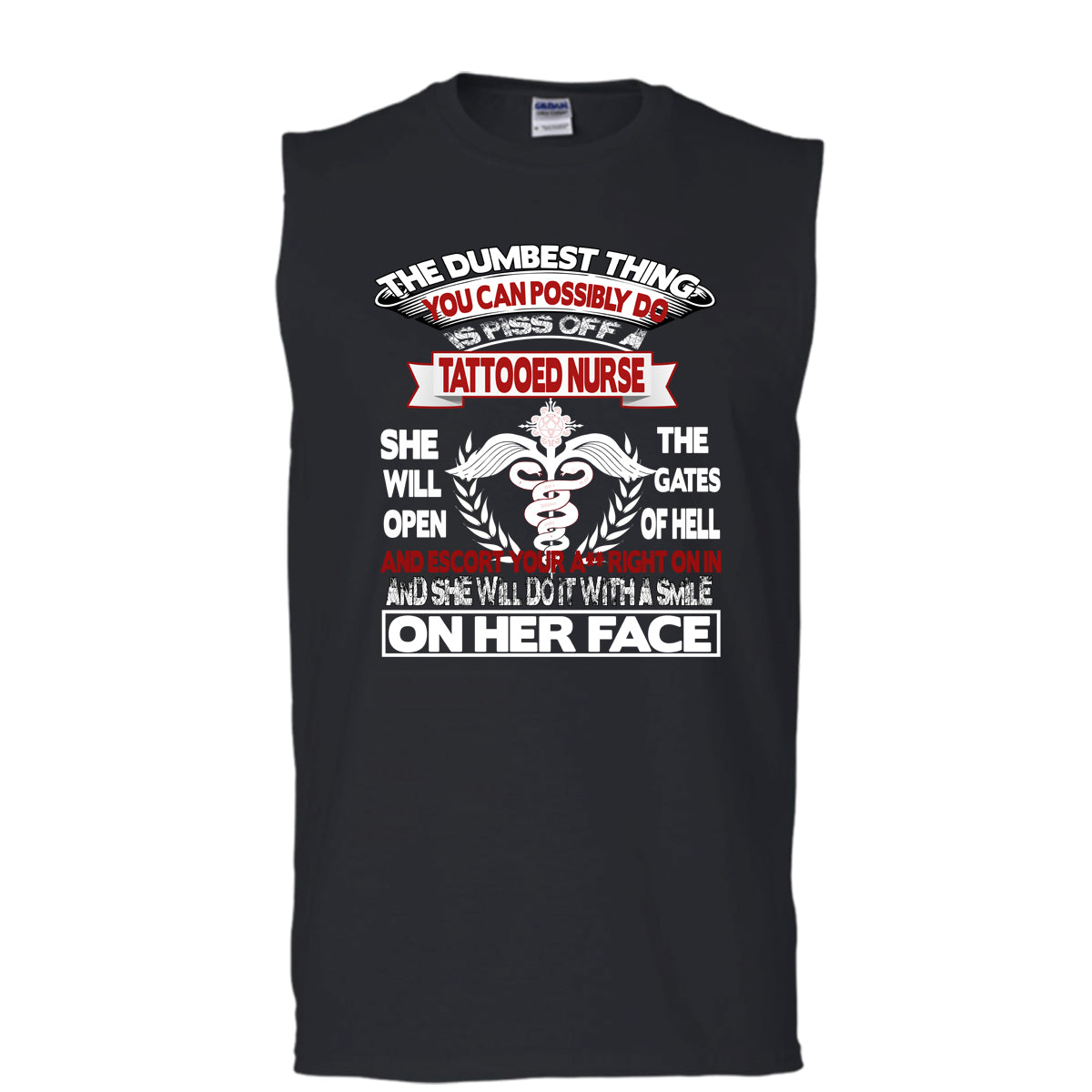 Piss Off A Tattooed Nurse T Shirt, Smile On Her Face T Shirt, Cool T Shirt (Men's Cotton Sleeveless)
