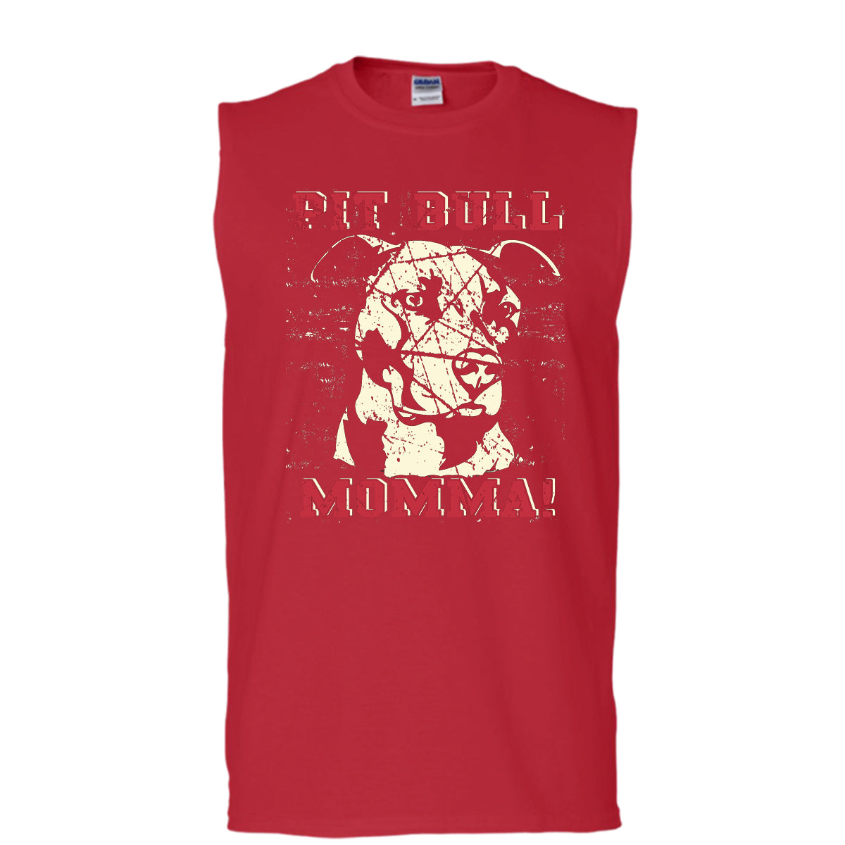 Pit Bull Momma T Shirt, I Love My Pit Bull T Shirt, Cool T Shirt (Men's Cotton Sleeveless)