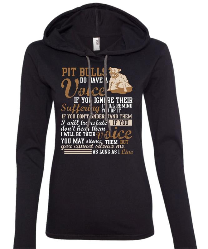 Pit Bulls Do Have A Voice T Shirt, You May Silence T Shirt (Anvil Ladies Ringspun Hooded)