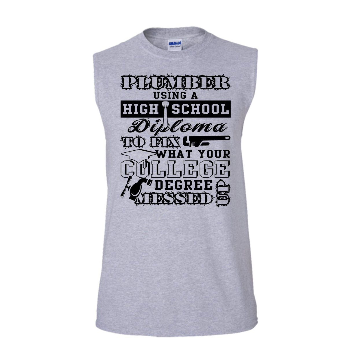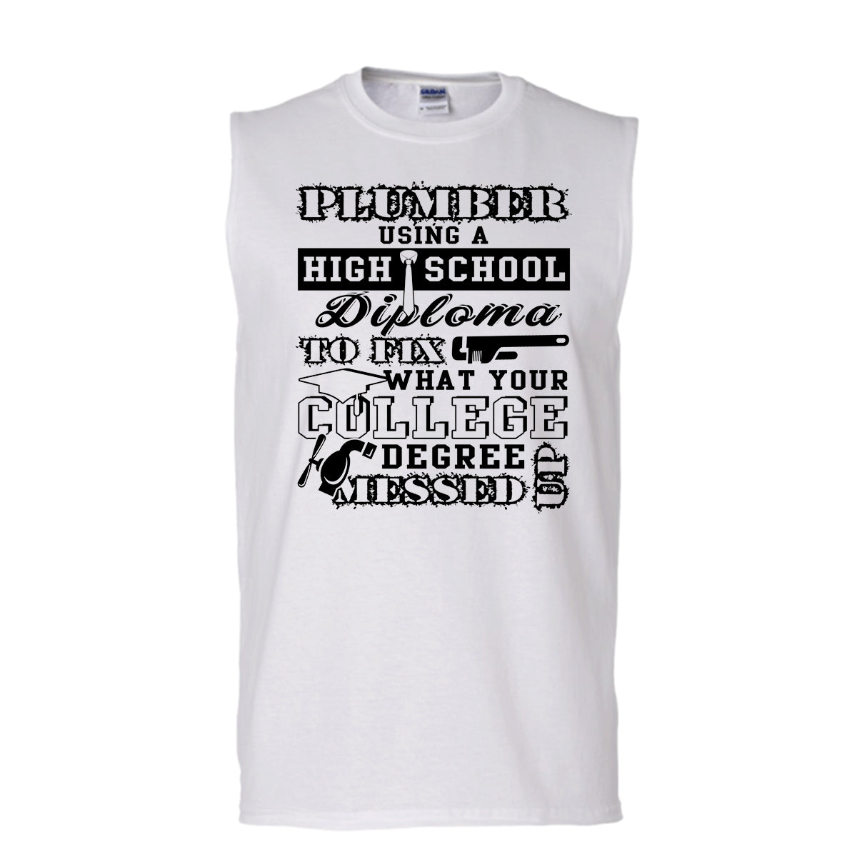 Plumber Using A High School Diploma T Shirt, Coolest Plumber T Shirt, Awesome t-shirts (Men's Cotton Sleeveless)