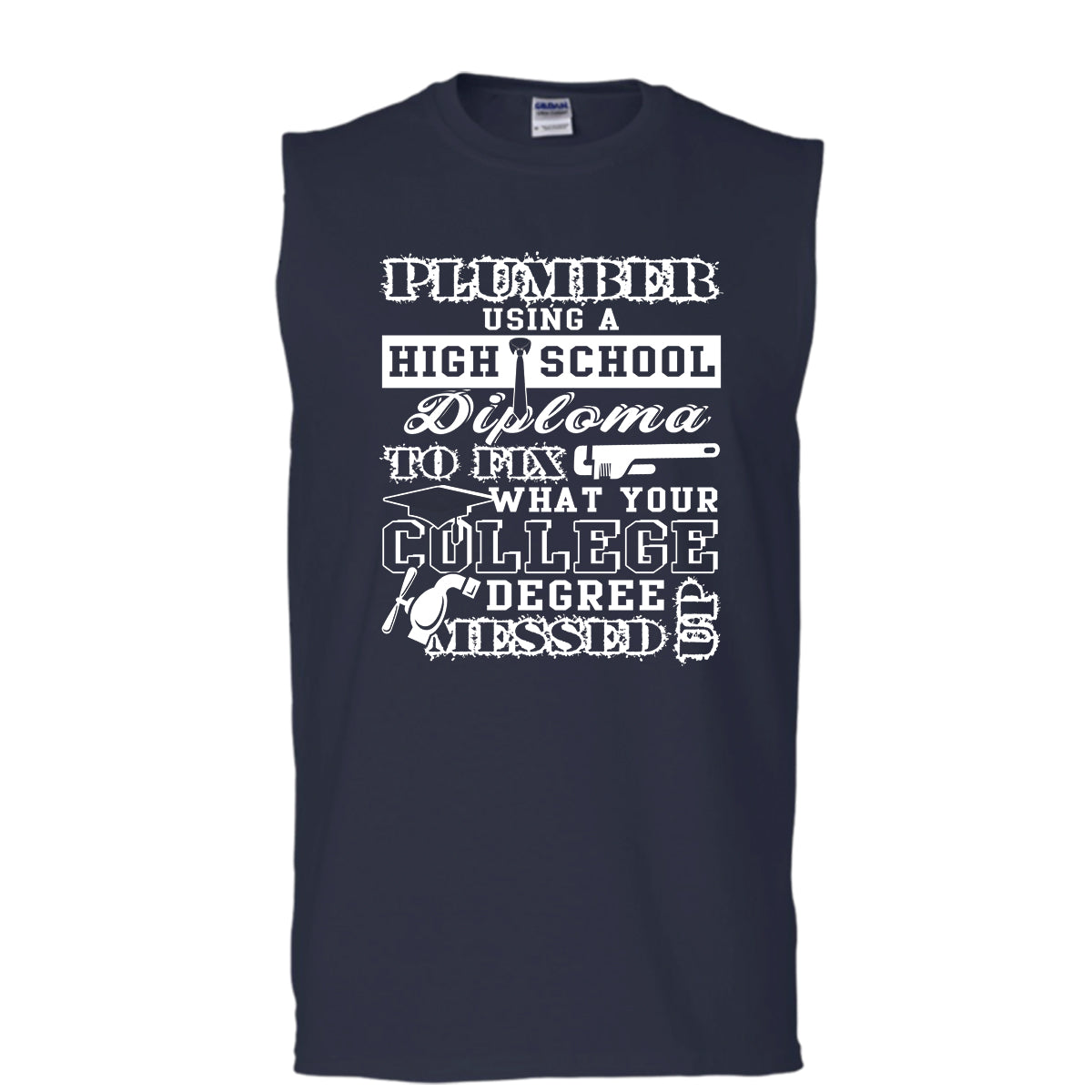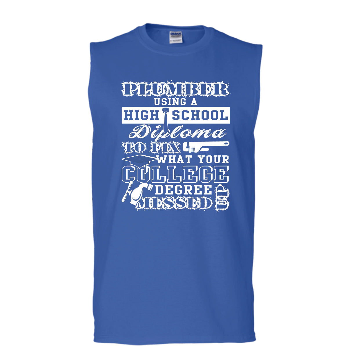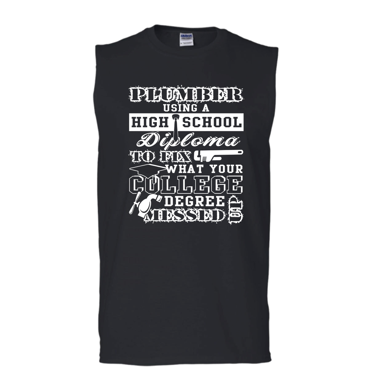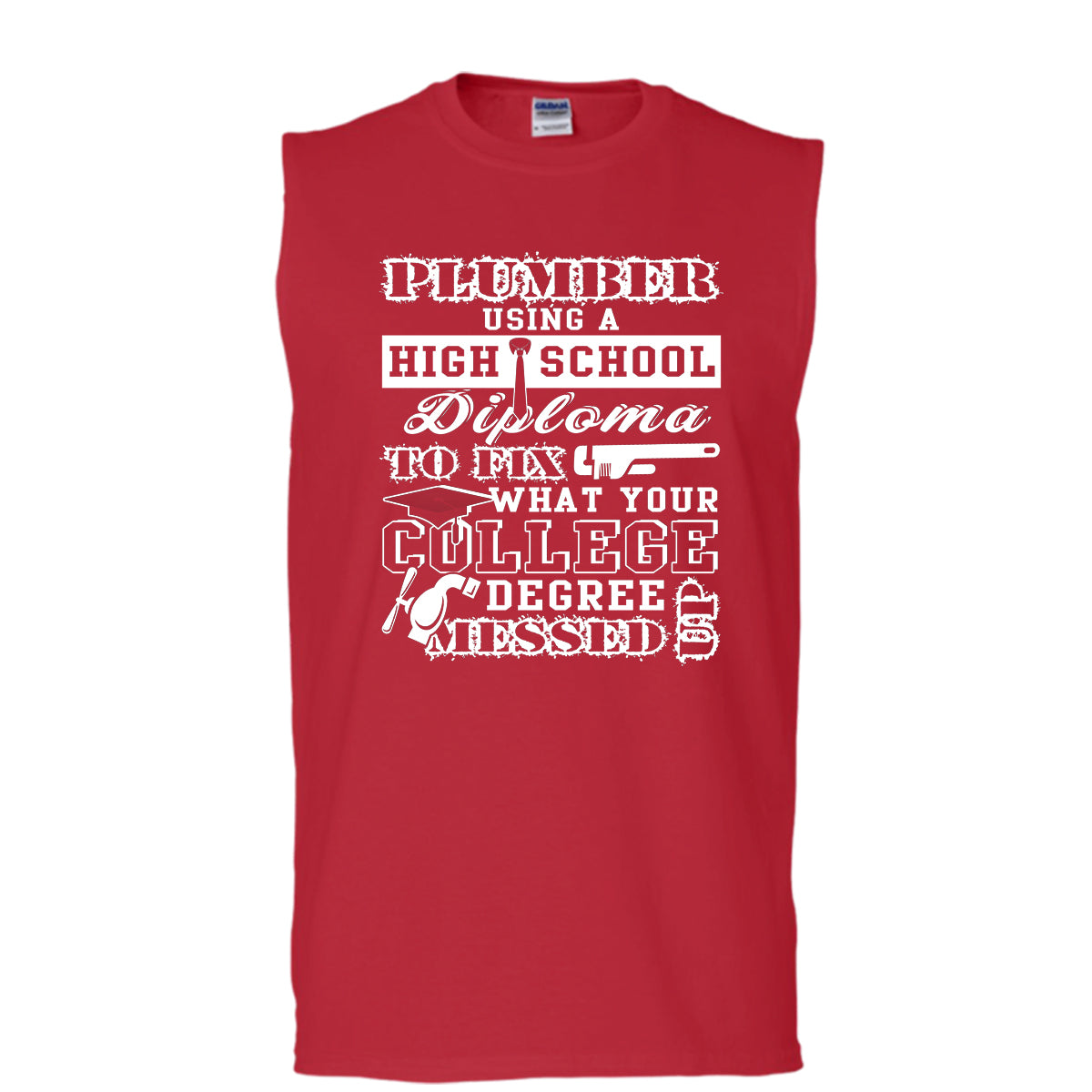 Plumber Using A High School Diploma T Shirt, I Am A Plumber T Shirt, Cool T Shirt (Men's Cotton Sleeveless)
