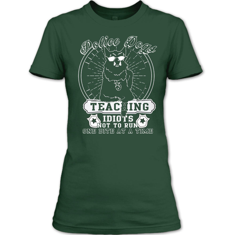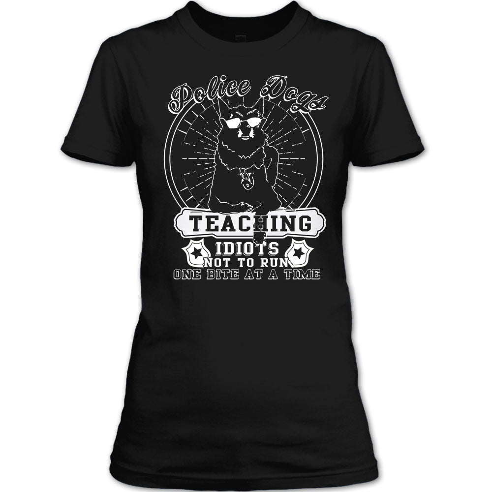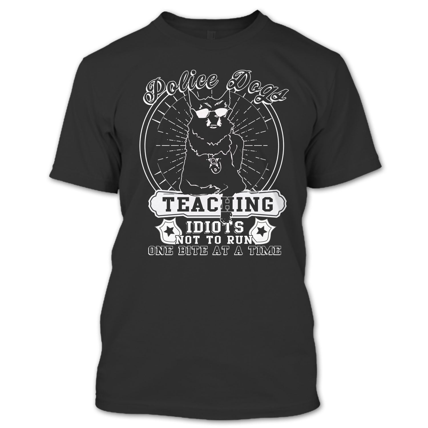 Police Dogs Teaching T Shirt, Idiots Not To Run One Bite At A Time T Shirt