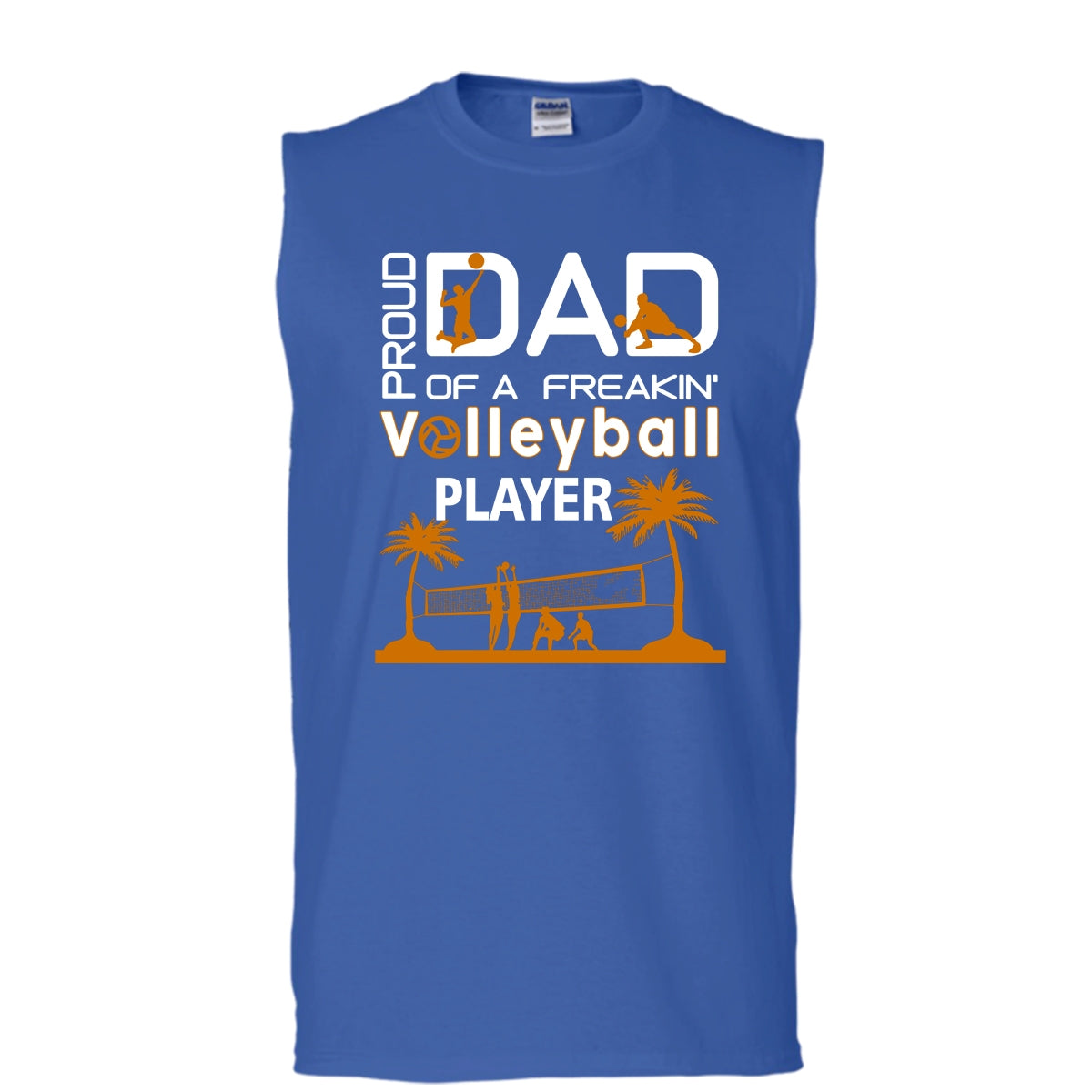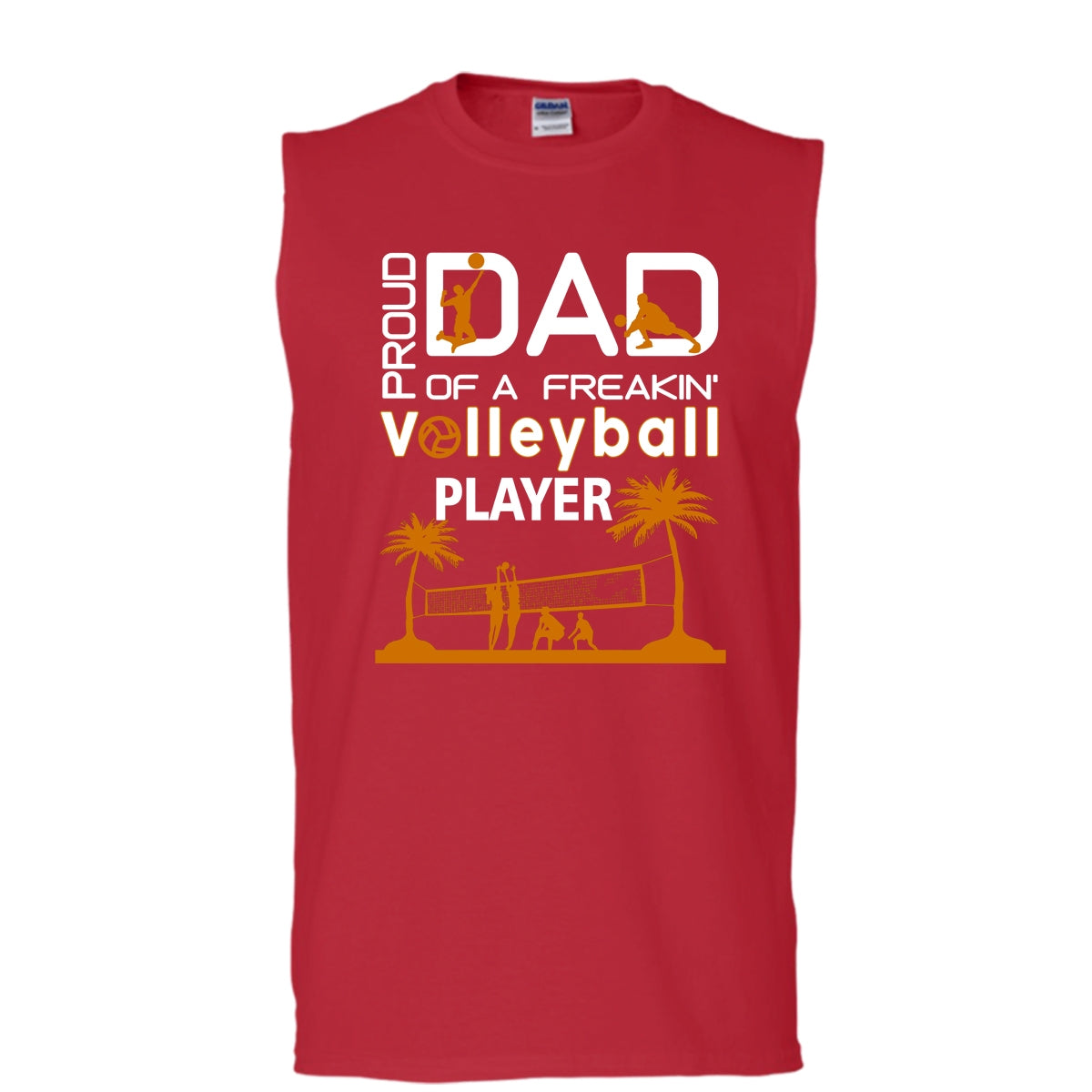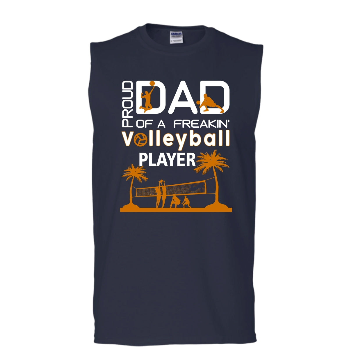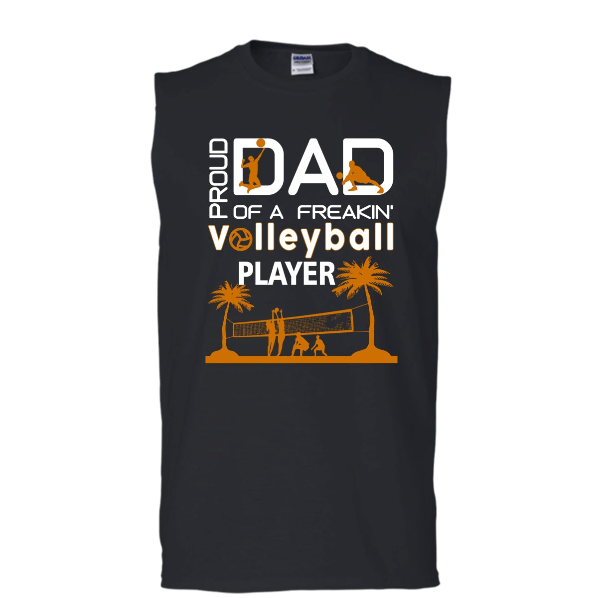 Proud Dad T Shirt, A Freaking Volleyball Player T Shirt, Cool T Shirt (Men's Cotton Sleeveless)