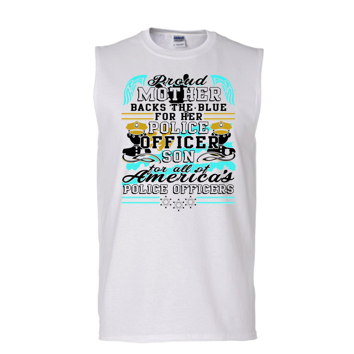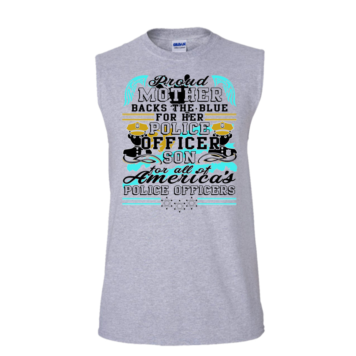Proud Mother Backs The Blue T Shirt, All Of American's Police Officers T Shirt, Awesome t-shirts (Men's Cotton Sleeveless)