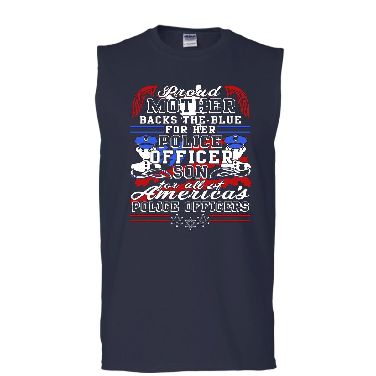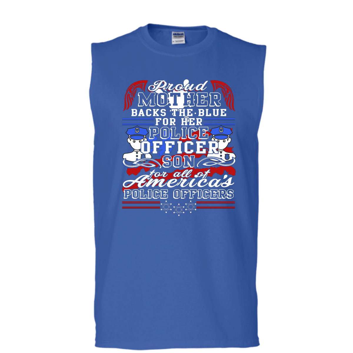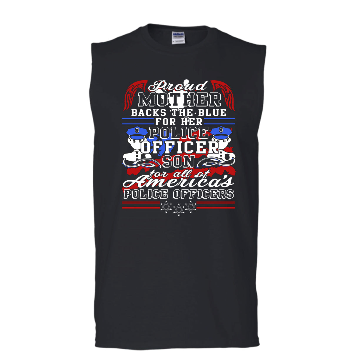 Proud Mother Backs The Blue T Shirt, Police Officer Son T Shirt, Cool T Shirt (Men's Cotton Sleeveless)