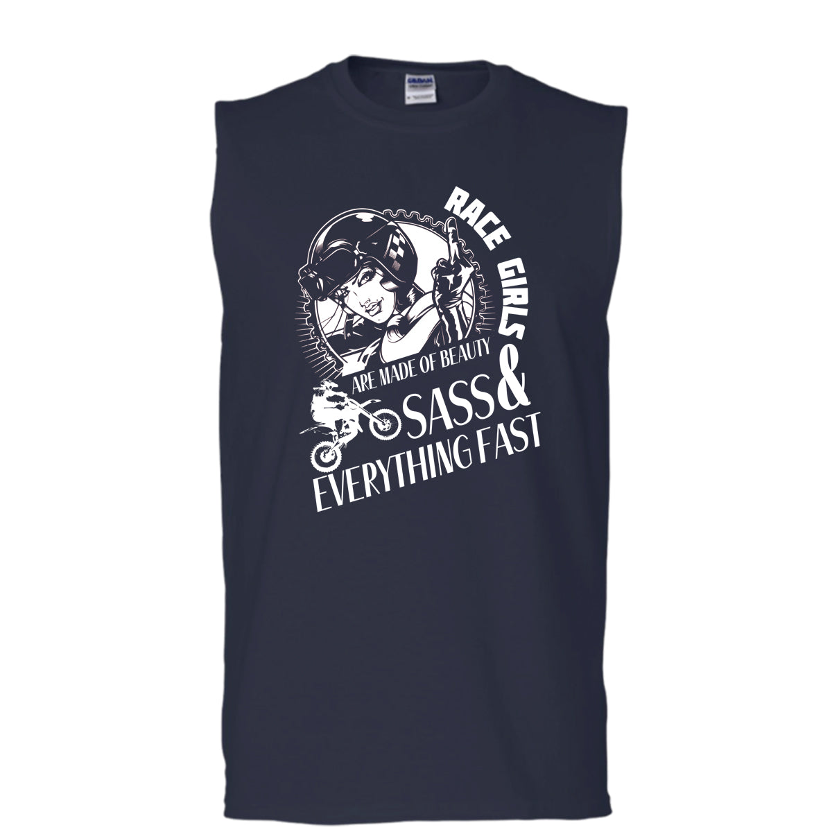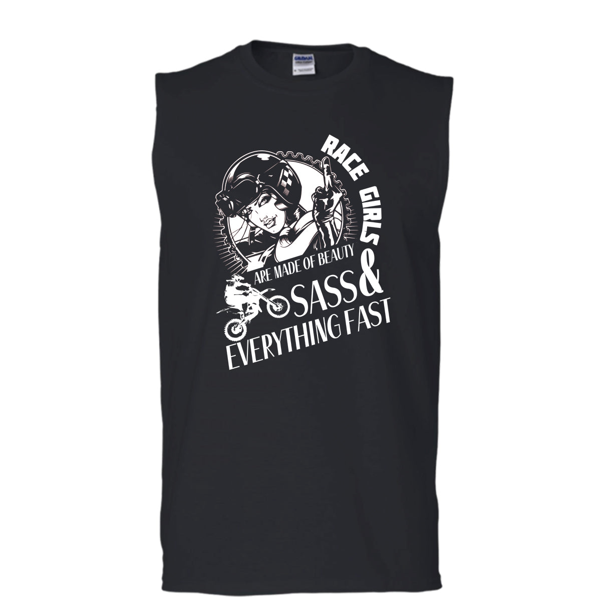 Race Girls Are Made Of Beauty T Shirt, Sass & Everything Fast T Shirt, Cool T Shirt (Men's Cotton Sleeveless)