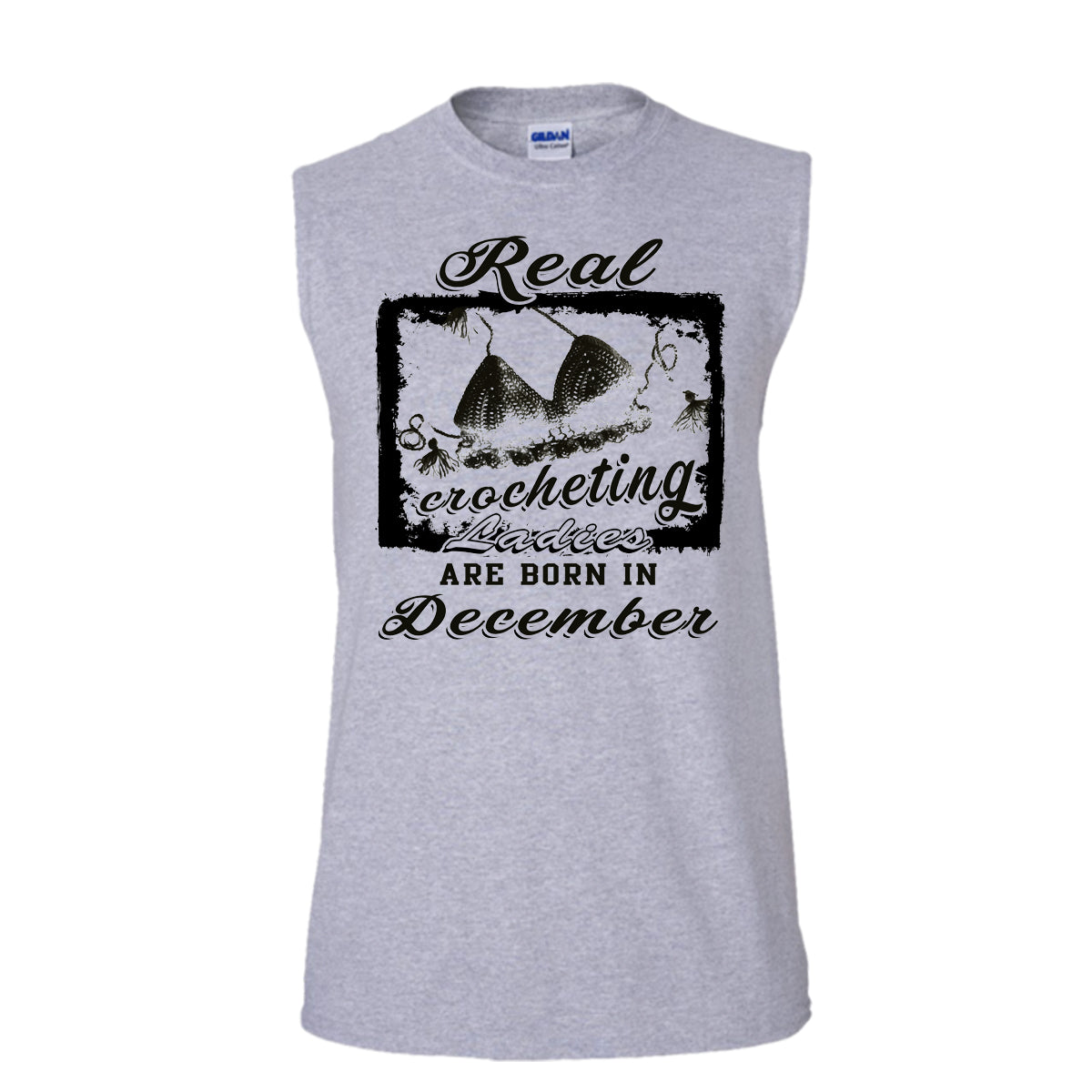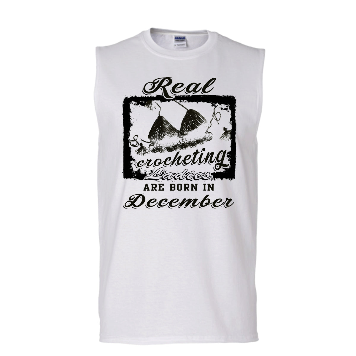 Real Crocheting Ladies Are Born In December T Shirt, Born In December T Shirt, Awesome t-shirts (Men's Cotton Sleeveless)