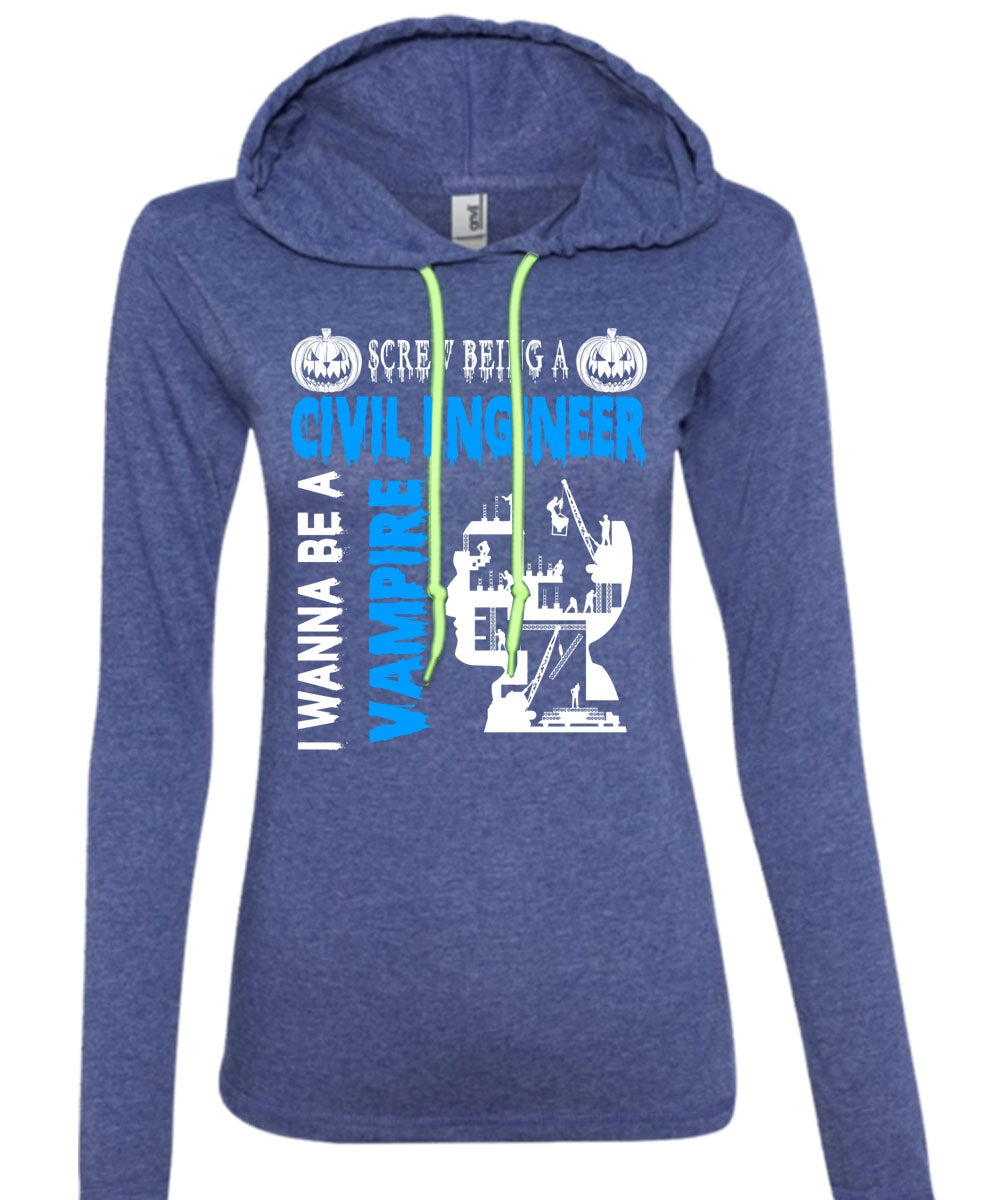 Screw Being A Civil Engineer T Shirt, I Wanna Be A Vampire T Shirt (Anvil Ladies Ringspun Hooded)
