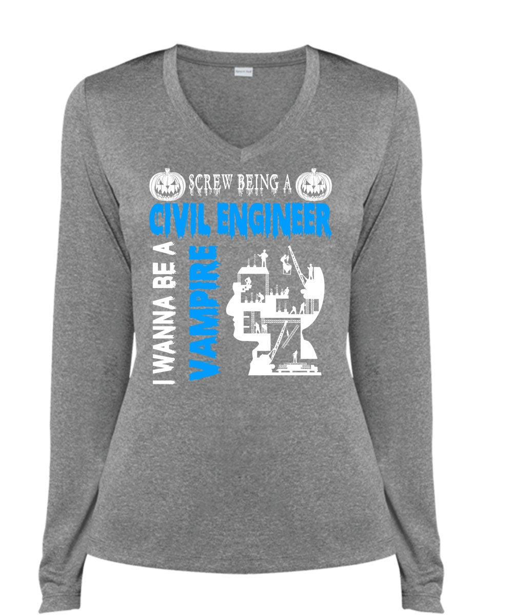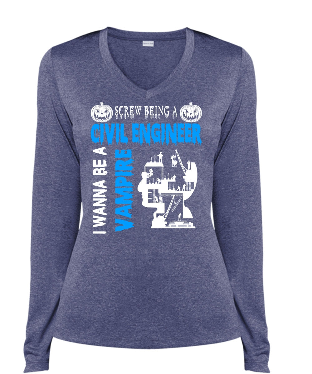Screw Being A Civil Engineer T Shirt, I Wanna Be A Vampire T Shirt, Cool Shirt (Ladies LS Heather V-Neck)