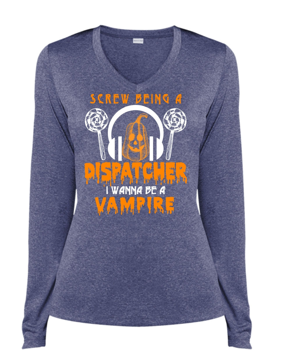 Screw Being A Dispatcher T Shirt, I Wanna Be A Vampire T Shirt, Cool Shirt (Ladies LS Heather V-Neck)