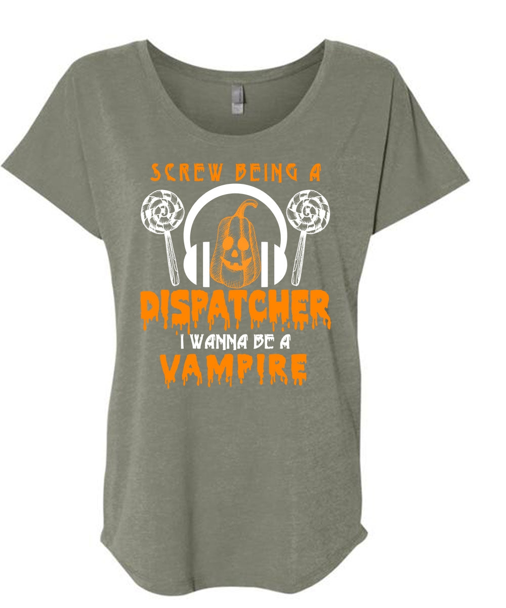 Screw Being A Dispatcher T Shirt, I Wanna Be A Vampire T Shirt, Cool Shirt (Ladies' Triblend Dolman Sleeve)