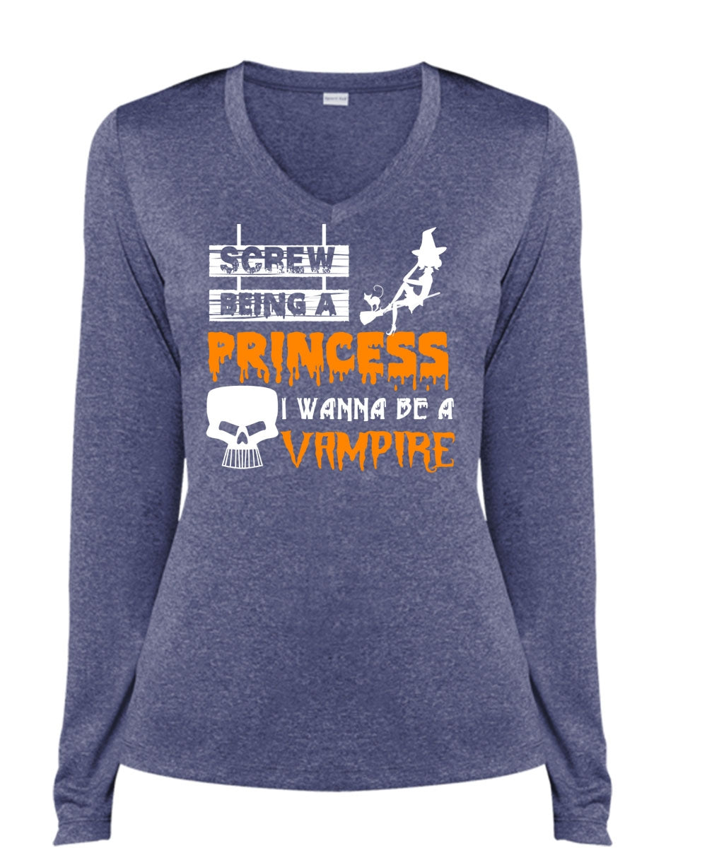 Screw Being A Princess T Shirt, I Wanna Be A Vampire T Shirt, Cool Shirt (Ladies LS Heather V-Neck)