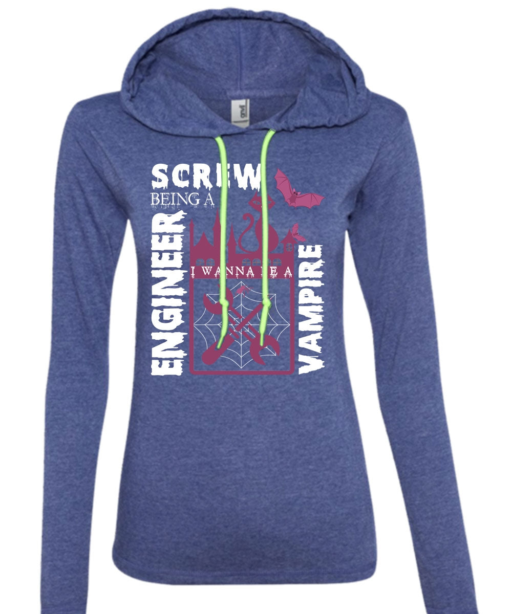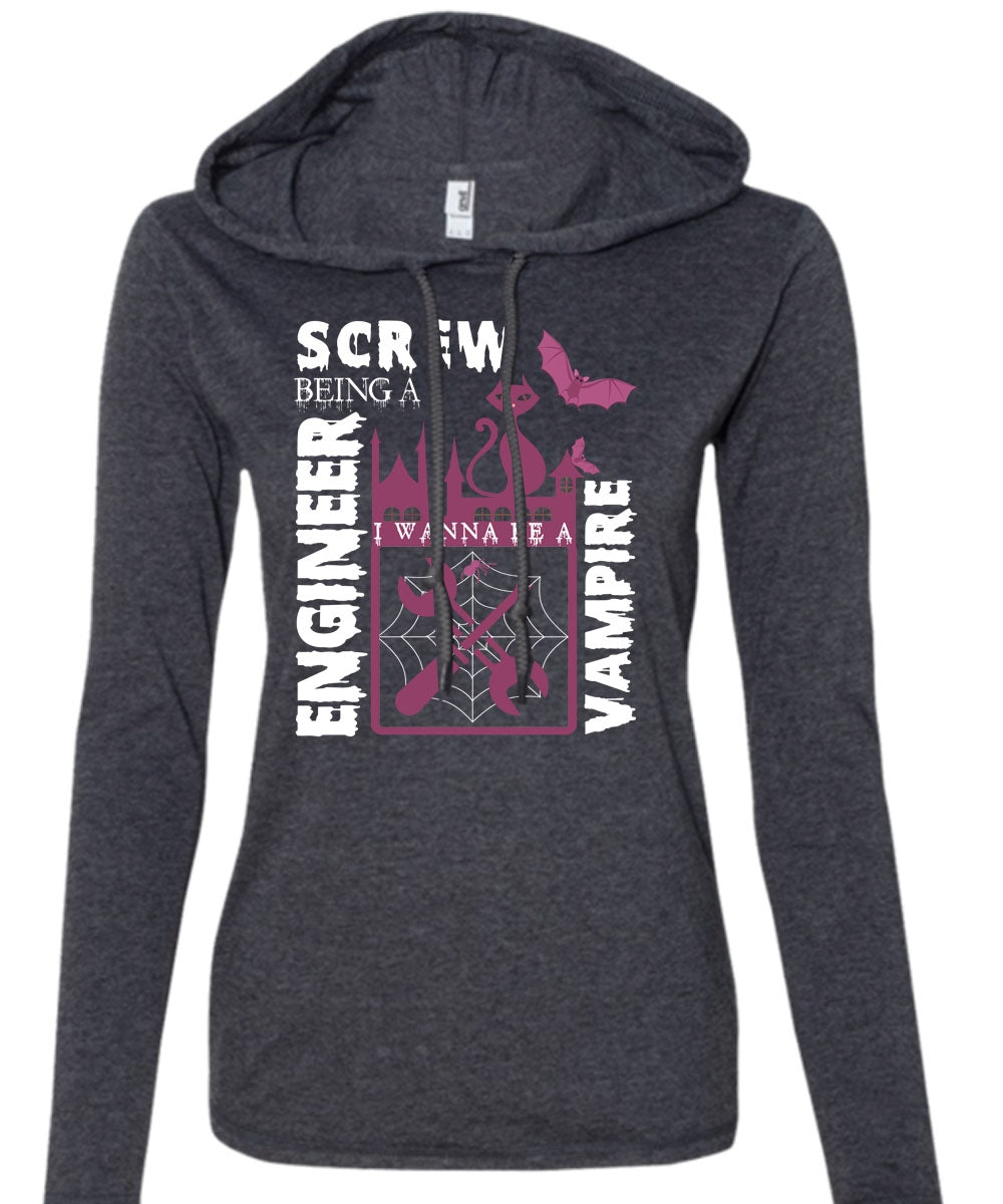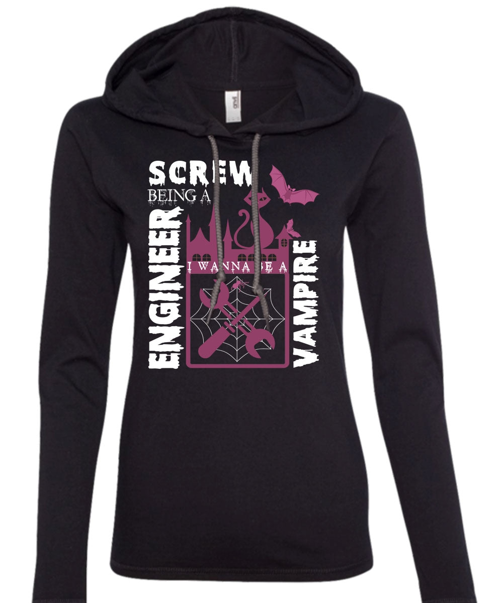 Screw Being An Engineer T Shirt, I Wanna Be A Vampire T Shirt (Anvil Ladies Ringspun Hooded)