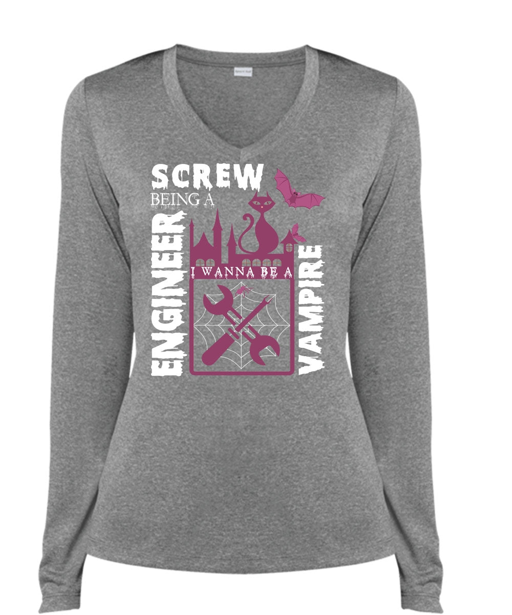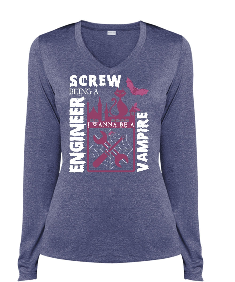 Screw Being An Engineer T Shirt, I Wanna Be A Vampire T Shirt, Cool Shirt (Ladies LS Heather V-Neck)