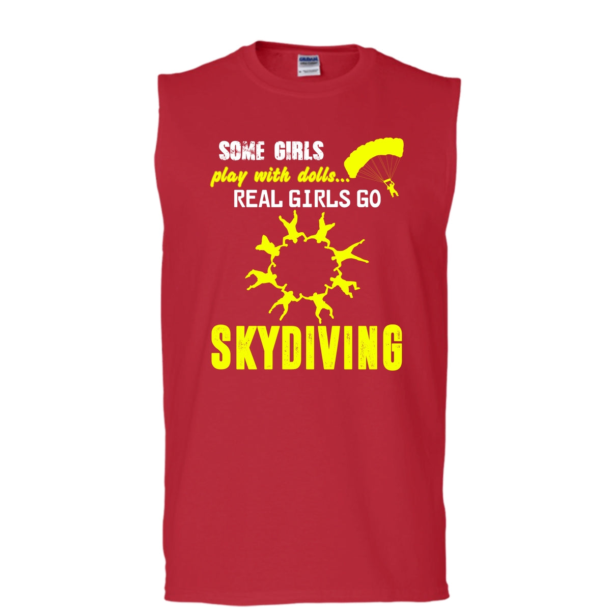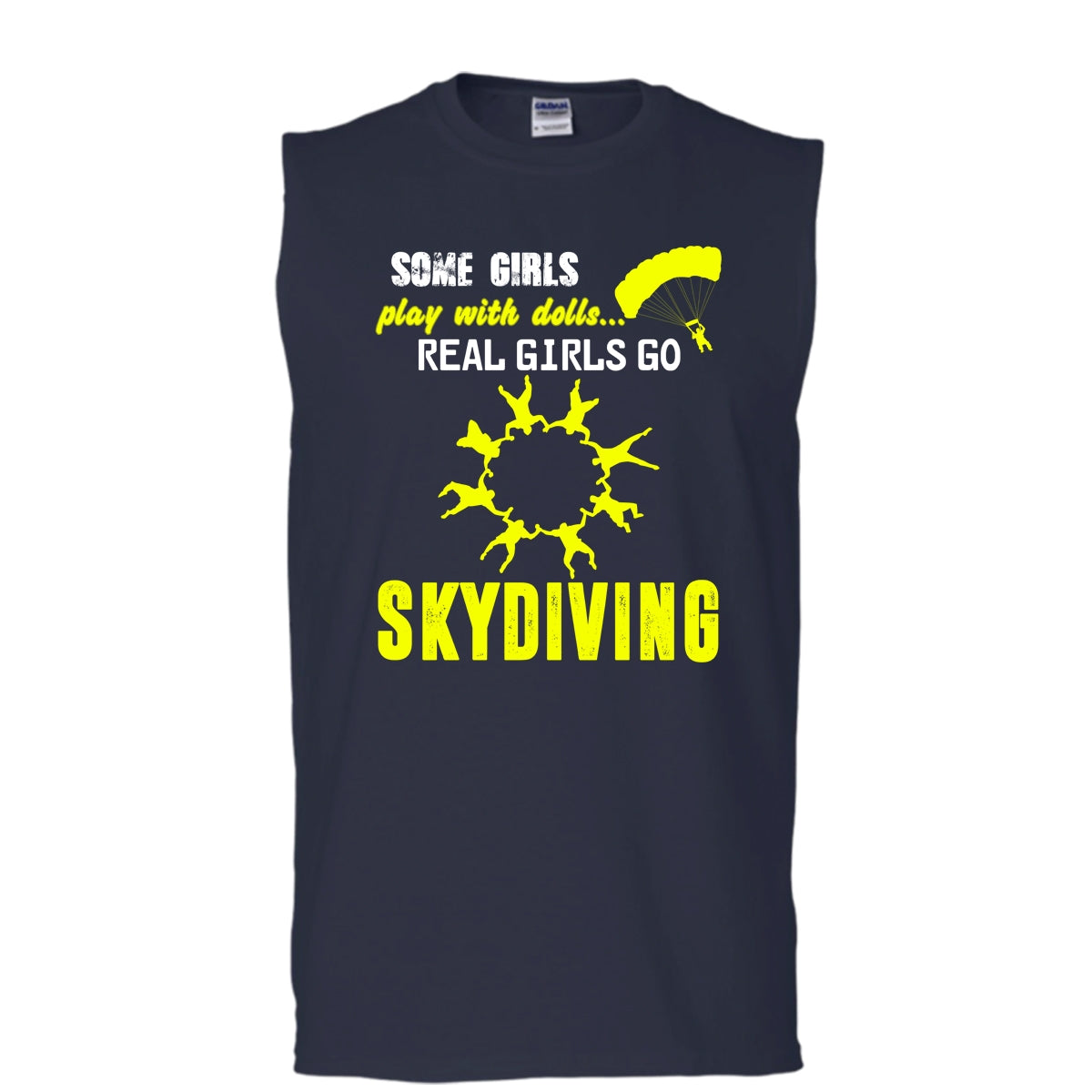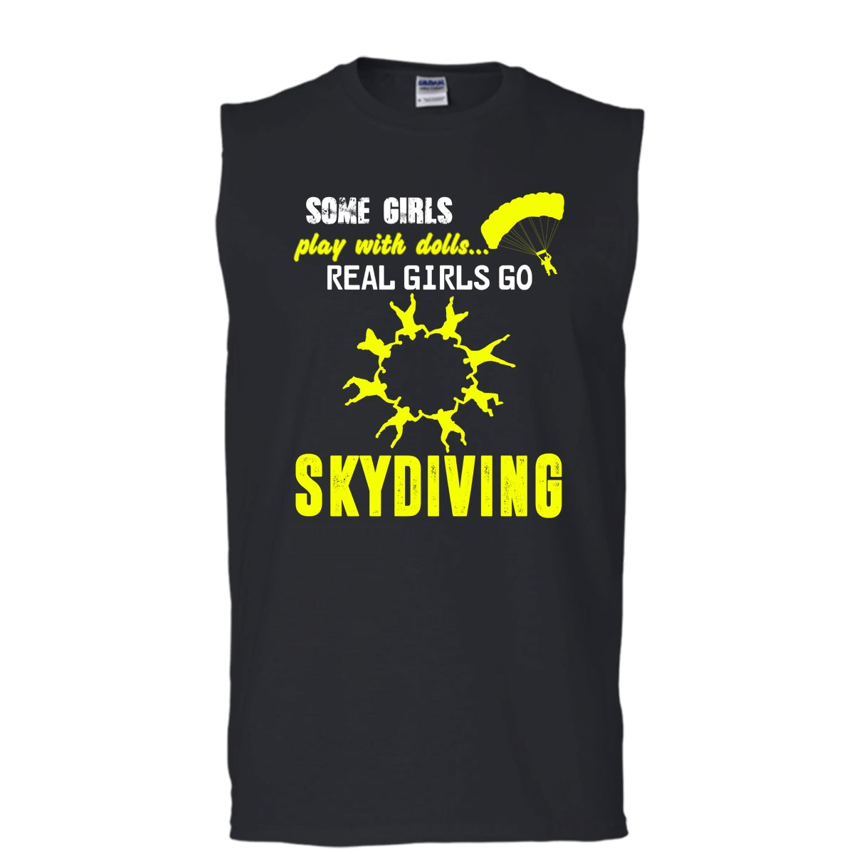 Some Girl Play With Dolls T Shirt, Real Girls Go Skydiving T Shirt, Cool T Shirt (Men's Cotton Sleeveless)