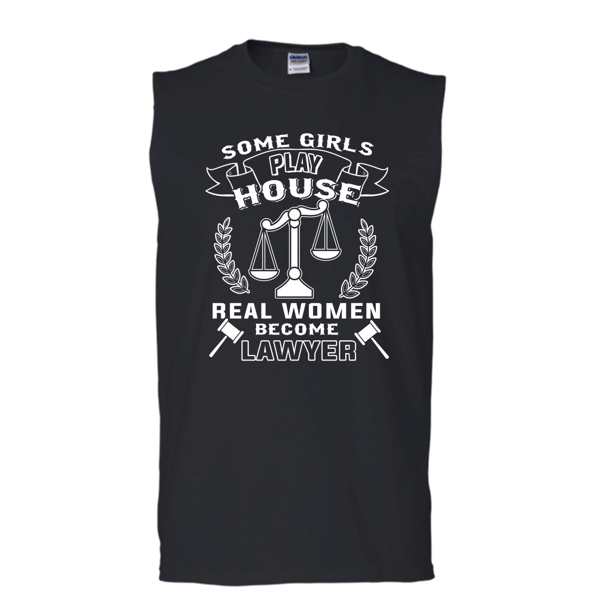 Some Girls Play House T Shirt, Real Woman Become Lawyer T Shirt, Cool T Shirt (Men's Cotton Sleeveless)