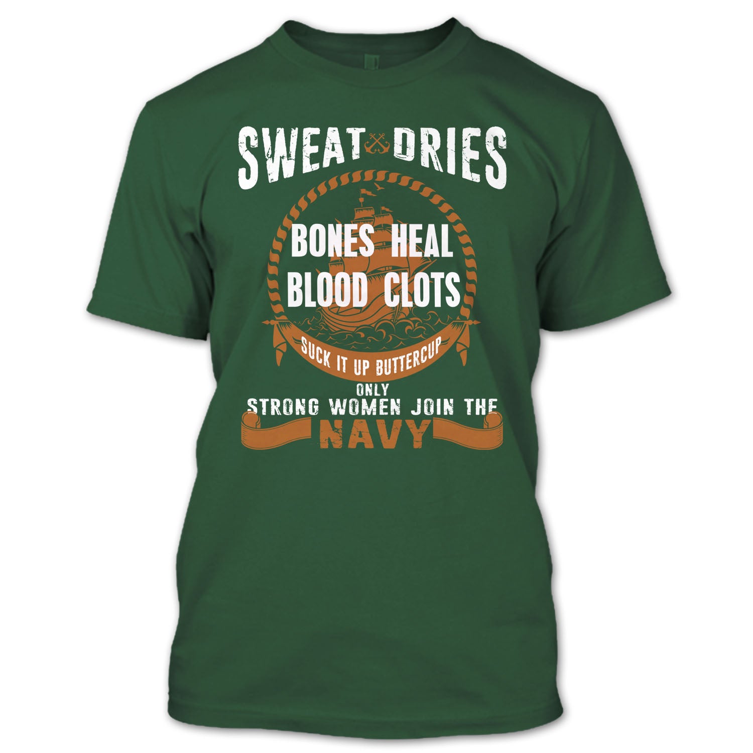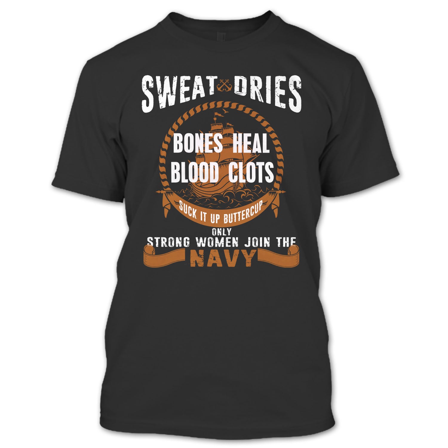 Sweat Dries Bones Heal T Shirt, Only Strong Women Join The Navy T Shirt