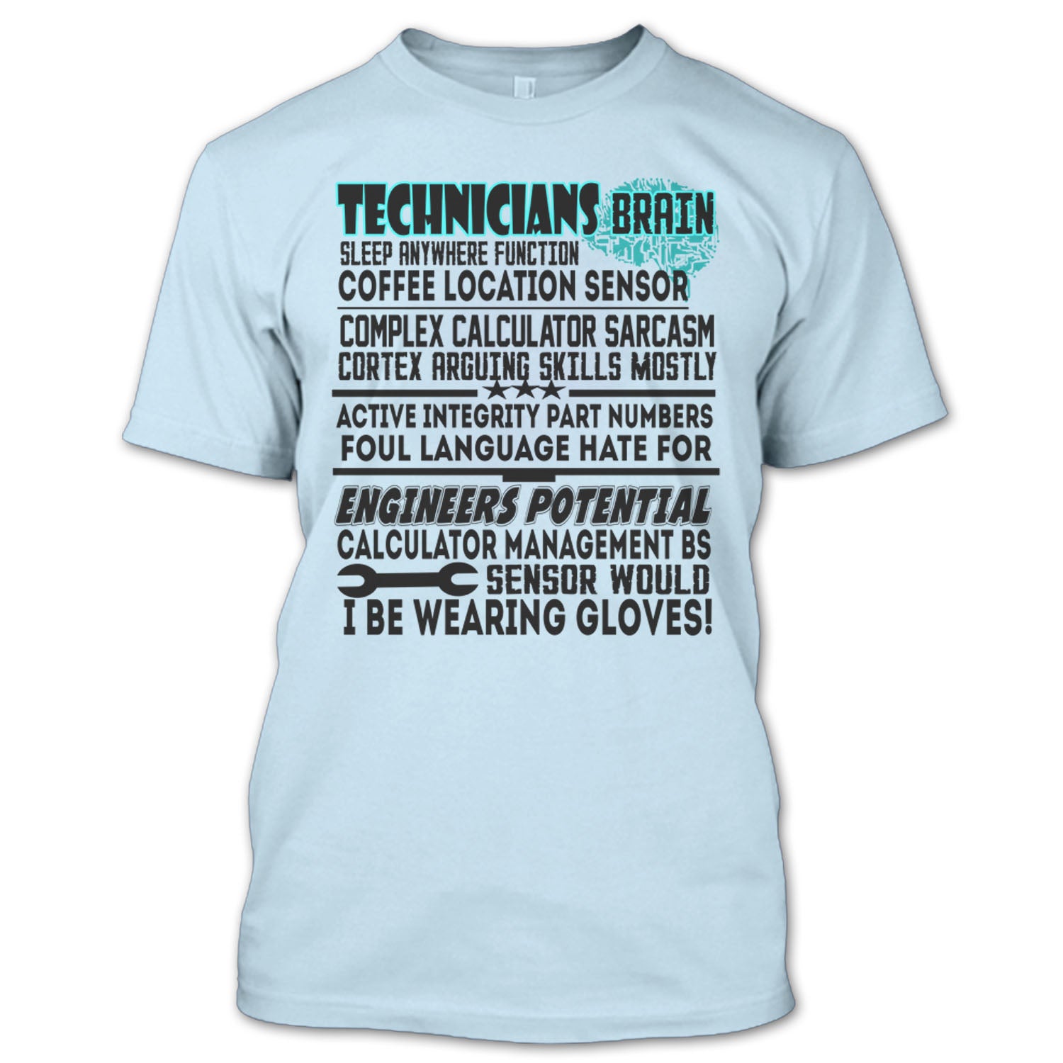 Technician's Brain T Shirt, Coolest Technician T Shirt