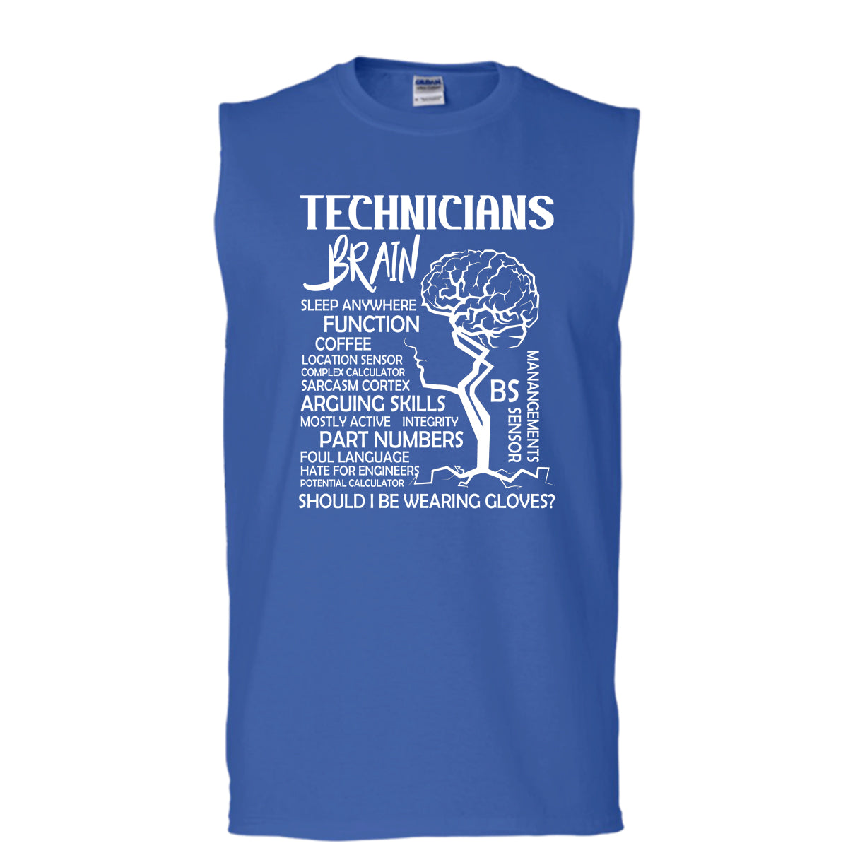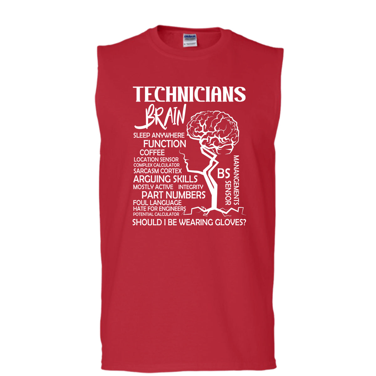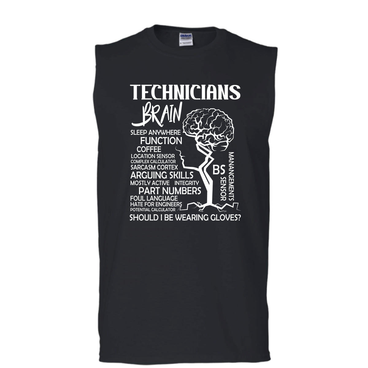 Technician's Brain T Shirt, Coolest Technician T Shirt, Cool T Shirt (Men's Cotton Sleeveless)