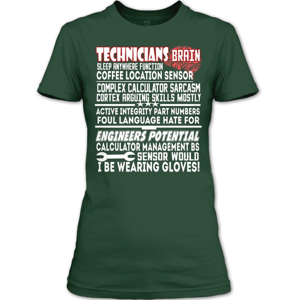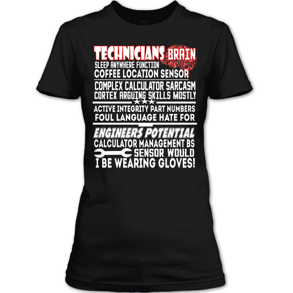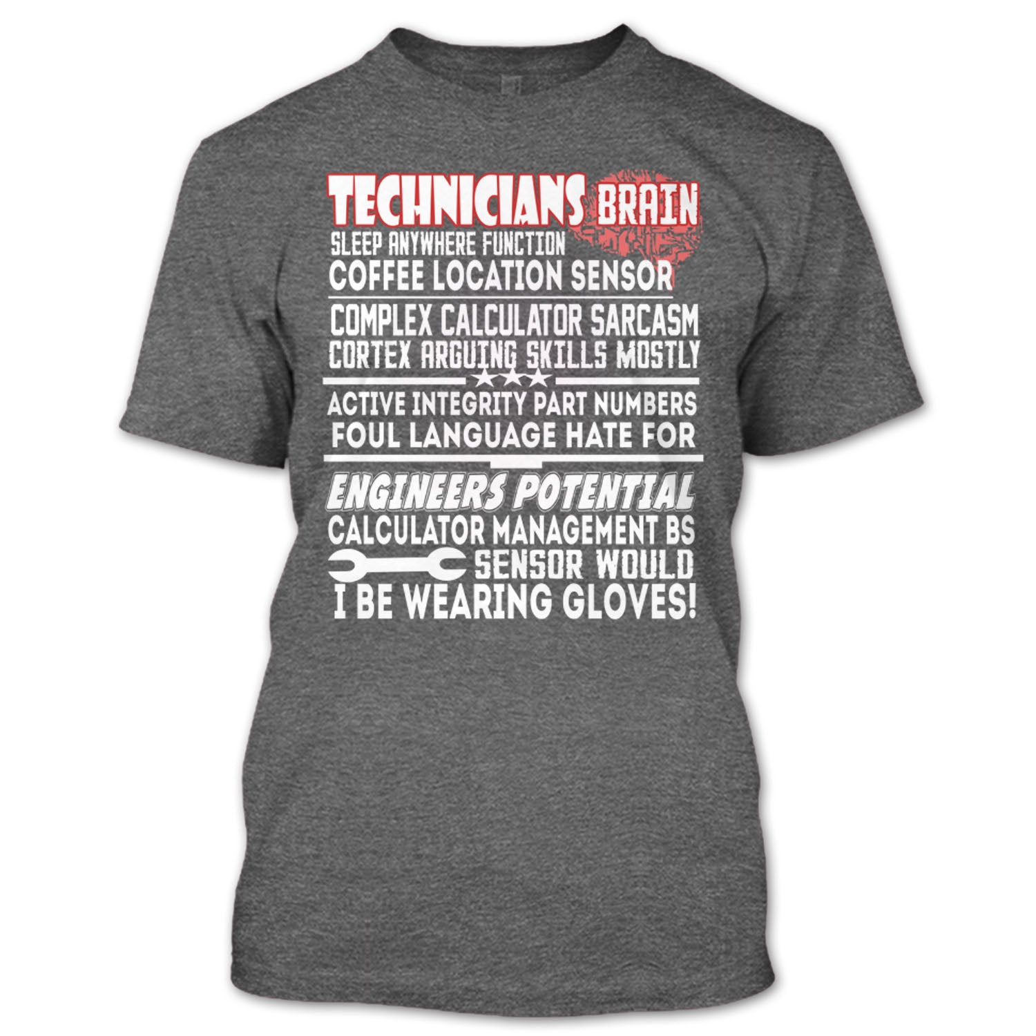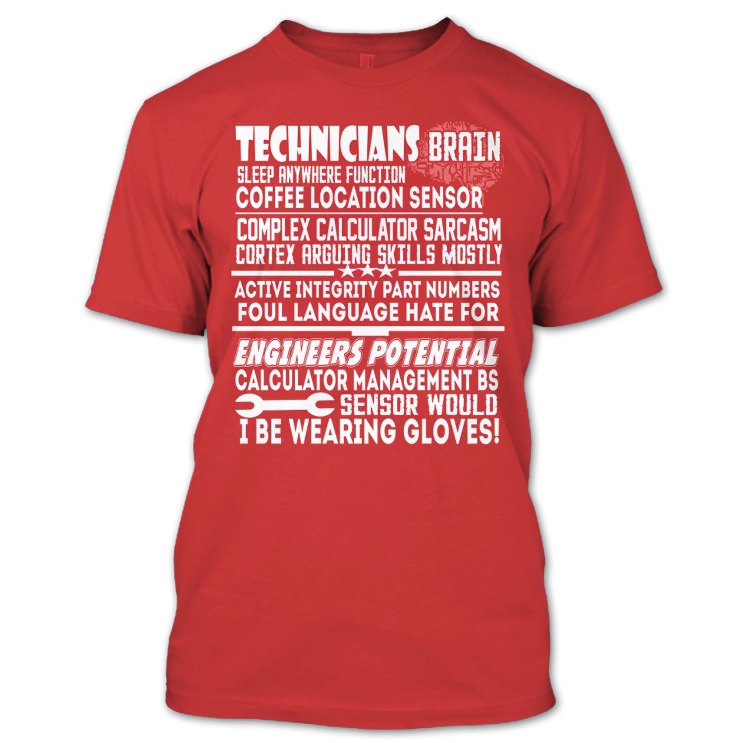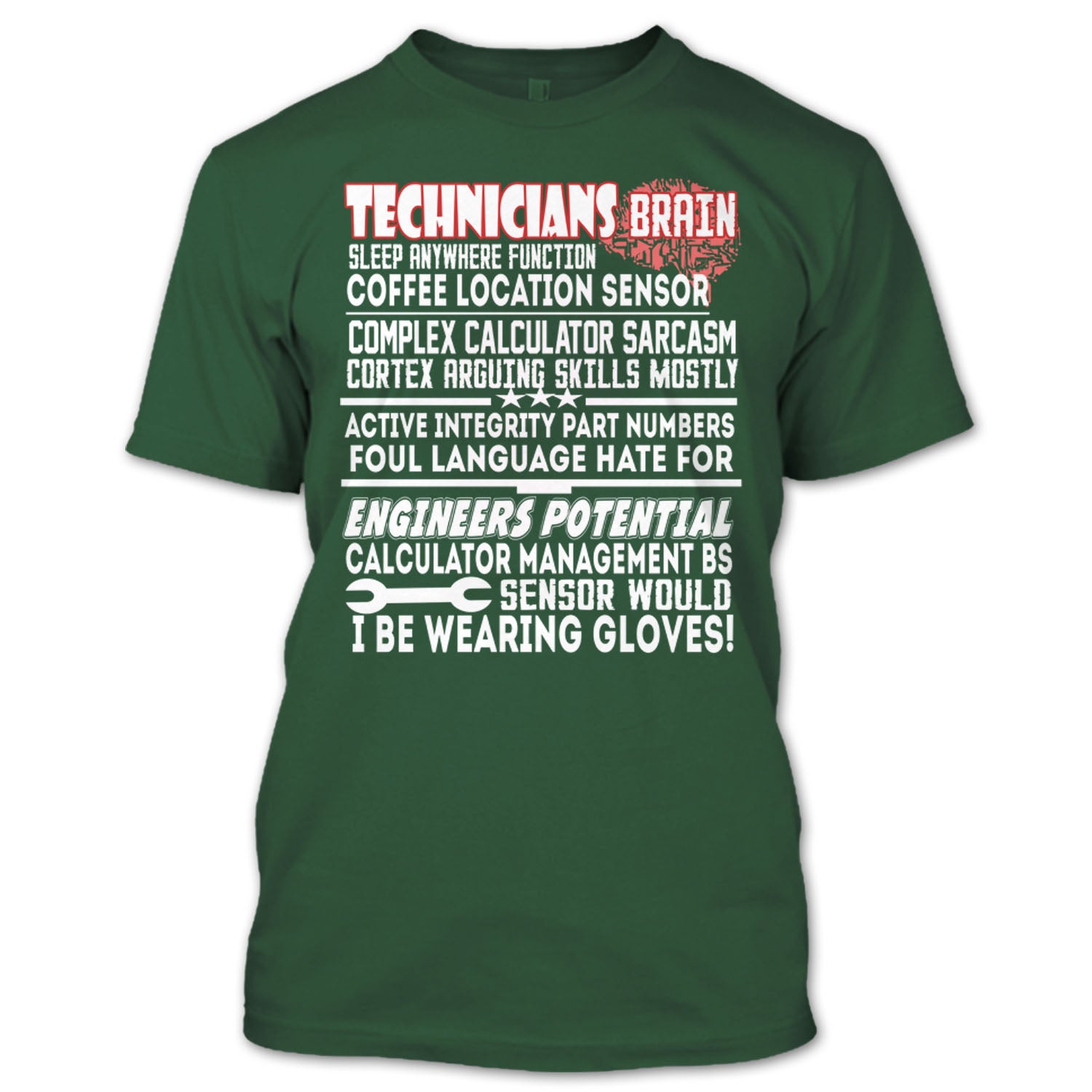 Technician's Brain T Shirt, Engineers Potential T Shirt