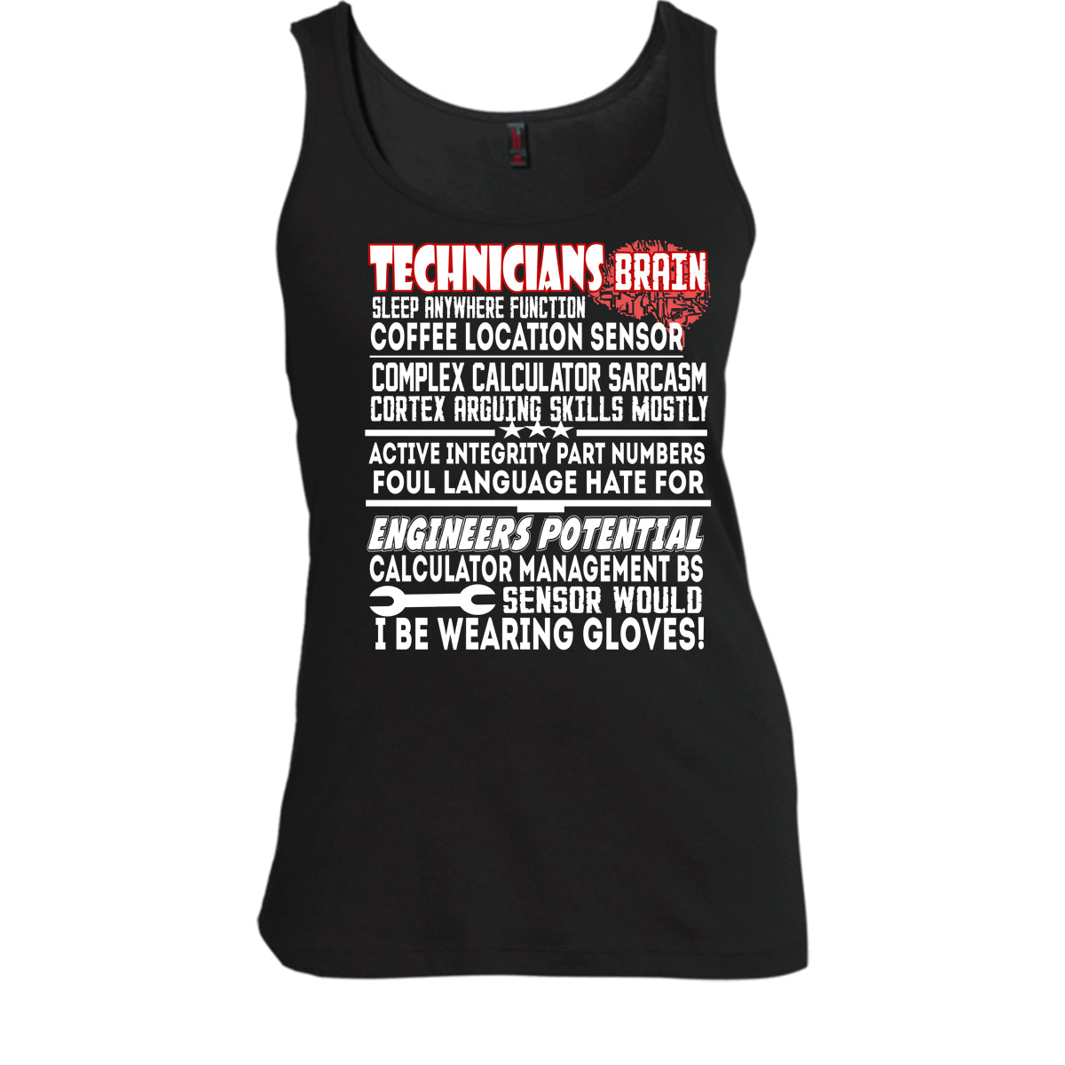 Technician's Brain T Shirt, Engineers Potential T Shirt, Cool T Shirt