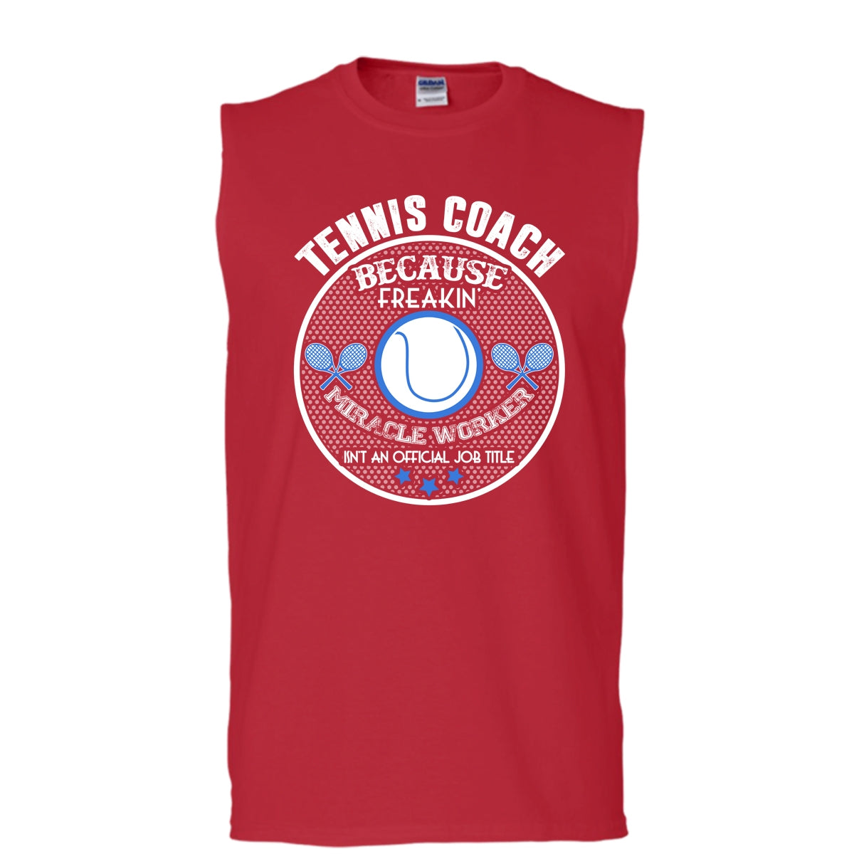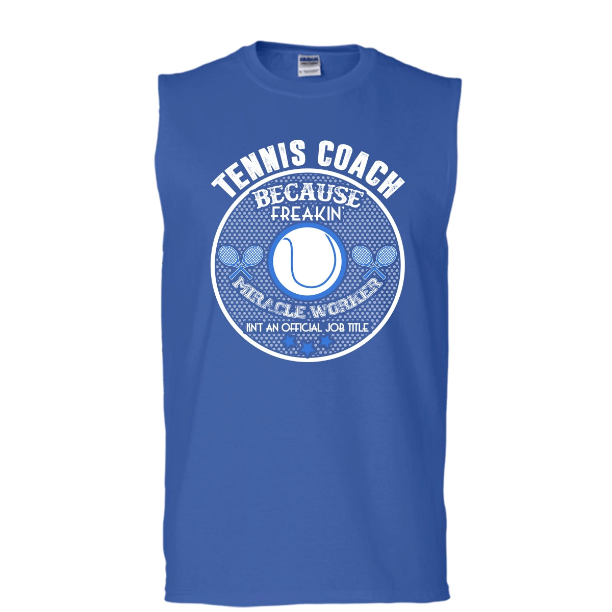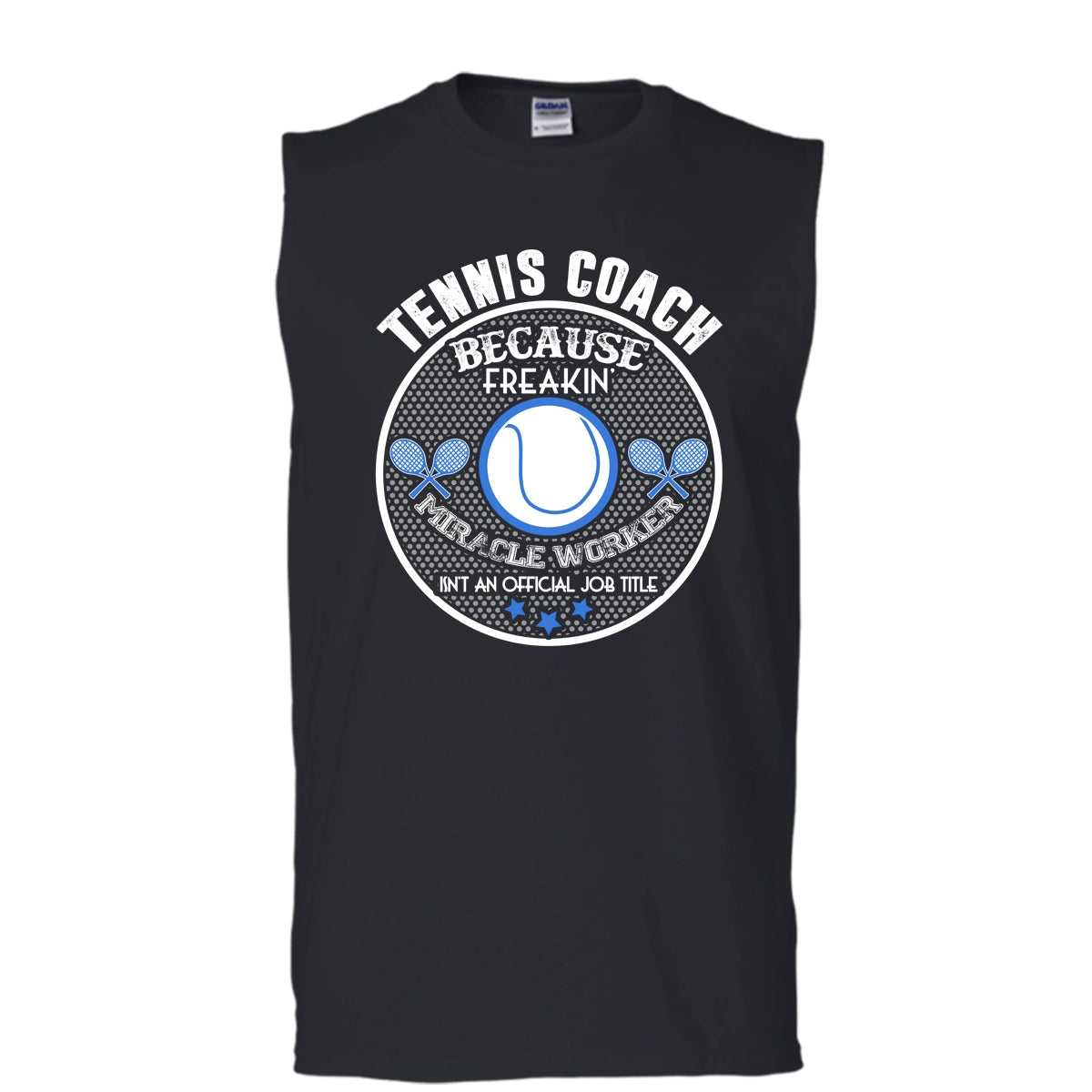 Tennis Coach T Shirt, Because Freakin' Miracle Worker T Shirt, Cool T Shirt (Men's Cotton Sleeveless)