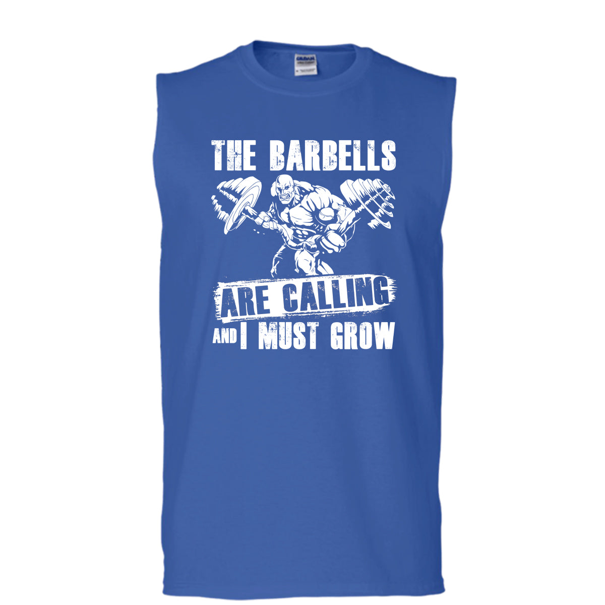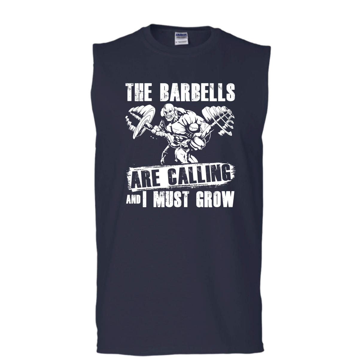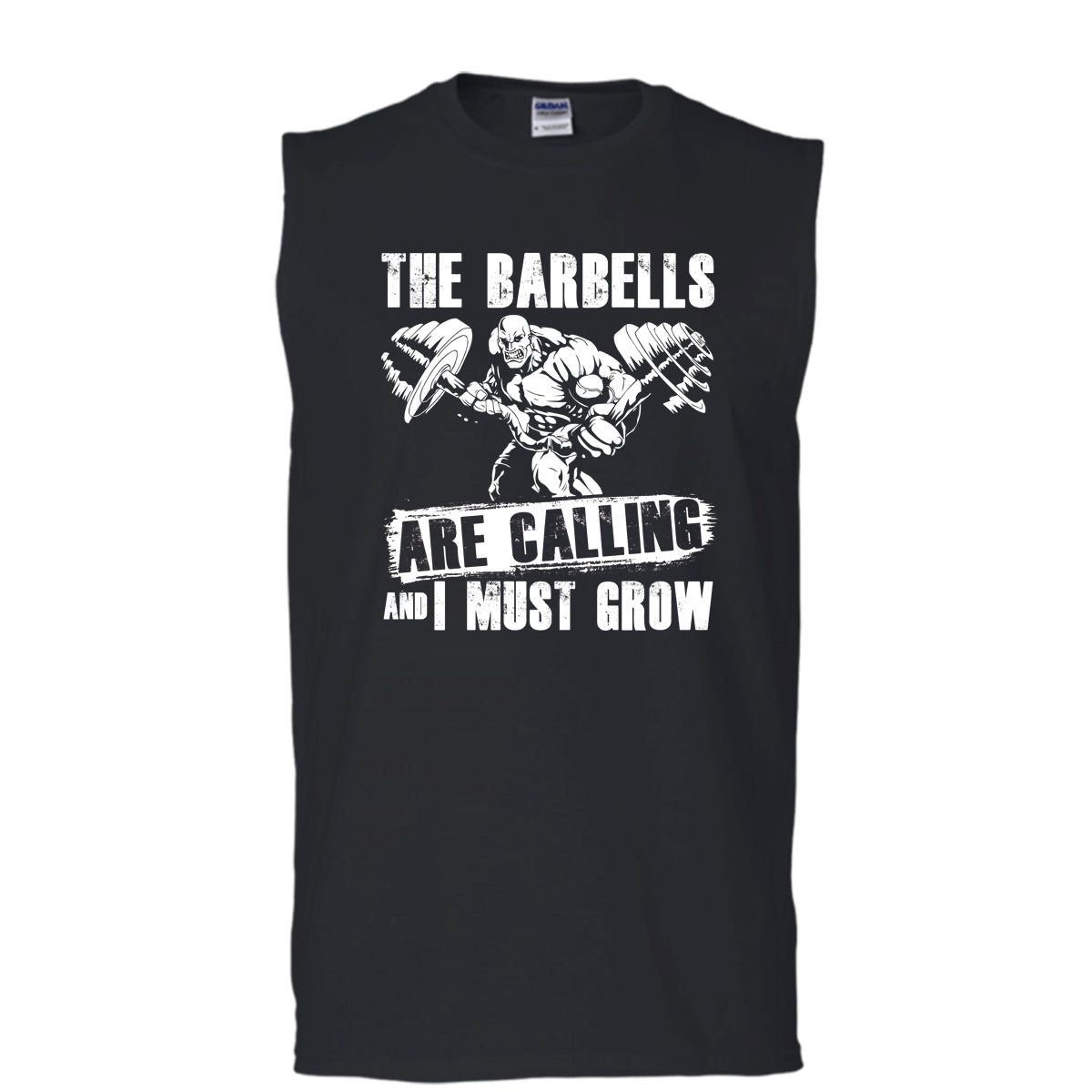 The Barbells Are Calling T Shirt, I Must Grow T Shirt, Cool T Shirt (Men's Cotton Sleeveless)